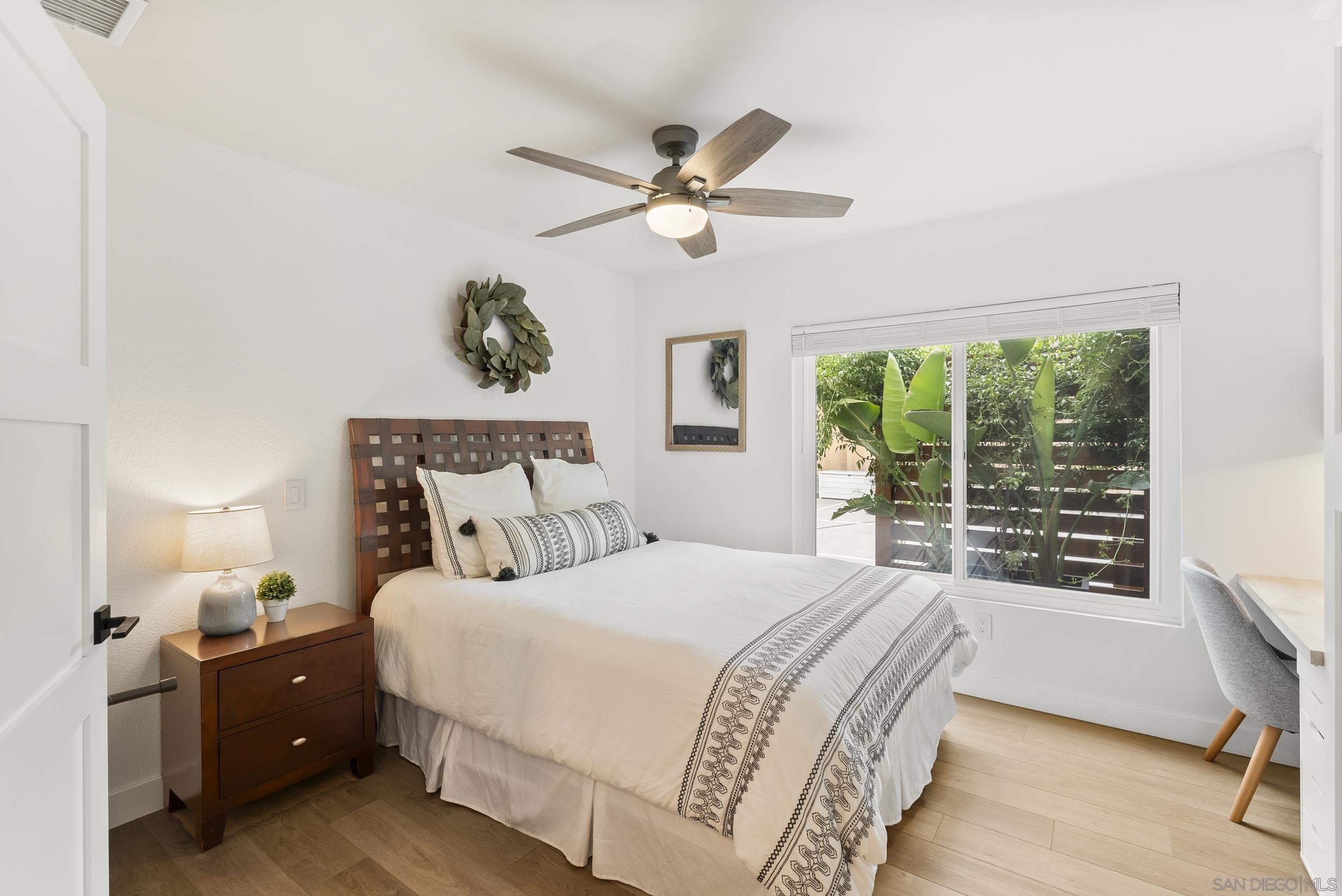 Available July 1, 2025: This recently renovated 4-bedroom, 3-bathroom home has attractive coastal curb appeal, is beautifully appointed on the inside and seamlessly flows into the backyard allowing residents to take advantage of Encinitas idyllic indoor/outdoor lifestyle. The propertys large and private lot is well-located in a friendly, southern Encinitas neighborhood and loaded with custom features including to following highlights (see Supplemental for complete list): EXTERIOR - Welcoming, coastal-inspired landscaping and front entry, - Large, private primary bedroom balcony with southerly views, - Covered outdoor living room with 60 linear gas fireplace, - Sports court with pickleball lines, basketball lines and lights for evening activities, - Two storage sheds (sports shed (w/ electricity) & garden shed), - Outdoor shower with hot water for rinsing after a day at the beach, - Gardner is included in the rent. INTERIOR - Open floor plan with lots of natural light, - Spacious kitchen with large island, - Stainless steel appliances, - Air conditioning, - LED can-lights and ceiling fans throughout, - Vinyl windows, - Gas fireplace in living room, - Custom stair railing, - Soft-close cabinet doors/drawers, - LVP floors throughout ground floor (except bathroom), - Three full bathrooms have all been upgraded in recent years, - Home office w/ built-in desk in downstairs bedroom, - 2-car garage w/ built-in storage and work bench. NEIGHBORHOOD Southern Encinitas location has convenient proximity to beaches, nature trails, freeway access and shopping.