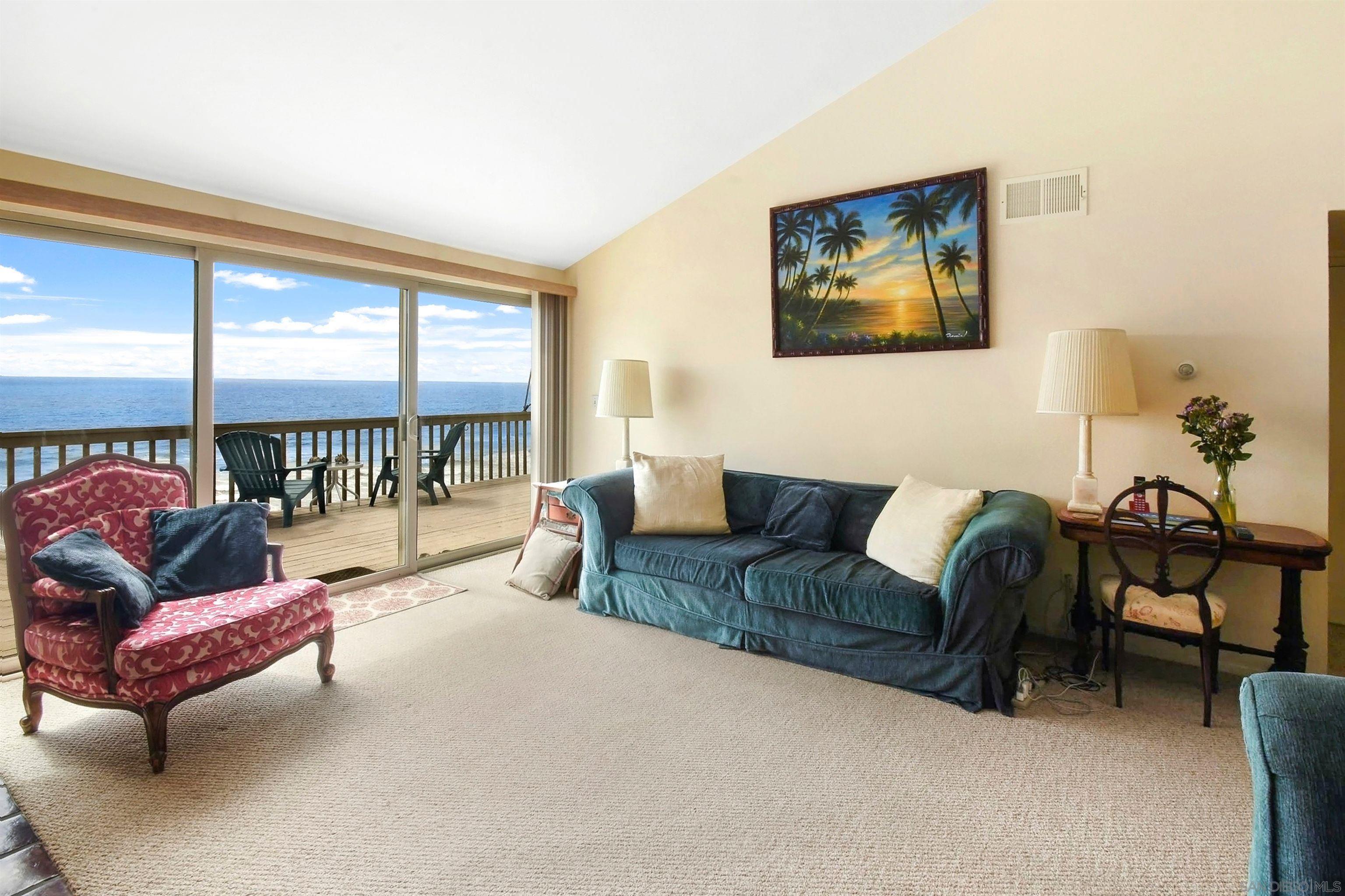 Premier oceanfront townhouse in Seabluff Village. Spectacular ocean & coastline views! Short term rental Available for the month of November to January 1st. Lease includes one bedroom, one bath approx 1,200 sq ft. (2nd bedroom locked) completely furnished including sheets & dishes. Outstanding oceanview from Living room, Dining Room. Original owner clean original condition, older furnishings, but all very neat and clean. Private patio off the front & private deck overlooking the ocean. Seabluffs has private stairs to the sandy beach below. Looking for a single person or couple to enjoy living at the beach for December 2023. Includes all utilities, cable, phone, water & SDG&E. No pets, No children, Non-smoker please.