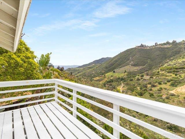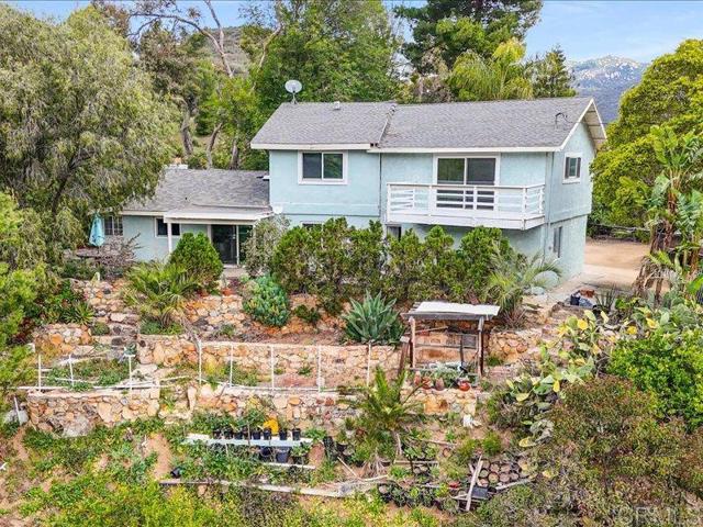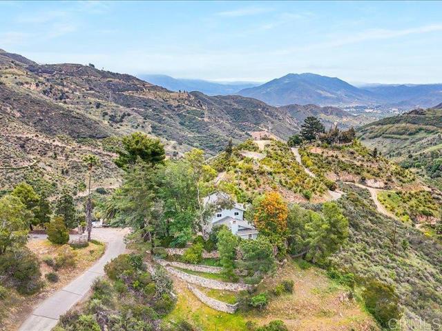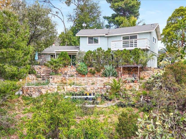 A diamond in the rough perched atop a mountain, this unique Fallbrook property offers unmatched privacy and panoramic views across 4.52 acres. Surrounded by mature trees and natural beauty, the home includes 2 bedrooms and 2 bathrooms, plus two additional bonus rooms and a third full bath all with scenic views. The land features a seasonal stream at the base, a semi-flat area where a greenhouse once stood, and terraced slopes near the home ideal for planting or future expansion. Inside, the home showcases new luxury vinyl flooring in the living room and kitchen, a cozy fireplace, and skylights that fill the space with natural light. Additional features include a stainless steel refrigerator, granite countertops, newer washer and dryer, and $40,000 in upgraded Andersen double-pane windows. The primary bedroom has hardwood floors and opens to a deck overlooking a peaceful valley. You ll also find a tile shower with a sleek glass enclosure, an upgraded vanity, two small ponds with drip irrigation, multiple patios perfect for barbecuing and entertaining, and a guava tree in the backyard. The property is complete with a large front yard, oversized 2-car garage, and a private road that leads to the lower portion of the land with access to the seasonal creek. Quiet, private, and full of potential this is Fallbrook living at its finest.Interested in this Listing?