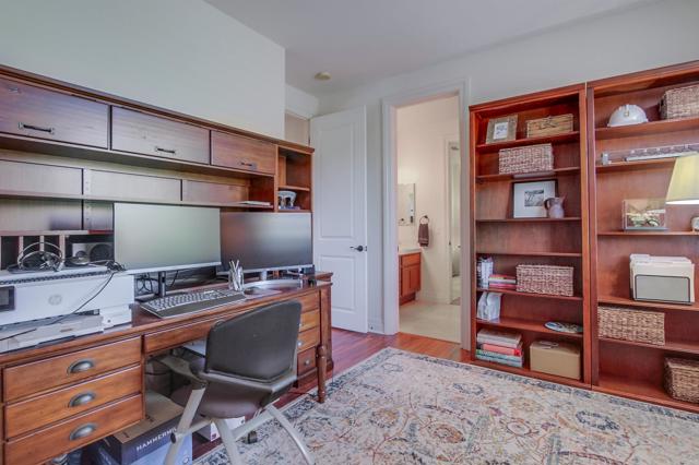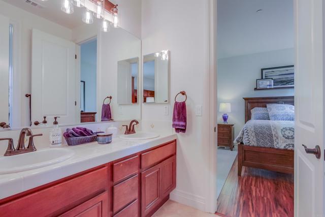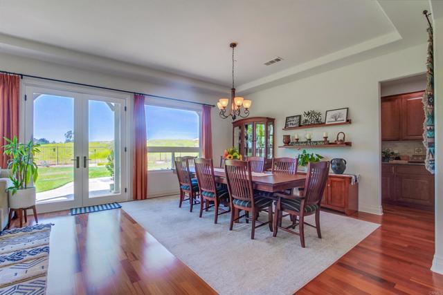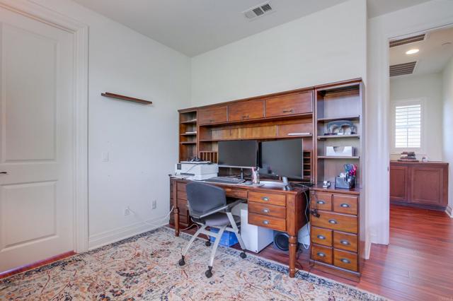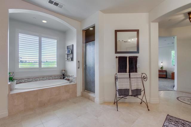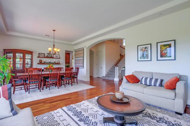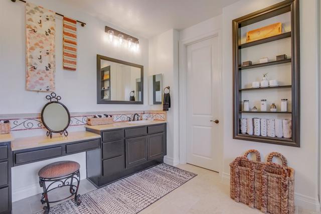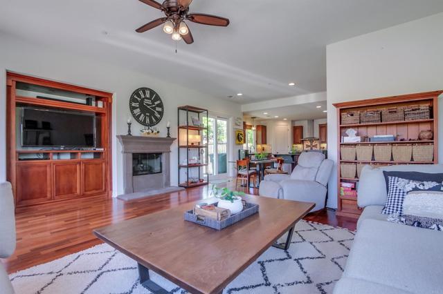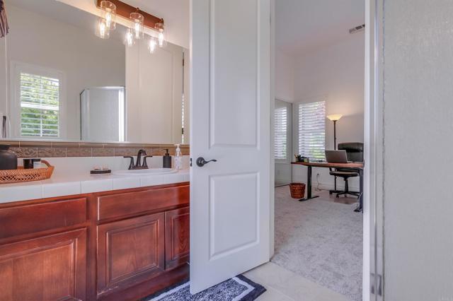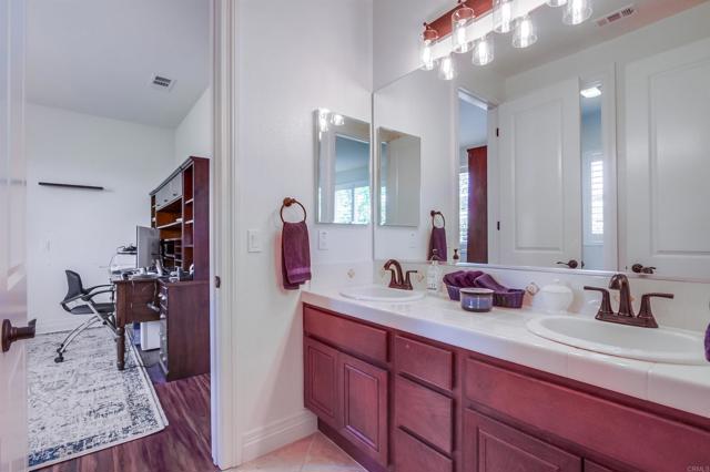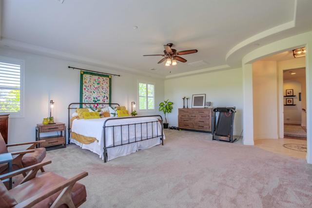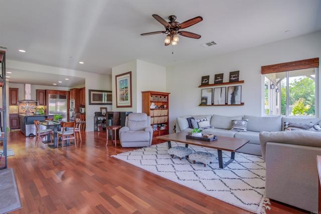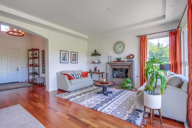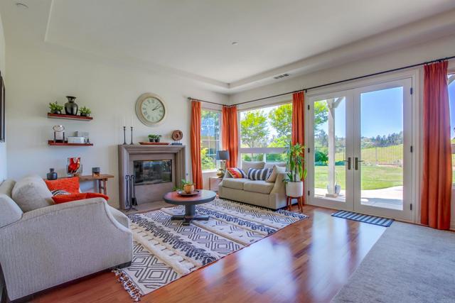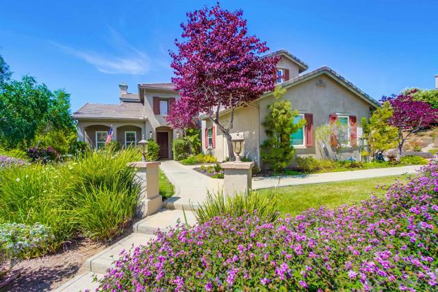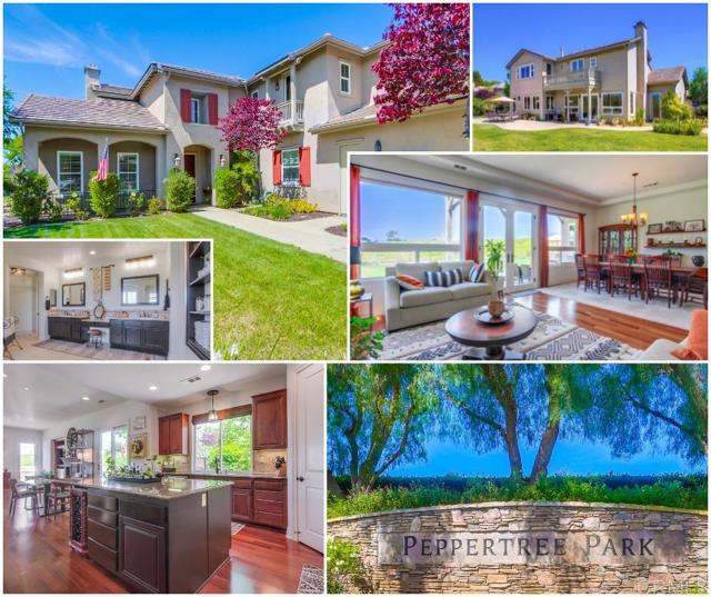Stately Peppertree Park home with fully paid solar welcomes you to the most peaceful location in this beautiful neighborhood. Primary and 2 secondary suites (including 1 downstairs) combined with jack-n-jill bedrooms make this an amazing and luxurious multi-generational opportunity with direct bath access from each bedroom as well as a half bath downstairs, 3-car garage and long driveway. The inviting entryway with soaring 20ft. ceiling opens to the formal living room - designed around the home s first fireplace - and formal dining room (new French doors open to the backyard). The great room is truly the heart of this home featuring a kitchen with acres of granite countertop space including the expansive 4 X 8 island. The family room is equipped with the home s second fireplace and built-in entertainment cabinet. Upstairs, bask in the luxurious, oversized primary suite. The large bathroom features neutral (off-white) slate tile flooring, double sink vanity topped with slab Crema Marfil counter, modern, black-framed mirrors, hardware and lighting fixtures, and a deep soaking tub. You will be wowed with the step-in shower of your dreams with floor to ceiling tiles, double rain-type shower heads, and stainless-steel fixtures. You may never want to leave. Through the bath, find the spacious walk-through primary closet, which includes shelving and drawers, providing plenty of room for any wardrobe. The downstairs secondary suite is perfect as an office, guest room or gym. Light pours in from two directions and features mirrored closet doors. The ensuite has updated hardware and lighting (as do all the bathrooms), and a door leading to the backyard - perfect for easy bathroom access when entertaining outdoors. Step out to a shaded lanai to protect you from the sun while you enjoy the Fallbrook breeze during your afternoon meals. Lush mature landscaping and two raised gardens irrigated with a drip system help to reduce watering costs. A firepit is located in the corner of the backyard (which has plenty of room to add a pool). The function and finishes throughout this home will WOW you; chef s kitchen complete with top end appliances and continental-sized island, huge upstairs primary suite with view balcony, downstairs junior suite, upstairs junior suite, gorgeous flooring, plantation shutters throughout and three fireplaces. You will be amazed to see this home in person. Enjoy this wonderful neighborhood from the moment you drive through the front gate and through the canopy of trees that welcome you home; take a walk with friendly neighbors on the walking trails throughout the 6-acre park; take your kids to the basketball court or the playground; or meet friends at the local tennis club for tennis or pickleball. Home also includes fully paid solar array, two high-efficiency AC units, hardwood flooring downstairs, luxury vinyl plank flooring upstairs, and a 3-car garage. This is a home that has been filled with love from the day it was built and a family that hopes it will be filled with the love of new owners.Interested in this Listing?