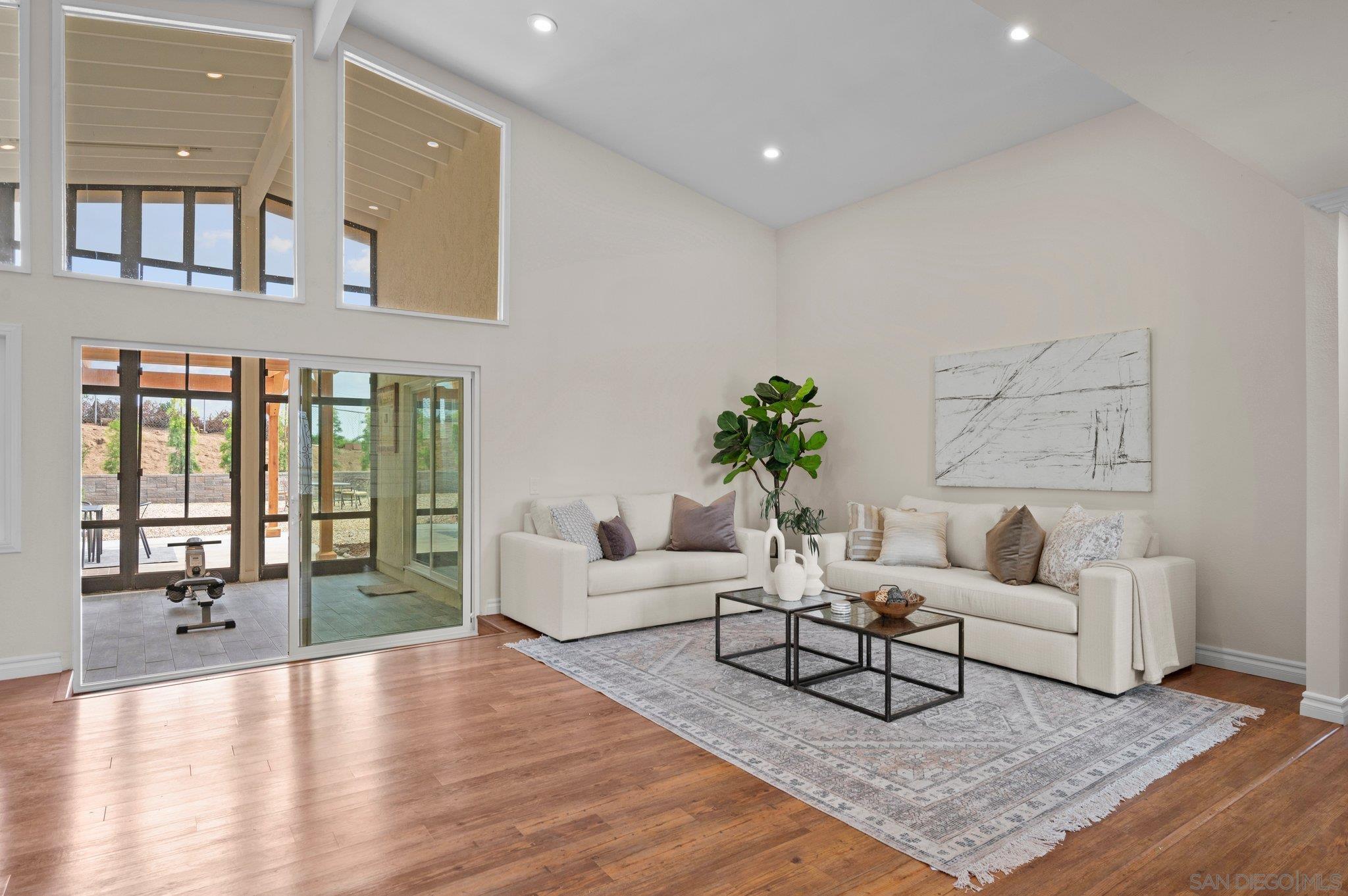 Welcome to your single-story sanctuary in Fallbrook set on an over 3/4 acre elevated lot with views! This sunlight-filled 4-bedroom home features a private entry gate, soaring vaulted ceilings, fully pre-paid solar power, & a beautiful new back patio cover. Other highlights include a newer HVAC system, an enclosed patio/sunroom, & a spacious open-concept kitchen with new SS appliances which flows seamlessly into the main living areas. This charming home offers a park-like yard with mature fruit trees and a serene setting elevated above a quiet, private road near Fallbrook High School, the Tennis & Pickleball Club, and the Community Air Park.Interested in this Listing?