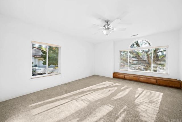 Welcome to this beautifully designed single-level detached home, offering a perfect blend of comfort, convenience, and peaceful living. Located in a serene and highly sought-after community, this 2-bedroom, 2.5-bathroom, paid solar gem is just steps from the renowned Pala Mesa Golf Course, with a community pool and spa right across the street for ultimate relaxation.The spacious and open floor plan is ideal for both everyday living and entertaining. Featuring two generously sized master suites, complete with walk-in closets and oversized bathrooms.The formal living and dining areas create a warm and inviting atmosphere, while the large kitchen flows seamlessly into the attached family room a perfect space for casual gatherings. Home is equipped with beautiful built-in cabinets and plenty closet space. A convenient powder room is also available for guests.Additional highlights include a well-appointed laundry room with ample storage and the potential for the formal living room to be converted into a third bedroom, offering flexibility to suit your needs. A rare and expansive 3-car garage adds even more value, with one of the garages thoughtfully built out as a possible office space.Step outside to the private backyard patio, where a charming covered pergola awaits, offering a peaceful retreat for relaxation and outdoor enjoyment. Sliding glass doors from both the family room and main master suite provide easy access to this serene sanctuary.With HOA-maintained water, sewer, common areas, and street upkeep, you can enjoy a low-maintenance lifestyle. This property truly combines the ease of condo living with the space and amenities of a single-family home, making it an ideal choice for those seeking a tranquil yet active lifestyle in a prime location.Interested in this Listing?