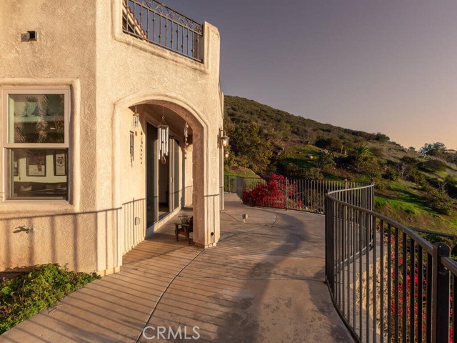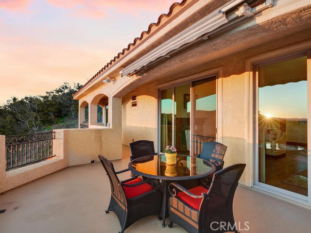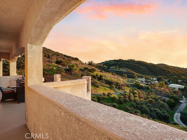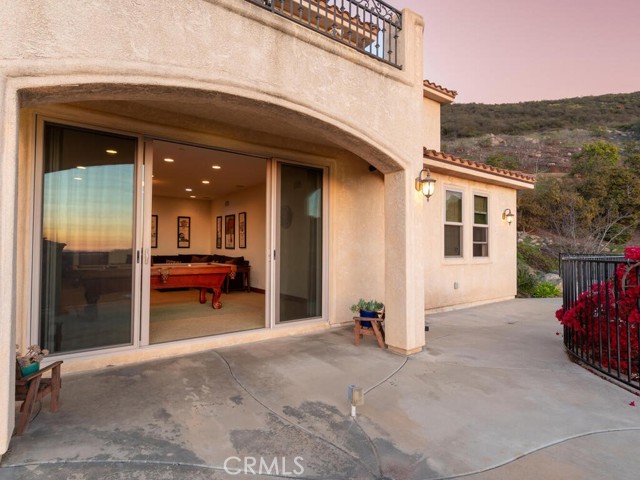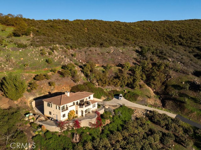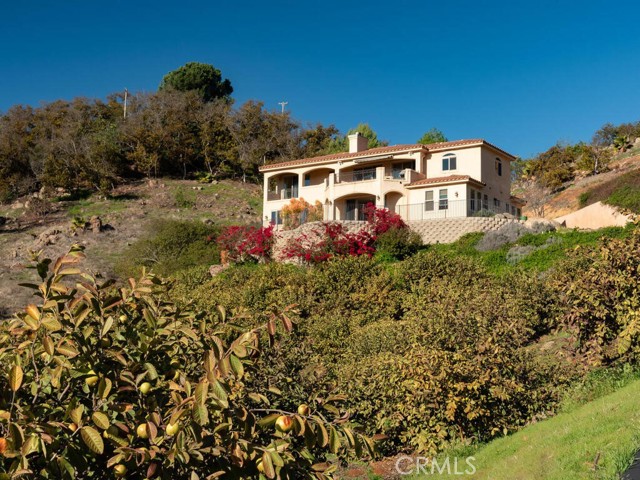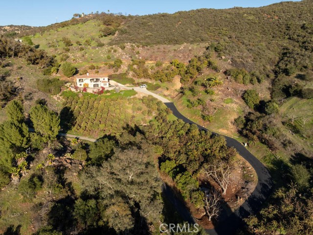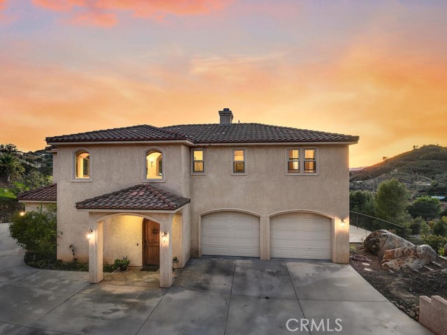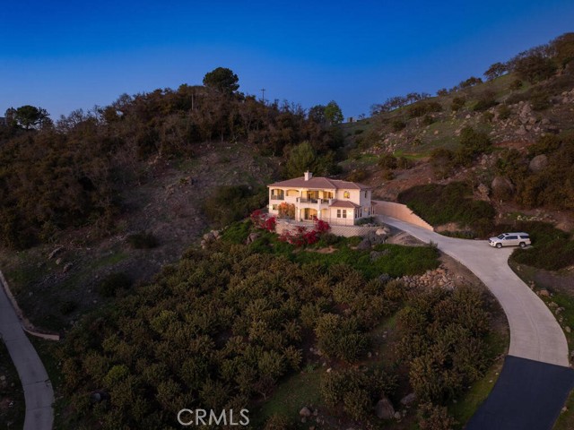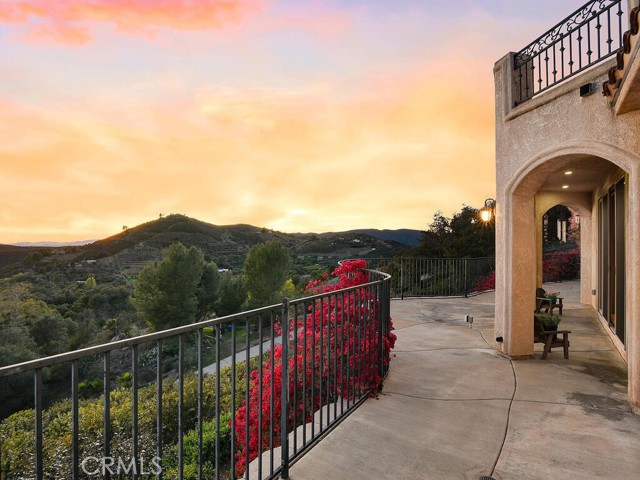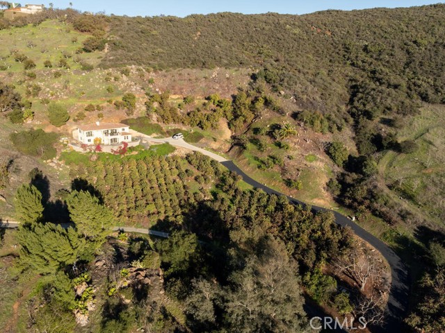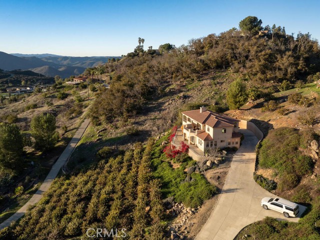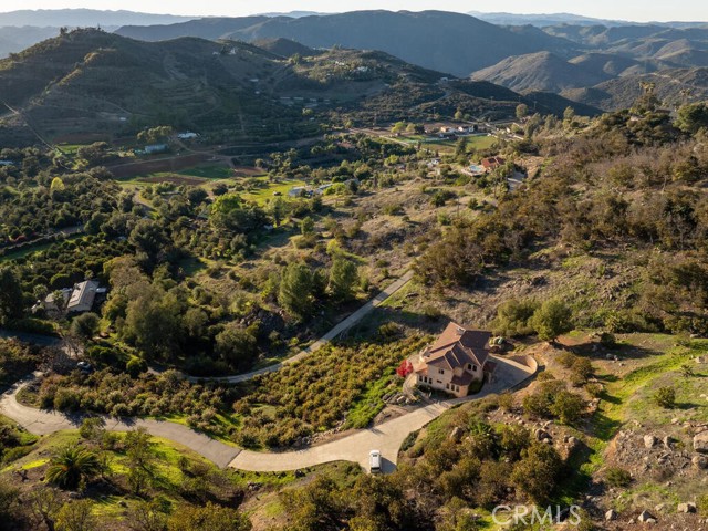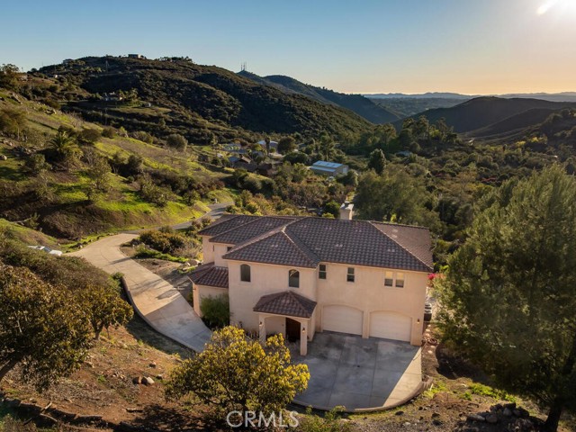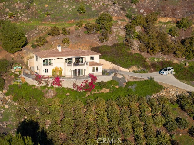 Set in a serene valley on 4.8 acres, this custom Mediterranean estate offers unmatched privacy and sweeping panoramic views. Built in 2010 for its original owners, the home features premium upgrades throughout. With 2,705 sq ft of living space, the home includes 3 bedrooms, 2.5 bathrooms, and a spacious game room complete with a pool table and wet bar. Rich Knotty Alder wood accents, Caspian-style lighting fixtures, dual-pane Milgard windows, oversized sliding doors, a tankless water heater, and dual-zone heating and A/C add to the home's appeal. As you step through the grand entrance, you're greeted by a soaring foyer with high ceilings. The ground level hosts the game room and two bedrooms, while the upper level opens to a stunning great room. This expansive space encompasses a dream kitchen, wood floors, vaulted ceilings, a dining area, living room, and the primary suite all with breathtaking views. The chef's kitchen is a true standout with floor-to-ceiling solid Alder cabinetry, granite countertops, a Dacor stove cooktop with a down-draft system, double ovens, and a walk-in pantry. The combined dining and living areas offer an ideal space for entertaining. Step outside onto the expansive deck, complete with a Weber BBQ, piped propane, and a Sun Setter awning, perfect for outdoor gatherings. The primary suite features a private balcony, a walk-in closet, a luxurious soaking tub, and a walk-in shower. Positioned at the highest point of the property, the home boasts unobstructed views extending to the coast. The property also includes approximately 500 Asian guava trees, 30 Hass avocado trees, and a variety of citrus trees, all irrigated by a private well. The oversized 2-car garage offers epoxy flooring, built-in cabinetry, and a separate sink. The driveway includes a convenient turnaround and paved RV parking. A security and fire alarm system ensure peace of mind. While nestled in a peaceful valley, the home is easily accessible, located just minutes from I-15 exits and a short drive from Temecula, Fallbrook, and the coast.Interested in this Listing?