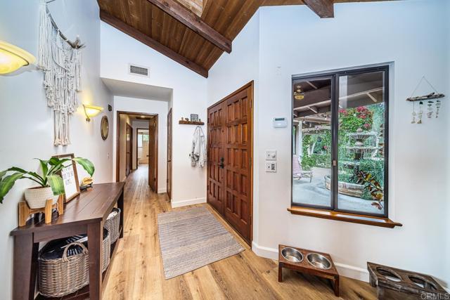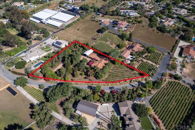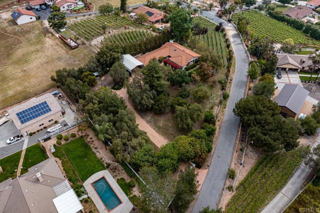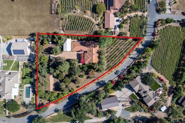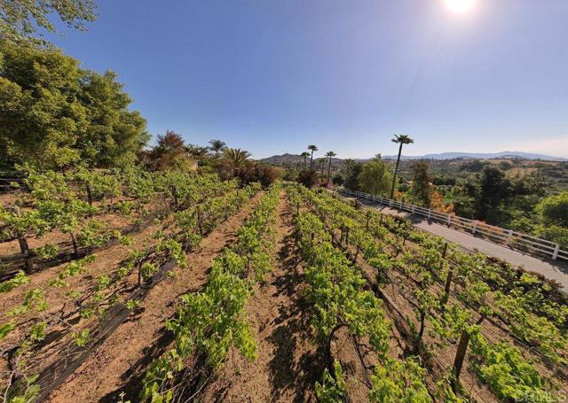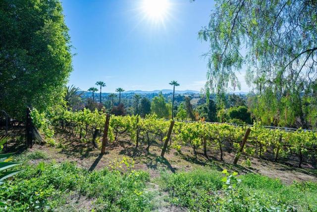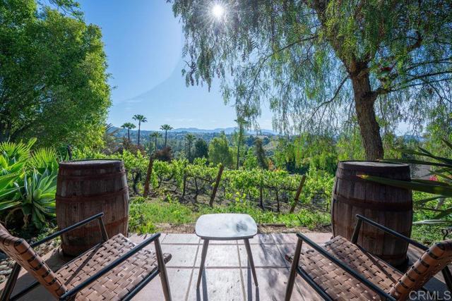 Welcome to 2278 Casitas Del Sol, a beautifully crafted single-level Ranch style home located just eight minutes from downtown Fallbrook. This Spanish Hacienda is a rare blend of character, privacy, and lifestyle with breathtaking panoramic views of the mountains, surrounding countryside, and you very own vineyard. The setting is as serene as it is scenic. Inside the 2,100 square foot home you will find vaulted ceilings with exposed beams and updated wood-look vinyl flooring throughout. The open layout includes three spacious bedrooms, each with oversized closets and abundant storage, along with three full bathrooms offering comfort and versatility for both family and guests. Perfect for entertaining or quiet country living, the property boasts over 140 mature Merlot grapevines on a full drip irrigation system and a dedicated wine cellar, creating your own private vineyard experience. The grounds also include a variety of mature fruit trees, producing avocados, Asian pears, figs, passion fruit, macadamia nuts, and more. The 1.44 acre lot is fully fenced with an automatic gated entrance and features bountiful bougainvillea-wrapped exterior walls, an extensive chicken coop, and a stained concrete driveway that leads to a two-car garage with extra space for a workshop, and an oversized RV or boat hangar complete with hookups ideal for outdoor enthusiasts or hobbyists. Whether you're relaxing on the patio with a morning coffee, reading book near the wood-burning fireplace or strolling through the vines at sunset, this home offers a unique combination of country living and modern functionality. It's not just a home it s a lifestyle waiting for you in the heart of Fallbrook.Interested in this Listing?