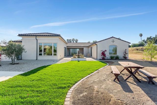 BRAND NEW CONSTRUCTION, STUNNING VIEWS! Ready for move in! Perched on a private one-acre lot with breathtaking views, this brand-new single story, gated custom home is a true gem. Featuring 3 bedrooms, each has a private bathroom, separate guest bathroom, large office/den, hand troweled walls, 8 foot tall interior doors, Wolf and Subzero appliances and oversized 3 car garage. This property includes room for RV parking with full hookups, rain chains and high end finishes throughout. The private courtyard seamlessly blends indoor-outdoor living with a fire pit, Lynx Sedona BBQ, water feature and plenty of space to entertain. This home is thoughtfully designed and truly stunning! NO HOA or MELLO ROOS.Interested in this Listing?