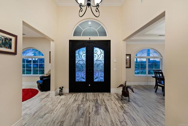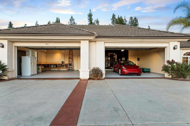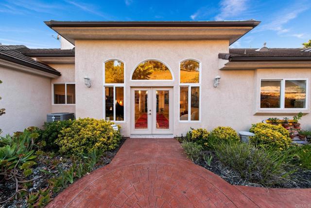 HIGHLY sought after single level modern Mediterranean estate, with 5 bedrooms and 4.5 baths is a true turnkey masterpiece nestled on a private 2.08-acre corner lot with quick and easy freeway access. Boasting 3,787 square feet of meticulously designed living space, this unparalleled luxury, state-of-the-art technology, and sustainable features, making it an ideal home for those seeking both comfort and sophistication. Step inside through custom double wrought iron doors into a world of elegant finishes and open-concept design. The Great Room features soaring 18+ foot tray ceilings, highlighted by a stunning Gustav Klimt-inspired MOMA rug, a vintage baby grand piano with computerized self-player system, and a Sony and Yamaha entertainment center that creates the perfect setting for relaxation or entertaining. The room is acoustically perfected with JBL ceiling speakers and outfitted with voice-controlled lighting and music for an intuitive living experience. The adjacent library is filled with natural light, creating an ideal space for cozy reading. For the culinary enthusiast, the chef s kitchen is a dream. Equipped with top-tier appliances, including a six-burner Viking cooktop, whisper-quiet Bosch dishwasher, and GE Monogram stainless-steel and glass vent hood, it offers an expansive center island with ample storage and space to create gourmet meals. The adjacent family room includes a carved marble mantle fireplace and features a 75-inch Samsung UHD television with a thundering five speaker surround sound system, a custom-built bar with a hammered nickel sink, a built-in beverage center, and lighted stone-and-glass shelving, perfect for displaying your finest spirits. The luxurious master suite serves as a private sanctuary with a gas fireplace, complete with a spa en-suite featuring a six-jetted Jacuzzi soaking tub and his-and-her wardrobe closets. The room is cooled by a dedicated energy-efficient mini-split air conditioning unit, complementing the home's dual zone high efficiency central air conditioning system to ensure perfect comfort year-round. The home s technological infrastructure is second to none, offering a double-redundant wired and wireless security system with multiple security cameras and professional monitoring, a wholly owned 36 panel (11+ kW) solar electric generation system and central vacuuming throughout. The four car garage and workshop is outfitted with a Tesla EV charging station and 220V outlets . The garage itself is fully cooled and heated with an oversized independent mini-split unit, making it the ultimate space for your tools, tinkering and hobbies. This estate also includes an enclosed vegetable garden, an RV parking area with electrical hookups, and ample buildable land ideal for a potential ADU, equestrian facilities, or even a luxury infinity pool. The expansive outdoor space offers endless possibilities for outdoor living and leisure, all while being fully powered by solar the current owners have kept the home at a comfortable 68 degrees throughout the warmer months with a surplus of electricity generated annually. Located just minutes from beaches, Downtown Fallbrook, Carlsbad and Temecula's dining, wineries, golf courses, and world-class shopping, this home provides the perfect blend of peaceful country living and convenient urban and freeway access. Substantial furnishings available to convey with the property, allowing you to move in and immediately enjoy all that this one-of-a-kind estate has to offer. https://www.youtube.com/watch?v=PEk7YudSbWUInterested in this Listing?