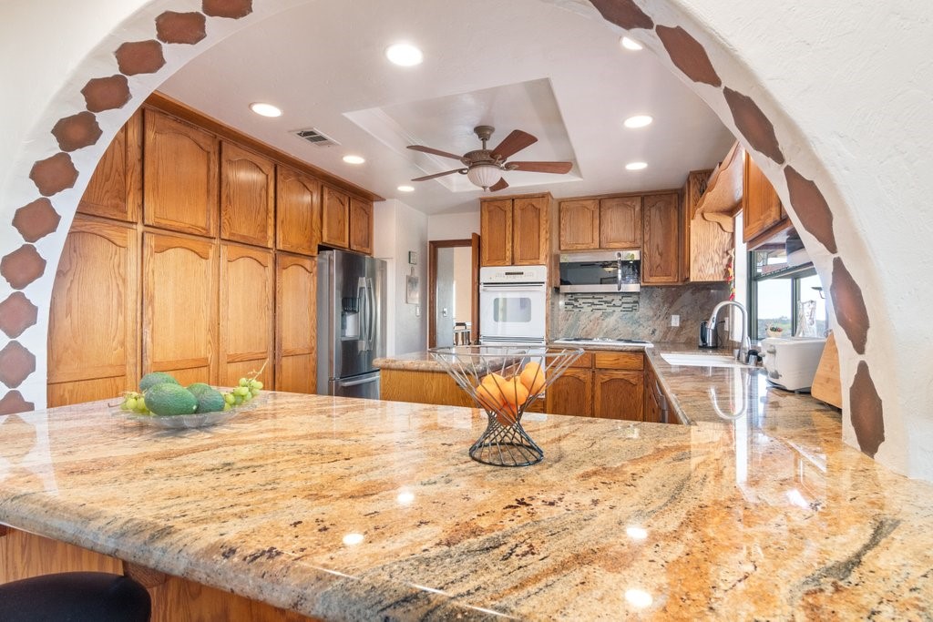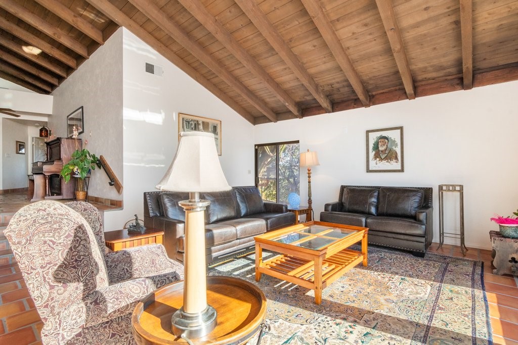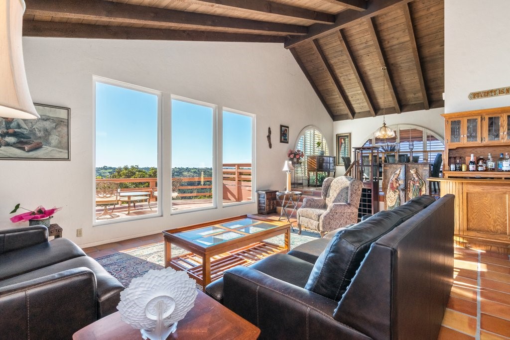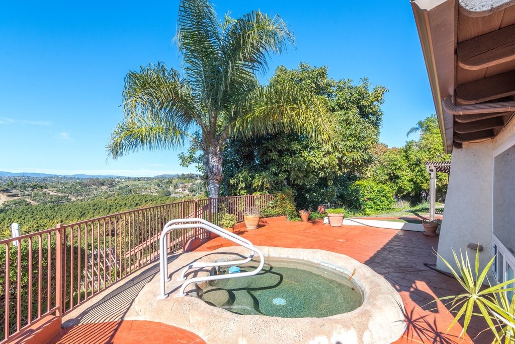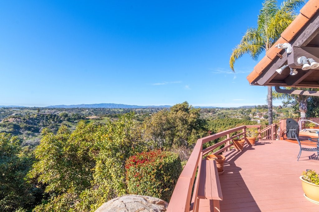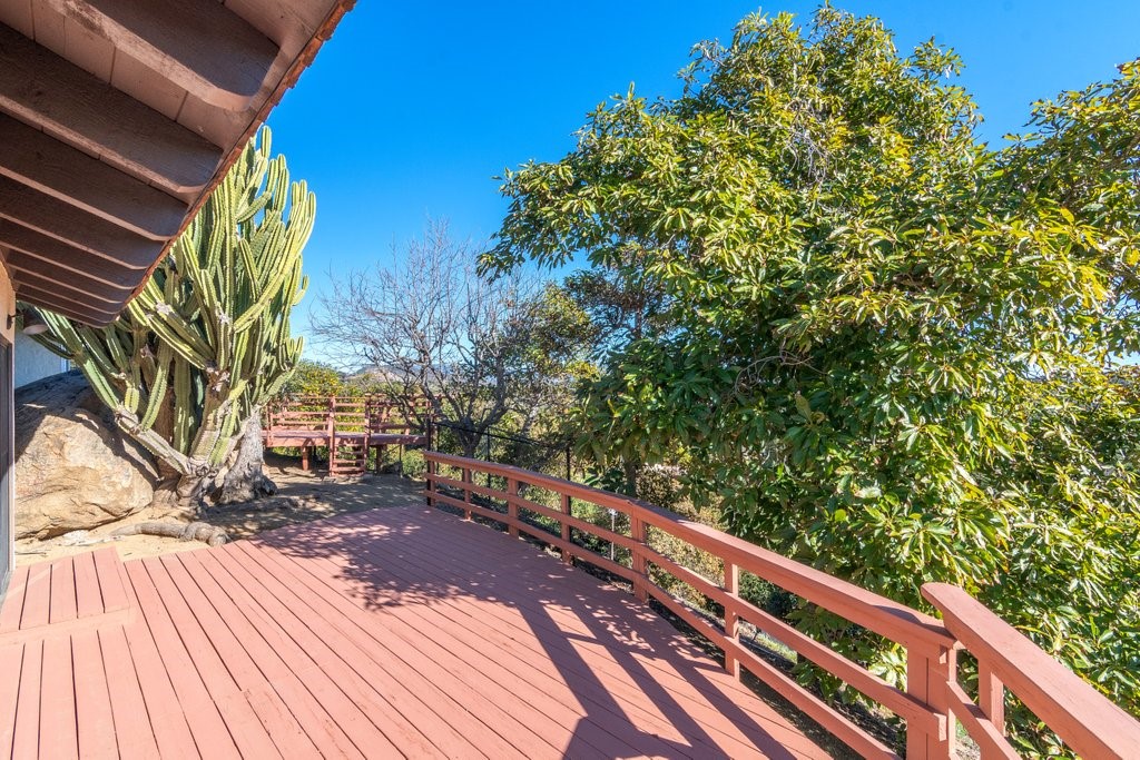 Beautiful single story home with amazing views. This gorgeous home sits high on a hill with views, views, views! Nestled in the middle of small avocado grove, giving lots of privacy. There are 2 separate parcels that make up just over 4.5 acres in total. The property also has multiple other fruit trees, including oranges, tangerine, lemons, lime, peach, apricot, olive, persimmons, fig, and blood orange. There is a completely separate bedroom and bathroom with it's own access and a walk in closet, giving this home a range of possibilities. The interior boasts a master bedroom with large master bathroom, custom shower, walk-in closet, and amazing views. The sunken living room has vaulted ceilings with large windows, a built in bar, and amazing views. The kitchen provides lots of storage, an island, granite counters, and amazing views. Just off the kitchen is a large dining room that is open to the living room with shutters on the windows, and amazing views. One of the guest rooms has a sliding door to the back patio. The large indoor laundry room has additional storage, a sink, and access to the back yard. There is a 2-car garage connected to the house, and a separate 1-car garage for additional storage, tools, etc. The paid solar system greatly offsets the electricity usage. The wonderful decks and patios that go around the back and side yard give lots of space to enjoy the outdoors and the views. There is an electric awning for some shade on the deck as well as a built in spa. This home is extremely well kept and loved by the current owners. The grove is approximately 230 avocado trees.Interested in this Listing?