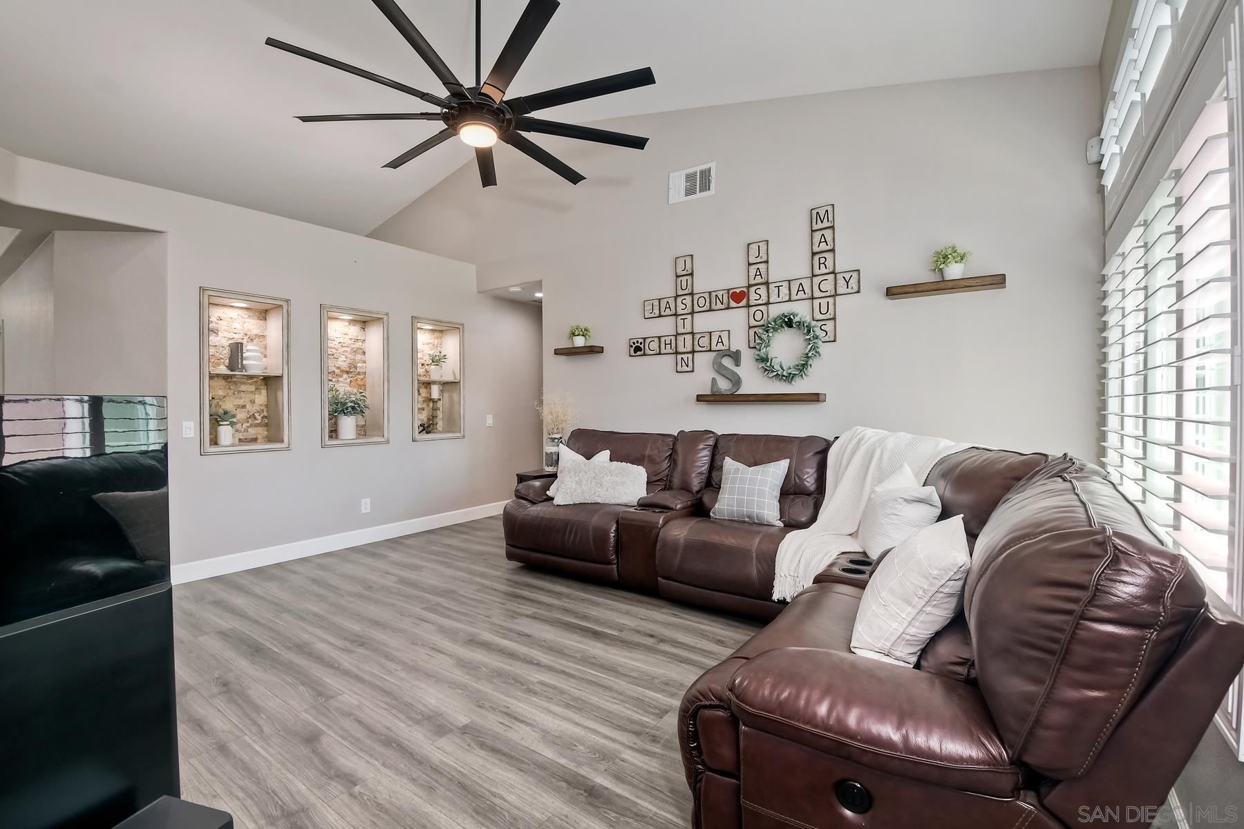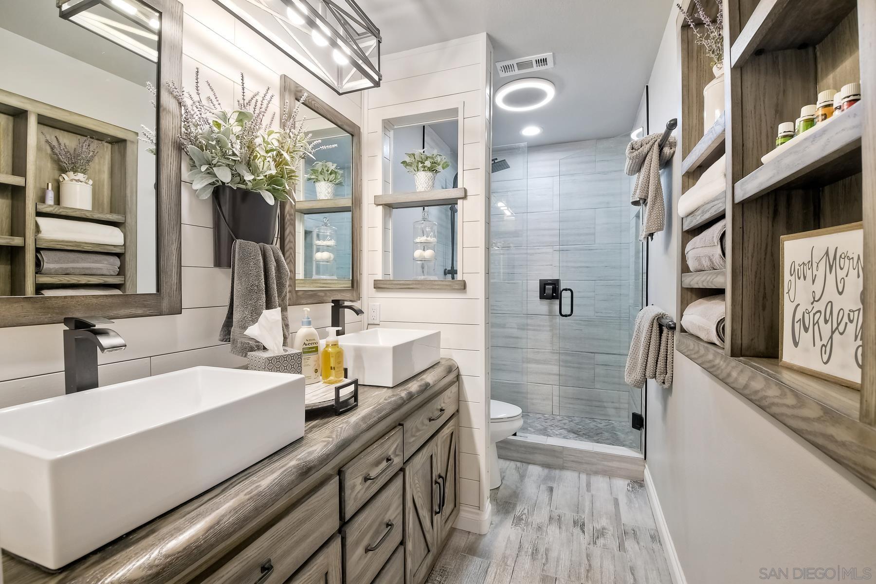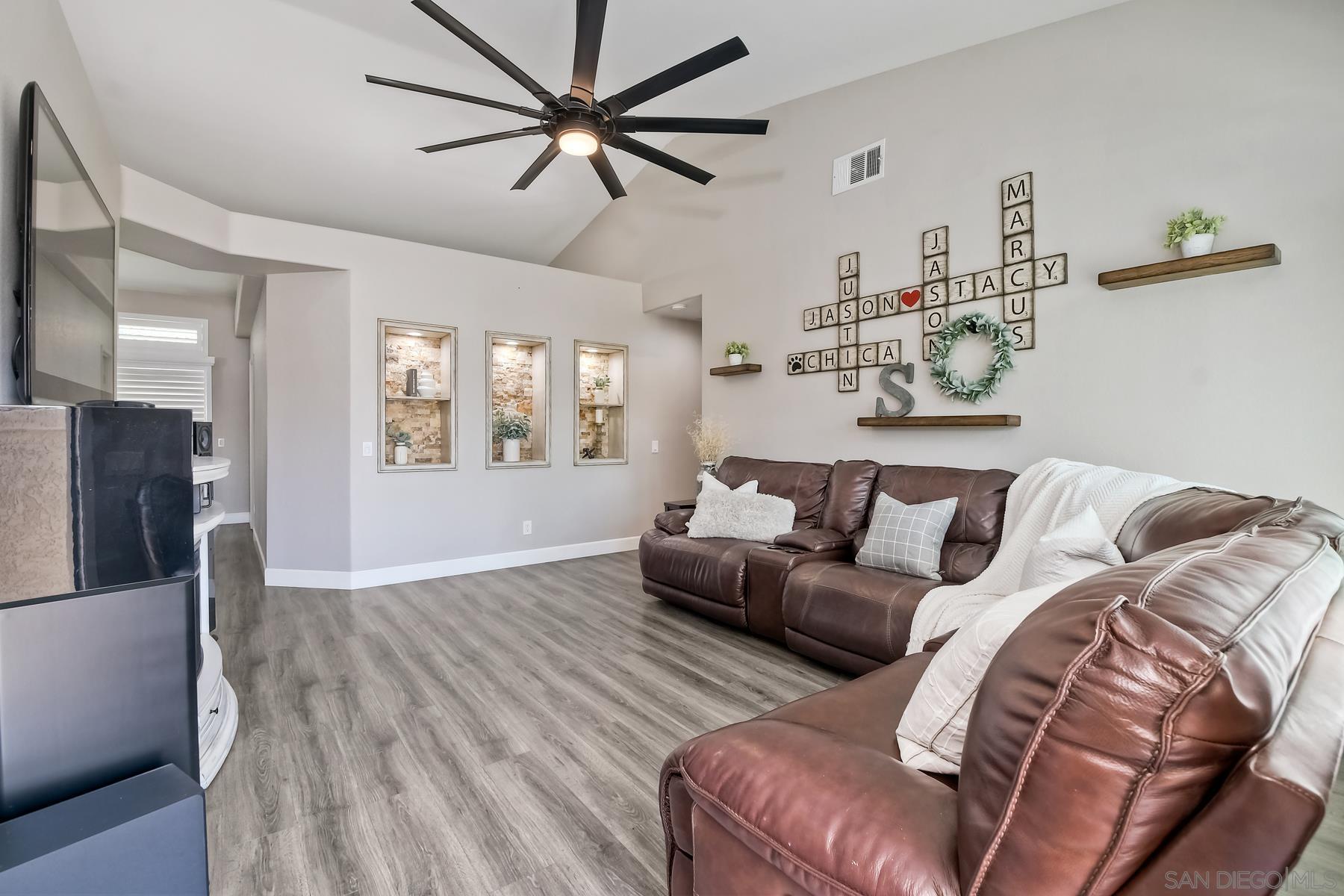 Welcome to this fully renovated 4-bedroom, 2-bathroom move-in ready home in the heart of Fallbrook. The updated kitchen features farmhouse-style cabinetry, granite countertops, stainless steel appliances, and a custom built-in coffee bar. Vaulted ceilings and plantation shutters enhance the open-concept living space, while new flooring flows throughout the home. Additional highlights include built-in hallway cabinets, custom shelving, and spacious bedrooms filled with natural light. The private backyard offers a peaceful outdoor retreat ideal for relaxing or entertaining. Located in a quiet neighborhood surrounded by Fallbrook s rolling hills and mild climate, this home blends comfort, charm, and quality upgrades. A must-see!Interested in this Listing?