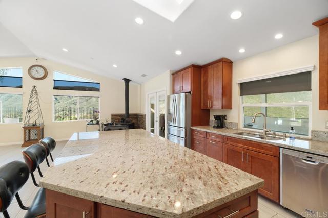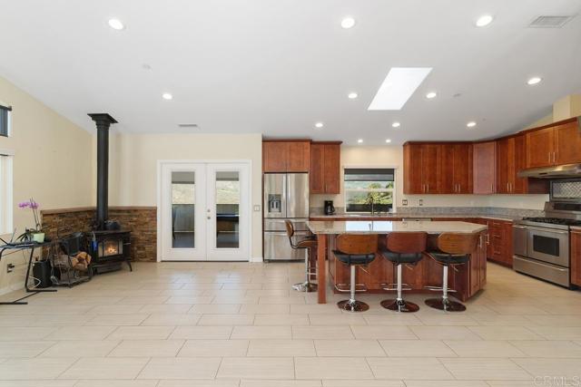 ***Price Reduced $50,000*** / Sellers Motivated / Open Houses Every Day from 11 am to 3 pm / Recent Well and Septic Certification and Termite Clearance / High End Designed Single Story Home Built in 2017 and includes a Great Producing Potable Well, Paid for 32 Panel Solar and Panoramic Countryside Views all Nestled in the Beautiful De Luz area of Fallbrook. This Amazing Semi-Rural Hilltop Home sits on an Expansive 7.73 Acres and is located only 8 miles outside of Downtown Fallbrook. This Incredible Home has 3 Bedroom and 3 Full Baths and Spans 2,212 SF of Inside Living Space. The Amazing Great Room includes a Large Gourmet Chef's Kitchen with Granite Countertops, a huge 5 Seat Island, SS Kenmore Elite 5 Burner Gas Stove Top and Double Electric Range, SS Maytag Dishwasher, SS Whirlpool Refrigerator/Freezer, Walk in Pantry and Gorgeous Soft Close Cherrywood Cabinets. The Great Room has Cathedral Ceilings, recessed Lighting, a Free-Standing Wood Stove, Beautiful Tiled Flooring, Large Windows with Electric Shades, and a Skylight to bring in added Natural Light. The Home also has a Whole House Fan and Central A/C and Heat, and a Water Softener/Filter System. There are 3 covered patios greatly expanding your Outside living space. The Front Entrance Alumawood Patio cover is Massive Spanning the entire length of the home, and the 2nd Roof overhang covers the opposite side of the house currently used as a pool table/party room. The 3rd Alumawood Patio cover is off the 3rd Bedroom. The inside Laundry room comes with 1 year old Maytag washer and Dryer, and Sink with Granite Countertops. There are 2 Fenced areas around the house for your pets, and a 2 Car Garage with new Garage Doors. The Master Bedroom has a Fireplace, Ceiling Fan, Walk-in Closet, and the Master Bathroom Suite has Double Sinks and Vanity with Granite Countertops and Walk-In Shower and Private Powder room. The 2nd Bedroom also has a Ceiling Fan and Ensuite Bathroom with a Walk-In Shower and Vanity with Granite Countertops. The 3rd Bedroom has a Ceiling fan and a Barndoor Closet Door. The 3rd Hallway Bathroom has Granite Countertops and a Clawfoot Tub. The 45 GPM Well has Potable Water and two 5,000 Gallon Water Tanks. The Property also has 2 Large Pads, one of which has a large Metal 40 long x 20 wide Awning perfect for an RV/Trailer and comes with Power and Septic connections. The 2nd Pad in front of the home currently has a Large Chicken Coop and would be ideal for a Pool and or ADU/Guest House. There are approximately 40 Avocado Trees and many sellable Wild Flowers, raised vegetable gardens, and other Fruit Trees Including Lemon, Lime, Grapefruit, Blood Orange, Plum, and Peach. Welcome Home!Interested in this Listing?