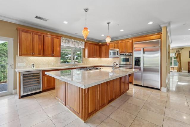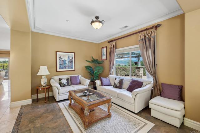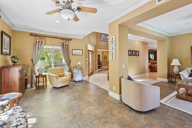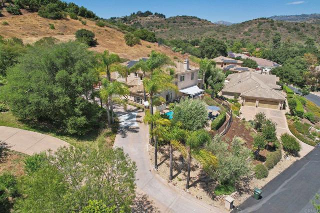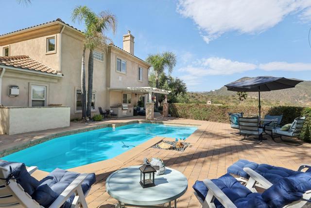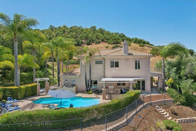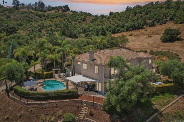 Step through the grand glass door framed with side panels and into the foyer, and you ll be greeted by a stunning staircase reminiscent of a scene from Gone with the Wind. Can you picture your beautiful child gracefully descending in their prom dress? The wrought iron railings are ornately crafted, setting the tone for the timeless design throughout the home. This is the kind of place where lifelong memories are made: birthday parties, anniversaries, holiday gatherings, and everything in between. Every moment becomes a special occasion in this inviting and spacious household. This elegant custom home within the Tecalote Oak gated community is entirely filled with durable and stylish flooring including travertine and tile inlays with intricate patterns that elevate the living spaces with elegance and ease of maintenance. Each room offers generous proportions, giving everyone plenty of personal space; yet the open-concept kitchen and family room layout ensures that time together is seamless and inclusive The new, quartzite, extra large island and counter, double oven, wine fridge, and breakfast nook is perfect for setting up a buffet, hosting gatherings, or simply enjoying casual meals with friends and loved ones, all while staying connected to the conversation. The primary suite is a true retreat, complete with a spa-inspired bathroom featuring a large walk-in shower, jetted tub, double sinks, and a spacious walk-in closet. A private balcony off the primary bedroom offers stunning vistas and cool breezes ; your own little escape right at home! During the summer months, the backyard becomes your private resort with a natural gas grill. Take a dip in the sparkling pool or unwind in the inviting above ground spa and soak away the stresses of the day. The backyard also features beautiful mountain views and avocado groves that can be enjoyed not only outdoors but inside as well from the kitchen, living room, dining room, and upstairs windows; bringing nature's beauty inside. Lemon, mandarin, olive trees, and a lantana shrub luring the hummingbirds and butterflies offer a touch of natural beauty. Also, this could be the perfect starting point for your very own orchard or vineyard in the upper part of the yard! There's ample room to expand the outdoor living space by building a deck that could extend from the existing patio; creating a seamless blend into the skyline. Thoughtfully designed for comfort and flexibility, the home includes a downstairs bedroom with its own en suite bathroom ideal for guests,and/or multi-generational living, Also, downstairs is an office space with built-in cabinets and desk countertop . Upstairs, you'll find three additional bedrooms and a large loft that can be used as a secondary living space, game room, playroom, home gym,or whatever suits your lifestyle. Adjacent to the loft is a large laundry room with numerous cabinets, sink, countertop, and wine fridge. Other home features include: 3 natural gas fireplaces, tankless water heater, 3 car garage with new custom cabinets, new epoxy floor, and owned solar. The entire home has been repiped with pex including a transferable lifetime warranty at no cost. Located just minutes from the Pala Mesa Resort and Golf course, this home offers easy access for golf enthusiasts to tee off whenever they like - or simply stroll over to the on-site restaurant for a relaxing meal. The surrounding area is perfect for an active lifestyle, with wide, peaceful streets often enjoyed by walkers, joggers, and neighbors out for a stroll with their dogs. This is more than a house; it's a place to grow, celebrate, and call your own. It's a rare opportunity to own a well-appointed home in one of Fallbrook's most desirable communities. Don't miss it!Interested in this Listing?
