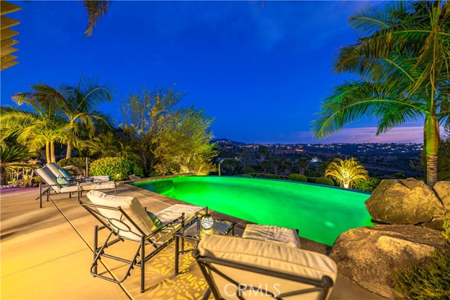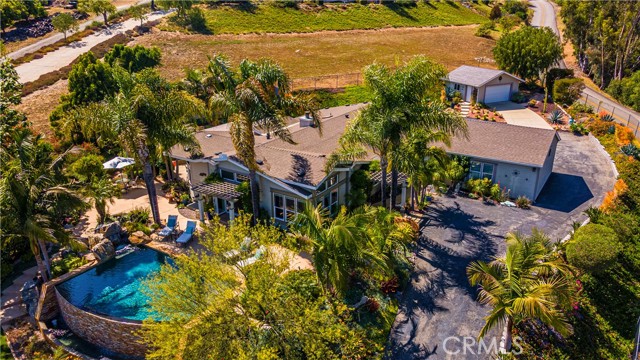 Discover this stunning turn-key estate in the heart of Fallbrook, set behind a private gated entrance on a beautifully landscaped 1.3-acre lot. Offering privacy, serenity, and sweeping views, this home blends refined country living with modern amenities. The grounds are a lush, edible paradise, featuring mature avocado, mandarin, apple, lime, lemon, and blood orange trees. Enjoy fresh fruit from your own backyard orchard while taking in the peaceful, well maintained surroundings. Inside, the home is filled with natural light and designed with quality and comfort in mind. The open-concept layout flows effortlessly, ideal for everyday living and entertaining. Elegant finishes, spacious living areas, and thoughtful details make this a true move-in-ready home. The highlight of the property is the infinity edge pool, perfectly positioned to capture panoramic mountain and valley views. Whether you're enjoying a sunset swim, relaxing poolside, or hosting gatherings on the patio, the scenery provides a stunning natural backdrop. Located just minutes from downtown Fallbrook, you'll enjoy the best of both worlds-secluded, peaceful living with convenient access to local shops, dining, wineries, and hiking trails. The area's mild climate and natural beauty make it an ideal retreat year-round This rare offering provides everything: a private gated entrance, usable acreage, resort-style pool, mature landscaping, and energy-efficient living- all in one of North County's most desirable communities. Come experience the charm, comfort, and lifestyle this exceptional Fallbrook home has to offer.Interested in this Listing?