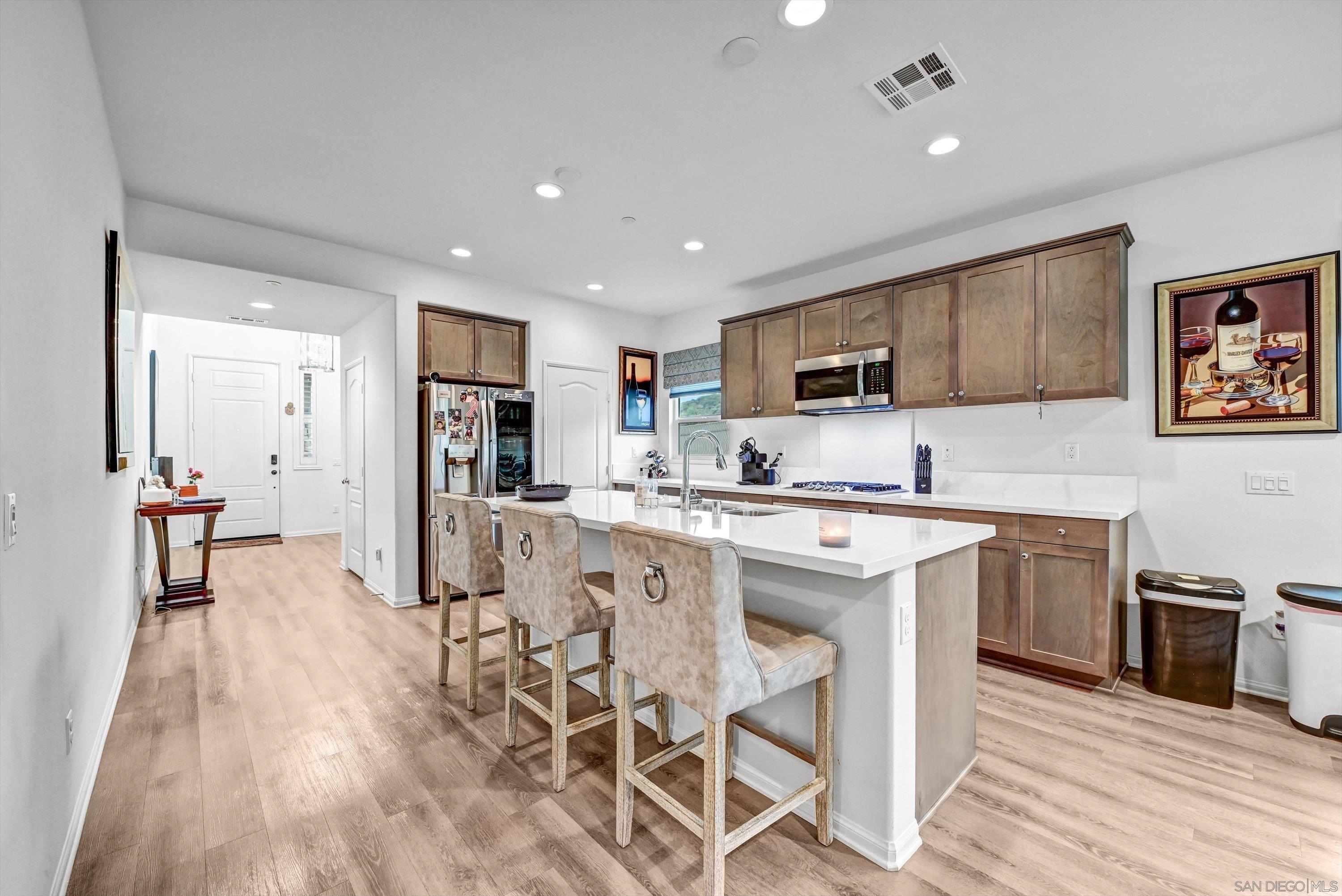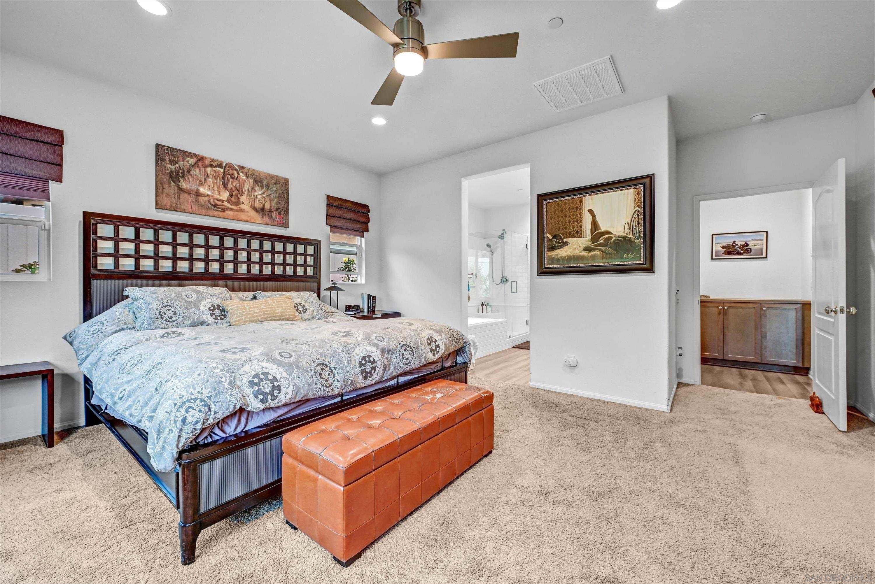 This Like-New Home Feels Like a Single Story with the Master on Main Floor. This home offers a range of Highlights that are sure to impress. As soon as you step inside, you'll notice the stunning Luxury Vinyl Flooring that leads you into a Gorgeous Chefs Kitchen with Quartz Countertops, Pantry, Custom Cabinetry, and Designer Stainless Steel Frigidaire Appliances. Custom window Treatments and Blinds adorn each room, providing a stylish and modern touch. The home is equipped with a 12-panel leased solar system, providing Energy-Efficient Savings. Additional features include a Whole- House Attic Fan, Central Air & Heat, Tankless Continuous Flow Hot Water Heater, Ample Storage, Ceiling Fans in the primary suite and downstairs guest room, and Ceiling Fan Hookups in the Dining Room, Loft, and Upstairs Bedroom. Loft could be turned into the 4th Bedroom. The Synthetic Turf in the rear yard, along with Custom Patio, Firepit, Pathways, and Rose Garden Planter, are Perfect for Outdoor Entertaining. The Epoxy Flooring in the Garage, EV Electric Charging Hook up, and custom hanging storage make it a perfect place for Car Enthusiasts. Take advantage of the Beautiful Community Clubhouse and Pool Facilities, offering Ample Entertainment and Recreation Options for the Entire Family. Why move to Temecula when you could be home already!! Don't miss out on the chance to call this amazing home yours!Interested in this Listing?