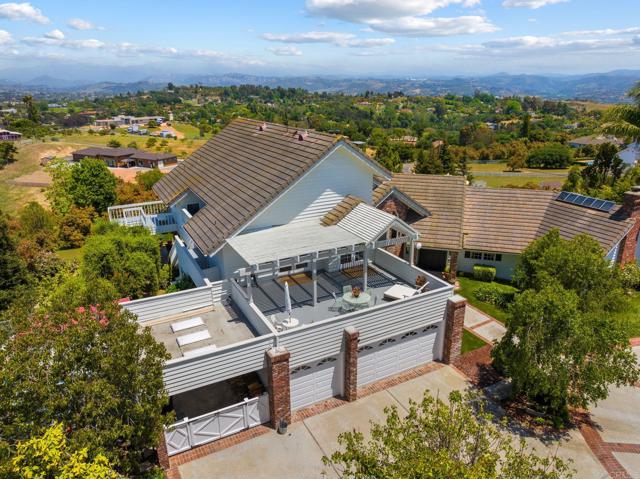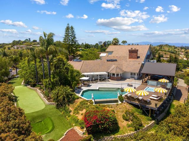 Welcome to a one-of-a-kind luxury estate in the heart of peaceful Fallbrook, California, where sophistication meets natural beauty on 2.78 lush, view-filled acres. This fully remodeled 5-bedroom, 6-bathroom home spans over 5,100 square feet and was designed by renowned architect Brion Jeannette to maximize light, flow, and panoramic vistas from every room. From the moment you enter, you ll be captivated by high vaulted ceilings, European French oak floors, and a seamless open floor plan that connects indoor elegance with outdoor splendor. The chef s kitchen is a true centerpiece, featuring a massive island, dual Dacor ovens, a walk-in pantry, and brand-new refrigerator and freezer perfectly positioned to enjoy views of the infinity-edge pool, spa, and distant mountains while staying connected to the adjacent family room and outdoor entertaining areas. With two home offices one with a private deck and inspiring views this property is as functional as it is stunning. The primary suite is a luxurious retreat with its own deck, library with fireplace, walk-in and separate shoe closets, and spa-like bath. The entertainer s dream backyard features a fully equipped outdoor kitchen with soapstone counters, three refrigerators, a teppanyaki grill, custom oak bar with commercial ice maker, kegerator, and more. There s also a putting green, lighted tennis court, and a versatile 1,800-square-foot detached garage with its own bathroom and septic system offering incredible potential to convert it into an ADU, guest house, or creative space. An attached 3-car garage provides additional convenience, and the grounds are dotted with avocado and fruit trees, all nourished by a private well. With fully owned solar, no HOA, and thoughtful upgrades including resurfaced decks, remodeled bathrooms, and well-maintained fireplaces and roof, this estate is truly turn-key. From breathtaking sunrises to golden sunsets, this home offers a lifestyle you won t find anywhere else a rare blend of luxury, comfort, and self-sufficiency in a community where neighbors still wave and kids laugh in the streets.Interested in this Listing?