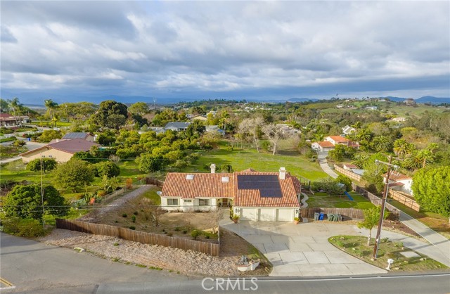 Welcome Home to Your Modern Mediterranean/Spanish Estate with Stunning Views & Upgrades! Nestled in the highly desirable Morro Hills community, this beautifully upgraded 3-bedroom, 2.5-bath home offers the perfect blend of modern convenience and serene country living. Located near the Oceanside border, enjoy easy access to coastal amenities while embracing the peace and privacy of this 1.01-acre flat, usable lot perfect for gardening, recreation, or future expansion. Plus, you're just minutes from beaches, hiking trails, shopping, and date nights at the famous Fallbrook wineries! Step inside this peaceful sanctuary, where a spacious formal living room with a custom wood-burning fireplace welcomes you. The formal dining room provides a great space for entertaining and seamless indoor-outdoor living. The home boasts a fully remodeled kitchen done in 2024, featuring new appliances, newly painted kitchen and bathroom cabinets, and stylish finishes throughout. The open-concept kitchen and family room also includes a large cooktop island with waterfall quartz countertops, a cozy breakfast nook, and a second wood-burning fireplace. The large master suite features a gorgeous en suite, walk-in closet, and sliding doors leading to the back patio, where you ll be greeted by breathtaking scenery and panoramic views. Step outside and enjoy your morning coffee or evening happy hours under the expansive covered patio. The fenced backyard is perfect for relaxing or entertaining, surrounded by orange, apple, lemon, and fig trees, creating a tranquil retreat. Also surround sound and audio for outdoor and living room music. Additional features include an indoor laundry room off the garage with gas washer and dryer hookups and a bonus deep sink, new HVAC added in 2023, plus a semi-circle driveway and three-car garage for ample parking and storage. Don t miss this opportunity to own a serene and move-in-ready estate with incredible views, modern upgrades, and space to grow in one of Fallbrook s most sought-after communities!Interested in this Listing?