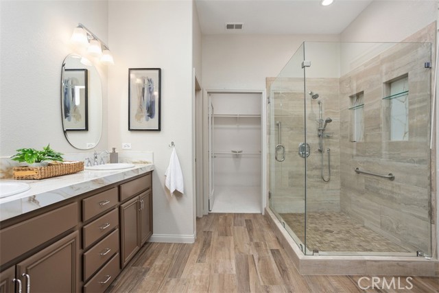 Back on the market! Welcome to this beautiful 5 bedroom, move-in-ready, Peppertree Park home with new flooring, remodeled kitchen, and comfortable courtyard style backyard, offering spacious living in a coveted private, gated community. Highlights include fresh interior paint in some rooms and new laminate wood flooring. Enjoy cooking in the gourmet kitchen specially upgraded and configured for memorable cooking experiences with your granite countertops, newer cabinets, recessed lighting, and stainless-steel appliances. As you walk into your home you will find ample room to relax in your formal living and dining rooms. The kitchen seamlessly opens to the family room and informal dining area. The formal living room and family room both open to the exterior, back courtyard patio. The primary suite has views of the lush backyard and courtyard. The remodeled primary bathroom has a large, luxurious walk-in shower, newer vanity and countertop, and a walk-in closet. Four additional bedrooms provide ample space for family or guests. Step outside to the comfortable, resort-style backyard which has a charming courtyard patio with room for outdoor dining, lush views, and a number of fruit trees to welcome guests as they relax in the backyard haven. The backyard has newer wrought iron fencing and the hillside is maintained by the HOA. Situated in the highly desirable Peppertree Park neighborhood, this home offers the added benefit of no Mello Roos fees. Don't miss your chance to own this spacious, well-situated home in one of Fallbrook's most sought-after neighborhoods.Interested in this Listing?