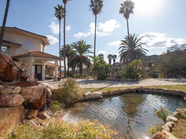 Can you spot a diamond in the rough? This is a rare opportunity to revive what was once an exceptional mountainside estate into its new glory using your creative vision. Location is the hardest thing to find, and this one has privacy and a rare 6.83-acres with stunning views of Palomar Mountain and the Pala and Pauma Valleys. Incorporating natural boulders and streams, extensive landscaping and hardscaping has created an impressive front circular drive entry with a welcoming waterfall. A large upper pond flows below the driveway into several other ponds and waterfalls, creating idyllic settings as you meander through the property. The water features attract wildlife and birds to complete your immersion into the natural beauty of this property. The large pond below provided fond memories of the kids and grandkids fishing together that are still appreciated to this day. Unusual for a hillside parcel, there is plenty of flat parking with a 3-car garage and room for an RV. With an expansive 4,027 footprint, the home s current floorplan has 4 bedrooms (all upstairs) and 3.5 bathrooms (with ½ bath downstairs.) The lower level has 2 bonus rooms - a large extra room which could be used as a game room or a lower-level bedroom; and another bonus room with a fireplace where the family would gather to sing and play music together. Today s buyer will want to enlarge the original kitchen, so there is plenty of flexible space to redesign the lower level to do so. With outdoor family gatherings in mind, the lengthy covered back patio has space for an outdoor kitchen and is the focal point of the sweeping views. There is a flat yard off the rear patio where the kids would play ball. The primary bedroom upstairs has a private deck for its own view of the valleys. Built in 1991, it needs updating, and has some deferred maintenance as well, including re-lining some of the ponds and finishing the outdoor kitchen. Everything is original, so you are starting with a blank slate for your ideas. There is separate gated access to the lower pond and an outbuilding/garage storage space. There is a Generac generator to keep the house running in case of electrical outage. New septic tank. Located in Rainbow just east of Fallbrook, it has an easy drive from the I-15; yet tucked below a natural crest, the property is protected from the I-15 traffic noise. Only a few minutes from Temecula and Fallbrook. The sale includes two APN # s [1092504600 & 1093300900] for a total of 6.83 acres.Interested in this Listing?