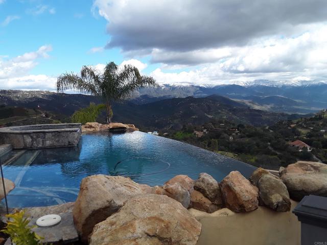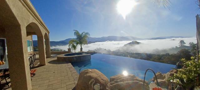Perched high atop a hill in Rainbow, you ll find the most majestic views, stretching so far into the distance that the eye can hardly comprehend it. It s a sight so spectacular, it feels as if Heaven itself has descended upon you. In the winter, you can see a blanket of snow on top of Mount Palomar. Other days, billowy clouds float above the horizon, and the sunrises are so breathtaking that words fail to capture their beauty, the way the light spills across the landscape, as if the sun is gently kissing the hills good morning, is simply unforgettable. Located just 10 miles from both Old Town Temecula and downtown Fallbrook, this property offers the perfect blend of tranquil seclusion and easy access to shopping, dining, and world-class wineries, making the location truly ideal. Step inside to discover a gourmet kitchen featuring top-of-the-line Viking appliances, a wine bar perfect for entertaining, and elegant finishes throughout. A spacious rotunda entry welcomes you home, offering a graceful place to drop your keys and unwind. The open-concept living room is bathed in natural light, and in the evenings you can curl up with a blankets and sip hot chocolate by the fireplace. Featuring a mix of elegant wood flooring, slate and travertine stone throughout, this home combines warmth and timeless sophistication in every room. Massive wall of glass expanding 12 ft with 2 sliding doors showcasing a a 6-foot opening to expand your living space onto the outdoor patio, creating a seamless flow between indoor outdoor lifestyle that is iconic of Southern California. Complementing this, the kitchen nook features a brand new 10-foot panoramic window, perfect for soaking in the sweeping views. Whether hosting guests or enjoying a quiet evening, this space offers flexibility and breathtaking scenery as your backdrop. Outside, a luxurious infinity-edge pool invites you to relax on warm summer days, while the calming sound of the cascading waterfall sets the tone for peaceful evenings. The panoramic views are so extraordinary, they rival even the most memorable vacation vistas, making every day here feel like a getaway. This home is so special, it feels like a permanent staycation, only it s yours to enjoy every day. It s also a fantastic opportunity for a short-term rental or vacation home investment. Don t miss your chance to experience it in person. Schedule your private showing today before someone else seizes this incredible opportunity.Interested in this Listing?