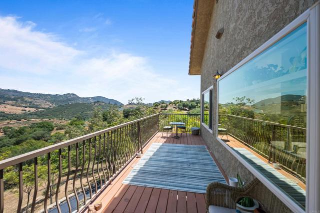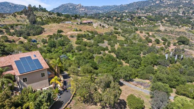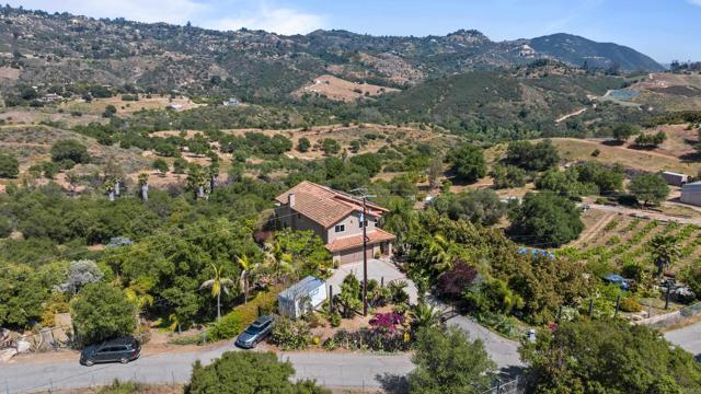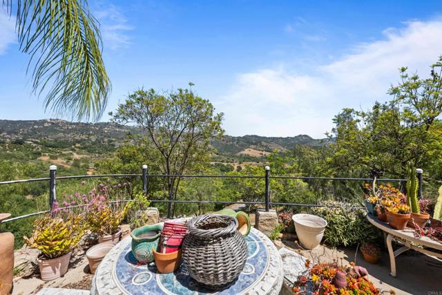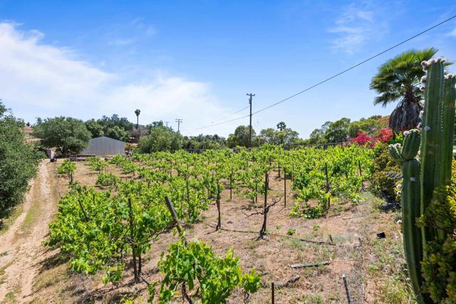 Welcome to your dream retreat! Nestled in the foothills of the Aqua Tibia and Santa Margarita Mountains, this stunning 3-bedroom, 2.5-bath home offers the perfect blend of elegance and tranquility. The spiral staircase sets the stage for sophisticated living, while the dedicated office provides a peaceful workspace. Step outside and find yourself immersed in a lush garden paradise, that has been lovingly planted and tended with over 6.5 acres of serene landscapes to explore. Savor the edible vegetation which includes a variety of herbs, 3 types of avocados, lemon, blood orange, red grapefruit, naval orange, plum, apricot, pomegranate, black berry, mulberry, table grapes and more! Are you a budding or experienced vigneron? Look no further! The onsite zinfandel vineyard and processing room will enable you to produce your own private label wine. Agricultual zoning, coupled with the well and water tank, provides an added opportunity to generate income from farming, and livestock. Imagine enjoying fruits and vegetables from your garden, raising chickens, and providing for your household needs by simply walking out your door and harvesting produce from your own backyard! Enjoy nearly 360-degree views from the various balconies, decks and patios. Meander along the pathway that winds through the expansive yard. Paid solar, close proximity to freeways, shopping, Temecula wineries, outdoor activities and so much more. Whether you're entertaining or unwinding, this property delivers opportunity and privacy in abundance. Make this breathtaking property yours today! The friendly community of Rainbow awaits you!Interested in this Listing?