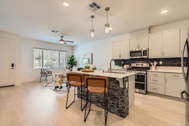 Welcome home to this exceptional townhome in the highly sought-after Tri Pointe Citro community perfect for young military families, first-time buyers, and retirees looking for comfort, convenience, and vibrant living. VA buyers take note: the appraisal and home inspection are complete and ready to transfer, reducing your costs and making your move even smoother! Nestled in the picturesque foothills of the Monserat Mountain Preserve, Citro is designed for an active and connected lifestyle. This master-planned community spans 235 acres and offers an impressive array of amenities: explore 14 miles of scenic walking trails, unwind in the resort-style pool and spa, relax at the recreation center, or enjoy the public park, dog park, bocce ball court, baseball field, community gardens, and even a potential future school site all within reach. Step into nearly 1,300 square feet of beautifully designed living space, where modern upgrades and thoughtful details make this home truly special. Fresh new paint and stylish laminate flooring flow seamlessly throughout the open-concept floor plan. The stunning kitchen features a gorgeous stack stone backsplash, spacious island, stainless steel appliances, pendant and recessed lighting, and custom blinds the perfect blend of functionality and elegance. Other perks include bidets, a cozy front yard, in-unit laundry with a newer washer and dryer, and a whole-house filtration system. A two-car garage with ceiling-mounted storage racks provides ample space for gear and essentials. Relax in the spacious primary retreat, complete with an en-suite bathroom, walk-in closet, large walk-in shower, dual sinks, and custom blinds. This eco-friendly smart home features paid-for solar and energy-efficient upgrades, ensuring a smaller carbon footprint and cost savings for years to come. Citro offers a unique lifestyle where daily food trucks bring exciting dining options, and 24/7 on-site security provides peace of mind. The location is unbeatable with easy access to freeways, shopping, entertainment, and beaches, making every commute or weekend getaway effortless. Don t miss this rare opportunity to own in Citro your new adventure starts here!Interested in this Listing?