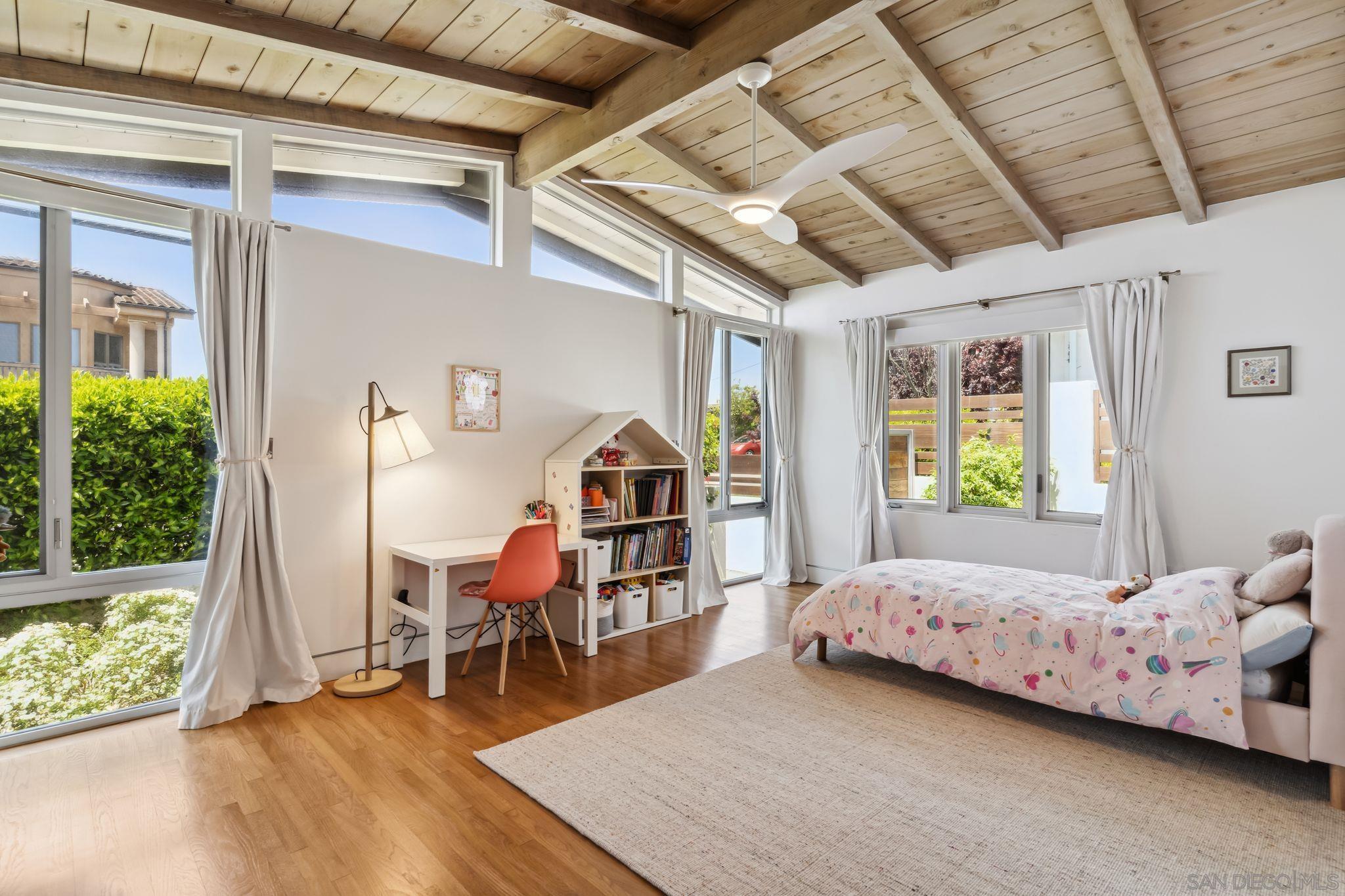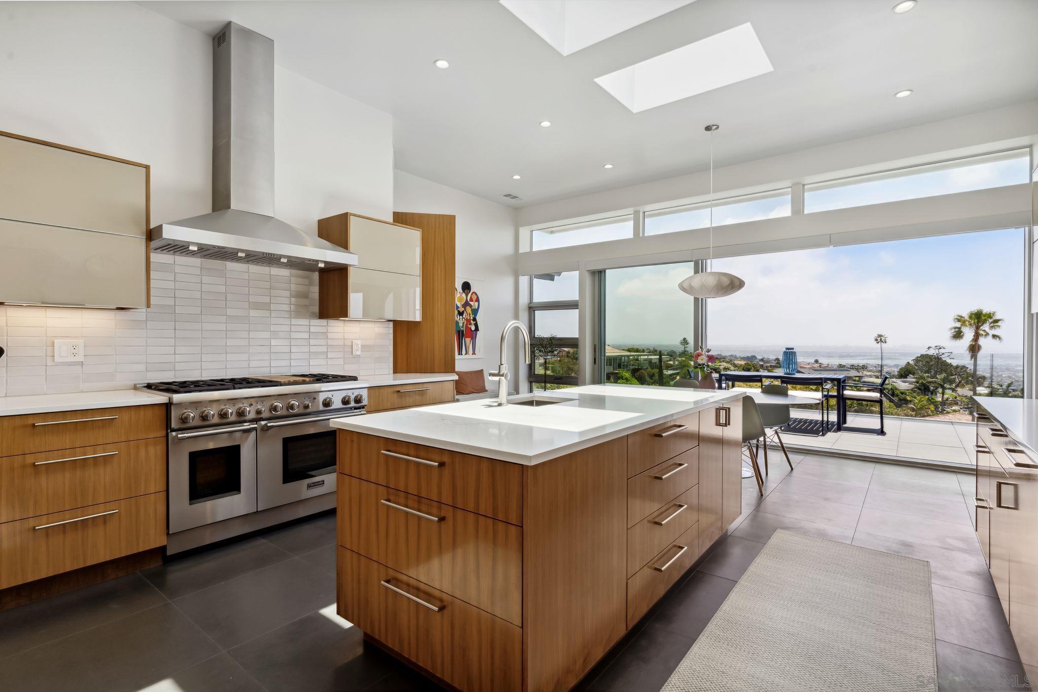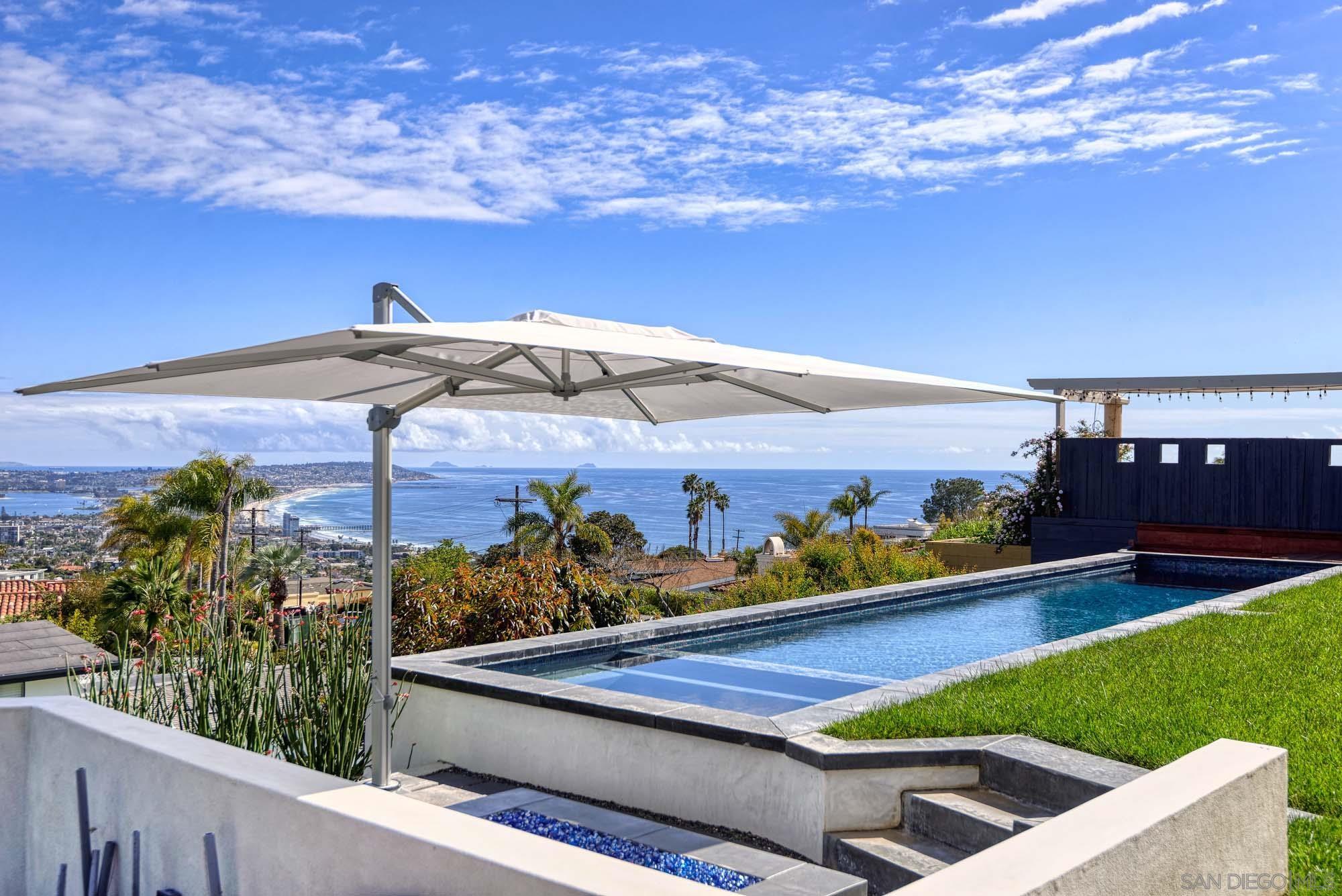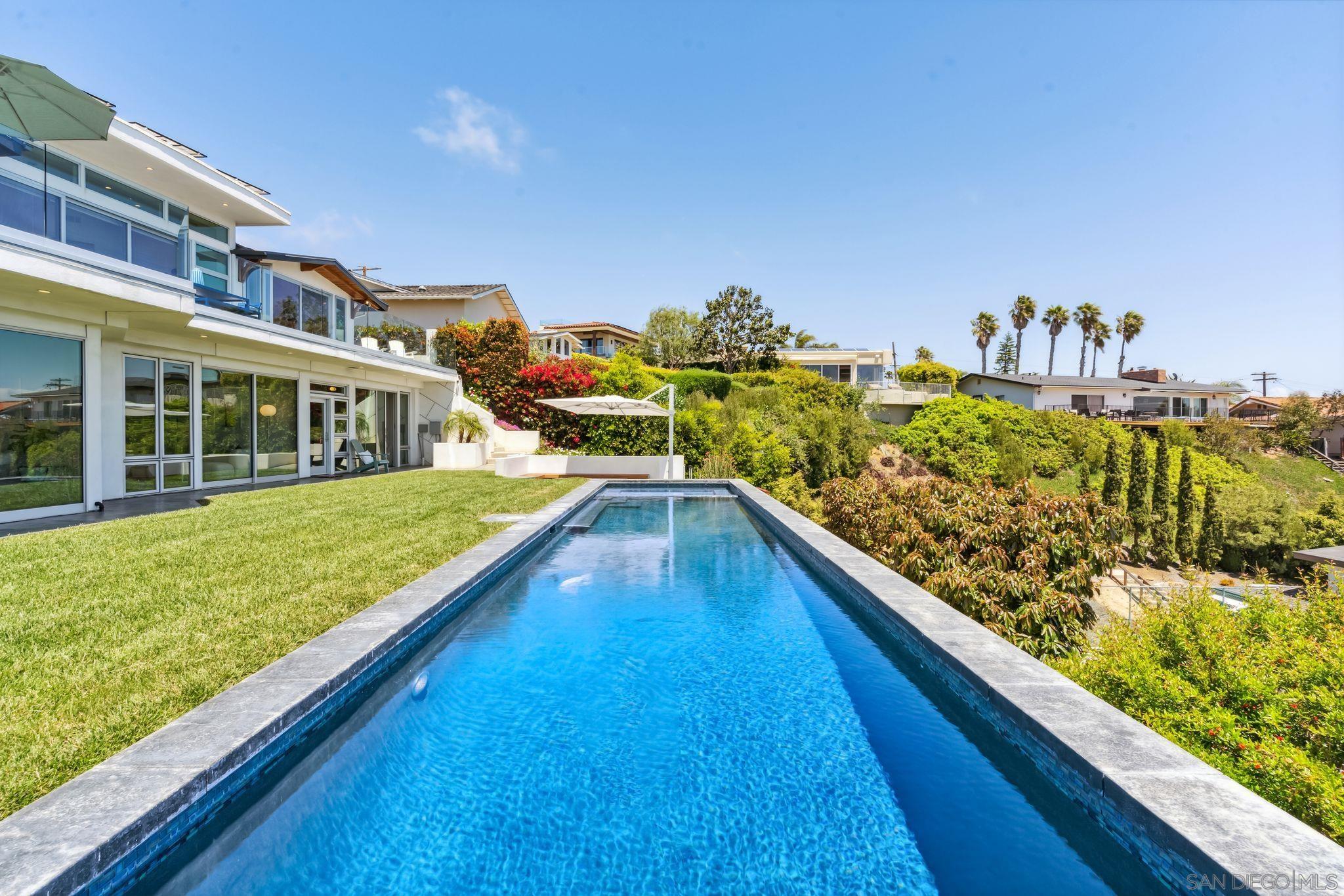 Sleek sophistication meets iconic mid-century inspiration in this stunning, fully reimagined Muirlands residence with jaw-dropping, panoramic views. From the first light of sunrise over the mountains to gorgeous Pacific sunsets and city lights twinkling past the Coronado Bridge, nearly every room captures a cinematic sweep of San Diego s most breathtaking vistas. The home has been taken to the studs and expanded with a 2,000 sq. ft. addition, blending timeless architectural elements open beam wood ceilings, vast panels of glass, clean lines, and indoor-outdoor flow with the finest contemporary finishes. The result: a uniquely seductive and livable design that elevates comfort and style. Lounge poolside while watching the ocean shimmer, or take in fireworks over the bay from your spa. A rare, refined offering in one of La Jolla s most prestigious neighborhoods.Interested in this Listing?