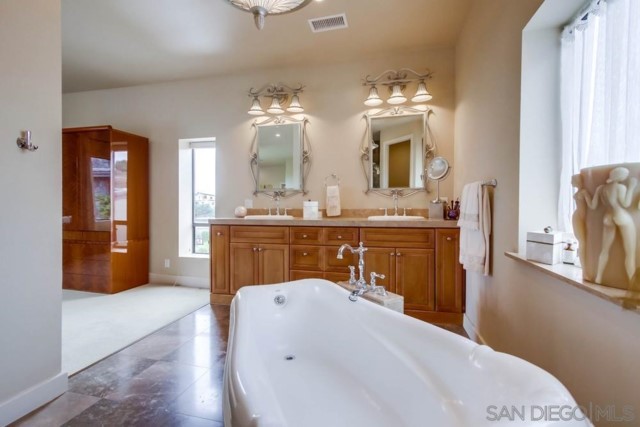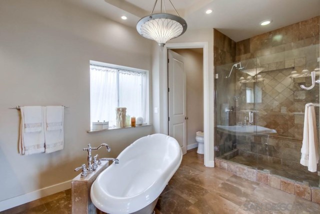 This wonderfully remodeled with new roof home boasts an incredibly large and beautiful lot with a breathtaking ocean view from your living room, bedroom, dining room, and almost anywhere else on the property. This home is located in a peaceful cul-de-sac community and features 3 large bedrooms as well as an office which can act as a 4th bedroom if desired. This elegantly designed home has been completely remodeled with the highest quality materials including travertine flooring, granite countertops, stainless steel appliances, designer light fixtures, and two marble and travertine fireplaces. The uniquely spacious open floor plan, soaring vaulted ceilings, and large windows make the house very bright and cheerful. The gourmet kitchen every home cook's dream; cook while enjoying the beautiful La Jolla sunset and sip fine California wine from your very own cooled wine cellar. This lovely home has a very large usable lot situated on over a third of an acre (rare for much of La Jolla) . The offset of the home is incredible. A private long driveway separates the home from the quiet cul-de-sac. The yard has beautiful landscaping, many of which are drought resistant. The home has 2 built-in 4k TVs (75" in the living room and 65" in the master bedroom) with aInterested in this Listing?