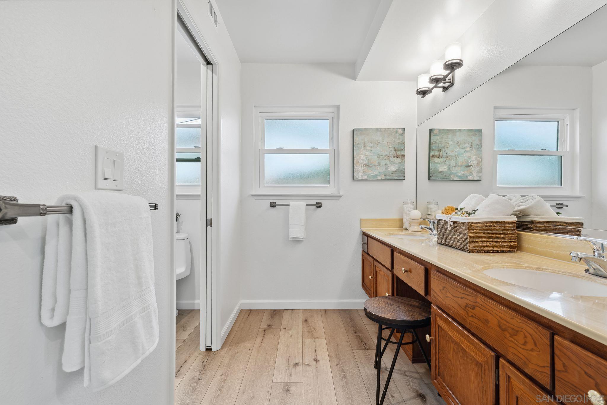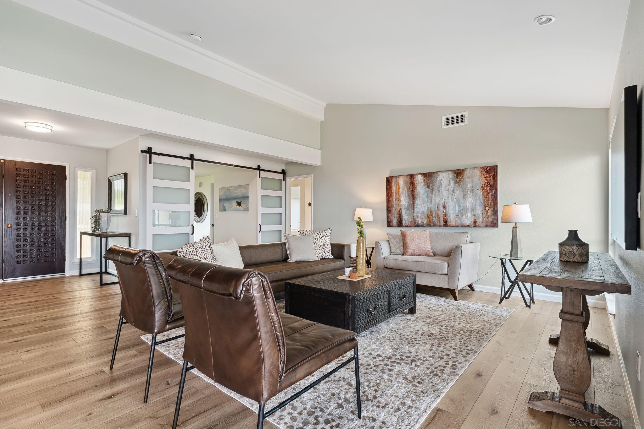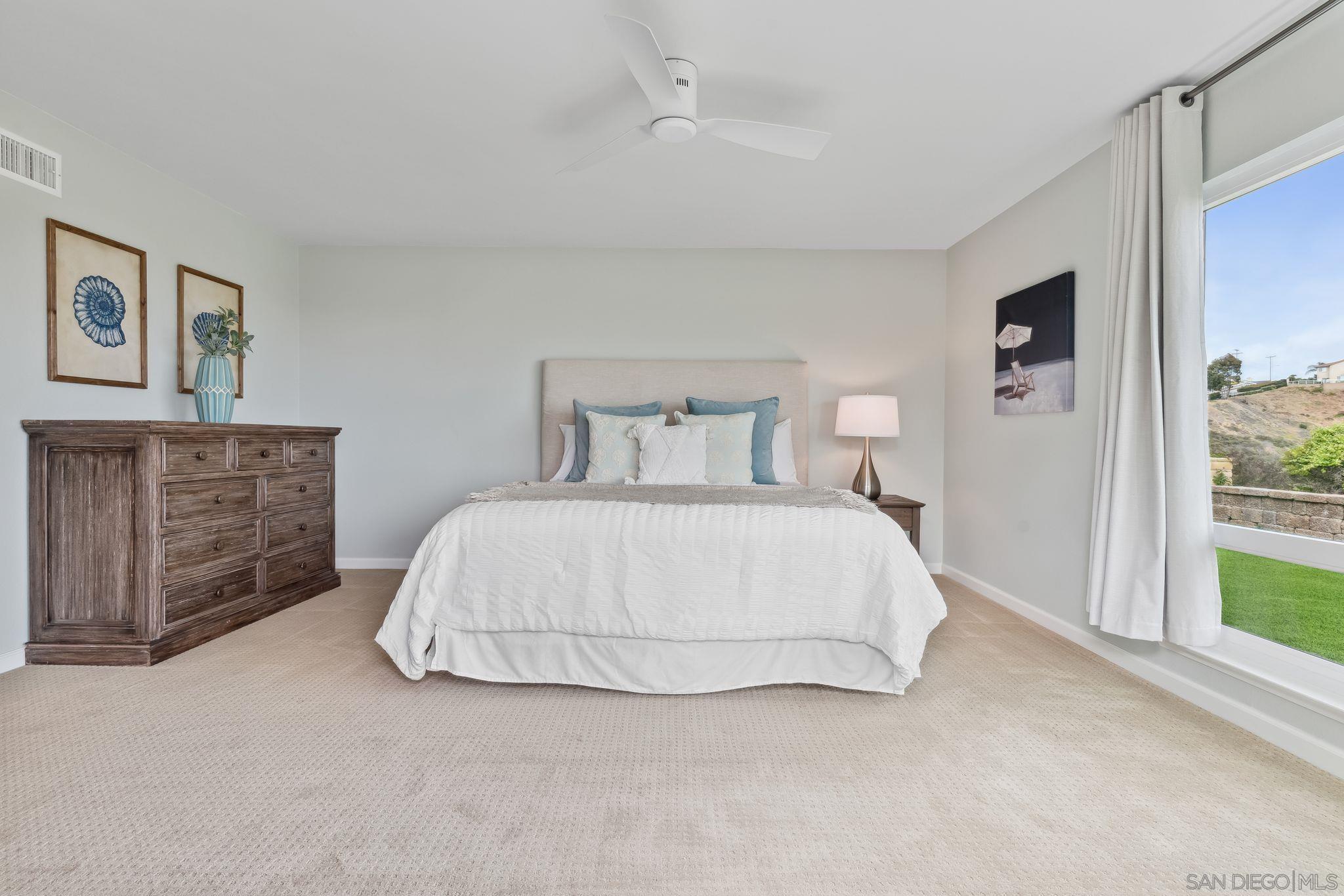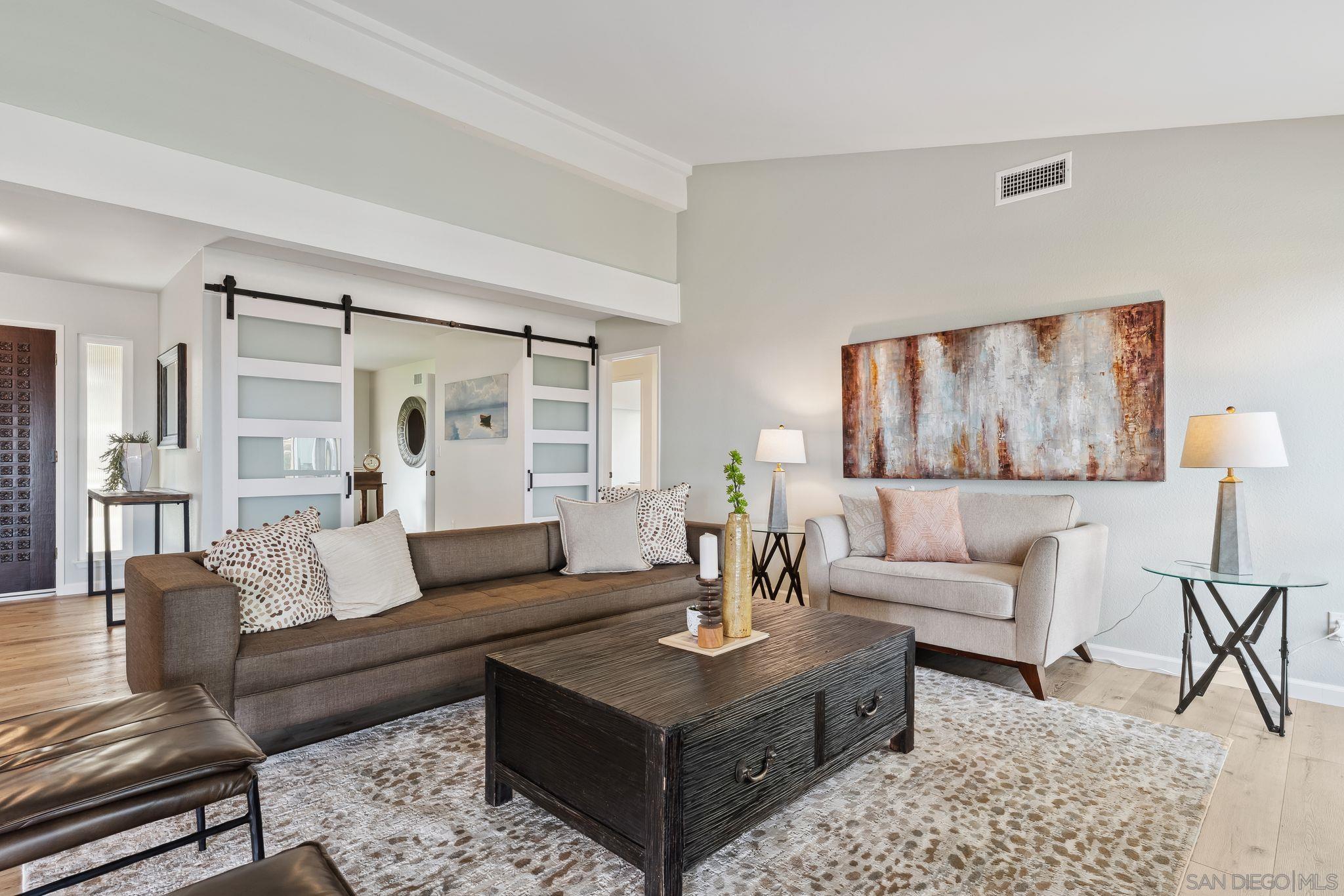 OCEAN VIEWS! Revel in sweeping 180-degree views of the Pacific Ocean and San Diego Bay from this impeccably updated single-story residence in the prestigious La Jolla Alta South neighborhood. Set on an expansive, lush lot at the end of a quiet cul-de-sac, this refined home offers a rare blend of privacy, sophistication, and coastal serenity. The interiors are bathed in natural light and showcase a thoughtful blend of modern elegance and comfort. Recent upgrades include new dual-pane windows and sliding doors, luxury vinyl plank flooring, and designer LED lighting with dimmers throughout. The kitchen has been elevated with a newly installed stone-topped bar, additional cabinetry, and a refreshed coffee bar complete with a built-in refreshments fridge ideal for entertaining. The primary suite features a new ceiling fan with remote, custom closet lighting, and a serene view corridor. The versatile study/bedroom is enhanced with a custom barn door and a built-in queen Murphy bed cabinet, adding style and function. This home feels practically brand new, with major systems and finishes thoroughly updated including a new Ultra Cool Corning roof, high-efficiency HVAC system, water heater with recirculation, upgraded electrical panel, and a Moen Flo smart water meter. Even the garage has been transformed with insulated doors, finished walls and ceiling, ceiling-mounted storage racks, upgraded lighting, and a sealed concrete floor.Interested in this Listing?