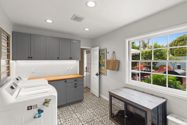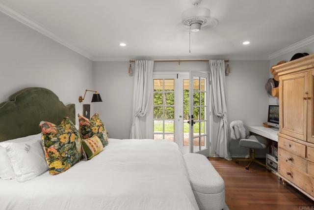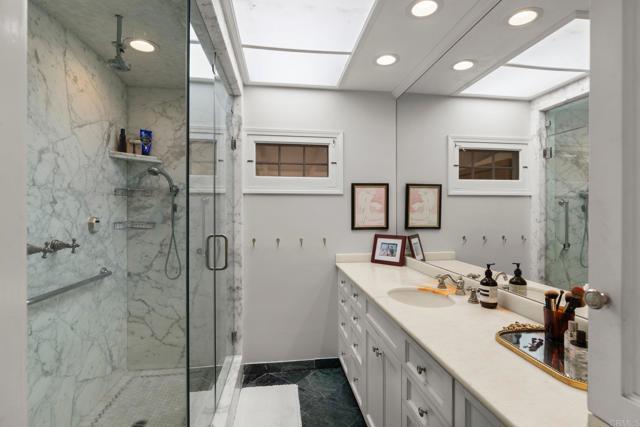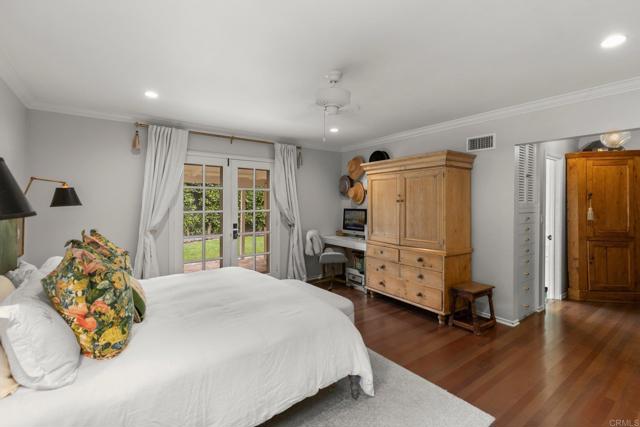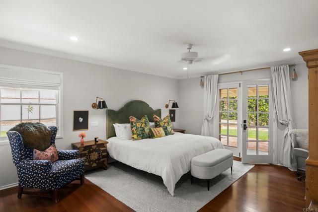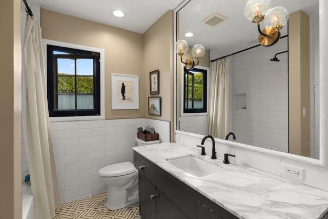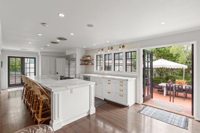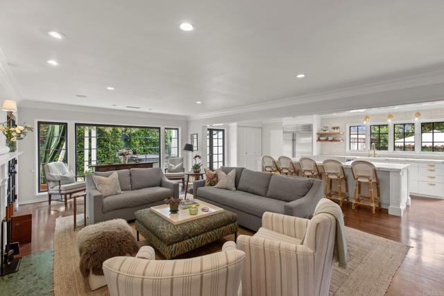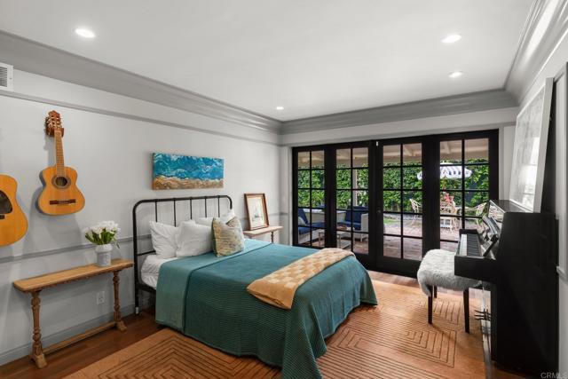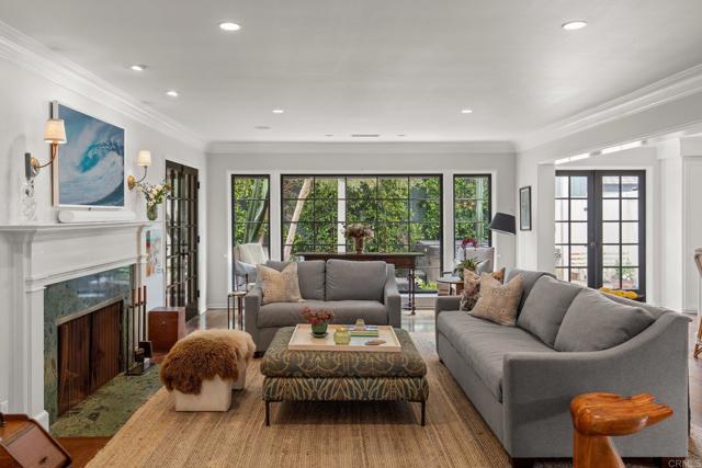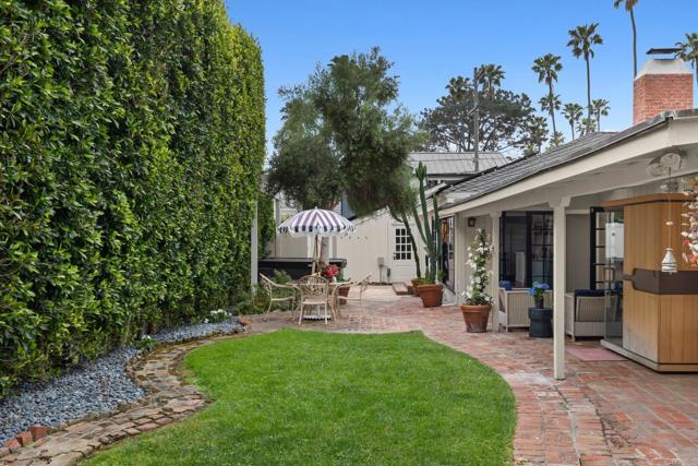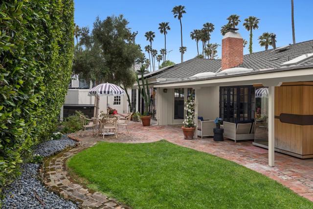 Welcome to this charming single-story storybook home, blending timeless character with relaxed coastal living. Situated on a generous 10,175 SqFt gated lot, the property offers exceptional privacy with mature hedges and a 6-foot wall along the east side. Enjoy open-concept living spaces enhanced by Brazilian hardwood floors, classic millwork, original character, and abundant natural light streaming through oversized picture windows and French doors that seamlessly connect indoor and outdoor spaces. The classic white kitchen centers around a striking Carrara marble island and flows effortlessly to the formal dining room and inviting living room with a wood burning fireplace and original built-in dry bar. French doors from the kitchen lead to a charming brick patio with a tranquil fountain perfect for al fresco dining. The lush wrap-around yard features multiple entertaining patios, a hot tub, sport court, outdoor shower, and thoughtfully designed landscaping throughout. The home offers 4 spacious bedrooms and 3.5 beautifully appointed baths, including the private primary suite tucked at the rear of the home and features a luxurious en-suite with marble finishes and a walk-in steam shower. A large laundry room (which formerly served as a 5th bedroom) with an adjacent full bath and an attached garage with ample storage complete the home s thoughtful layout. Additional highlights include owned solar panels, central HVAC, and a built-in Sonos audio system. Located blocks from iconic Windansea Beach and Bird Rock s shops, restaurants, top-rated schools, and parks, this rare coastal gem offers the perfect combination of classic elegance, modern comfort, and an unbeatable location. This is a home you must see in person to truly appreciate its charm, privacy, lifestyle, and universal appeal!Interested in this Listing?