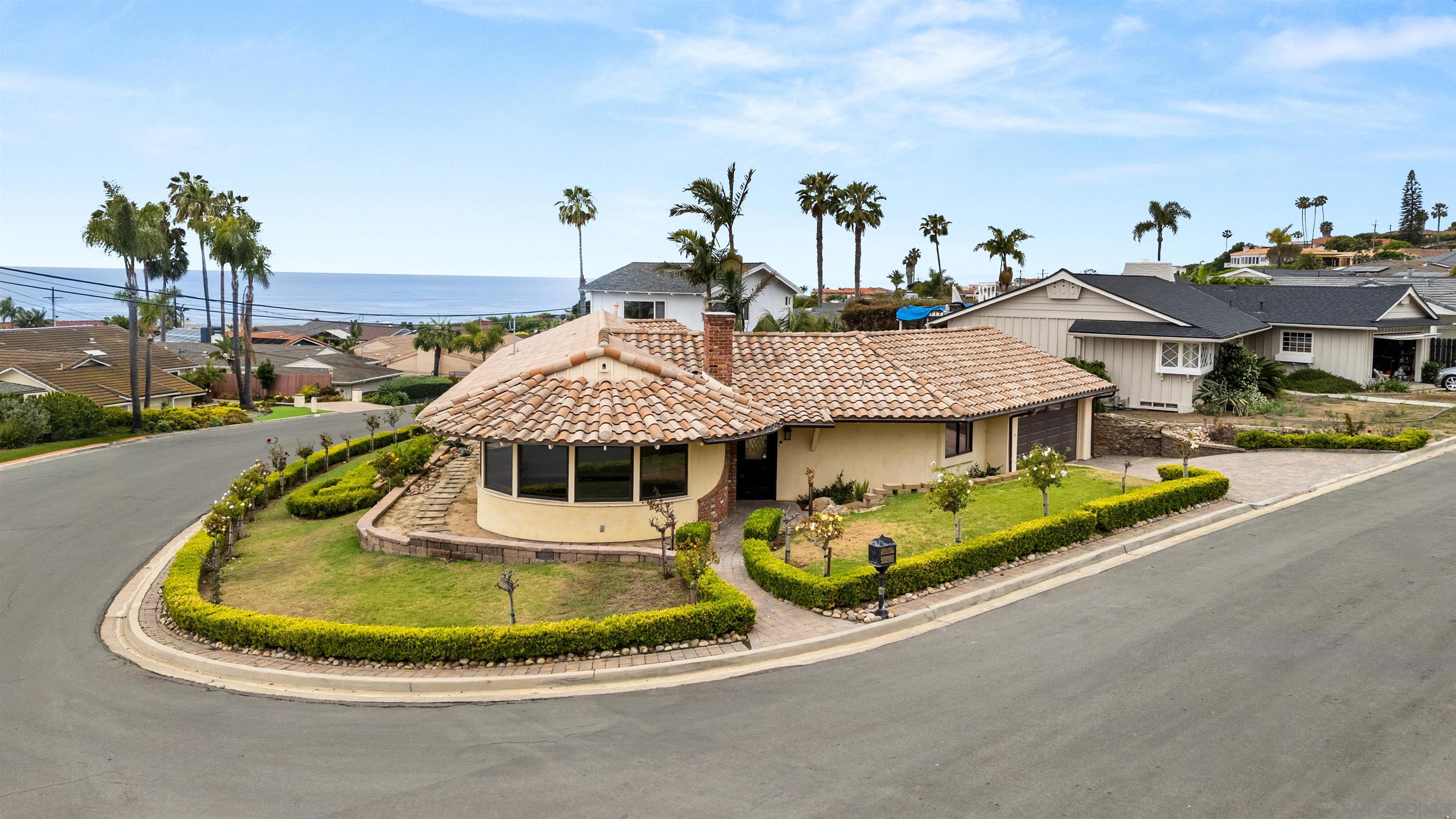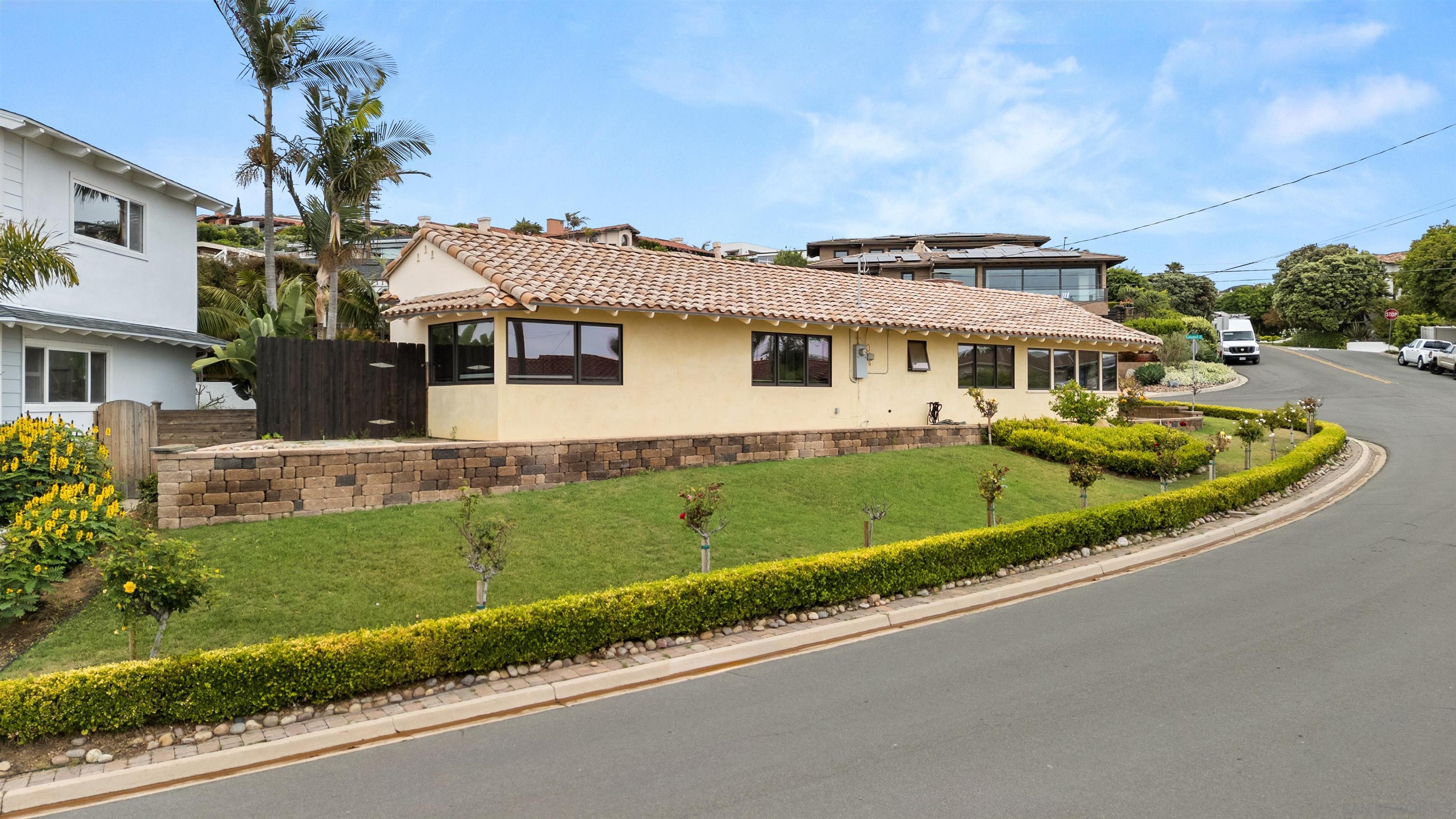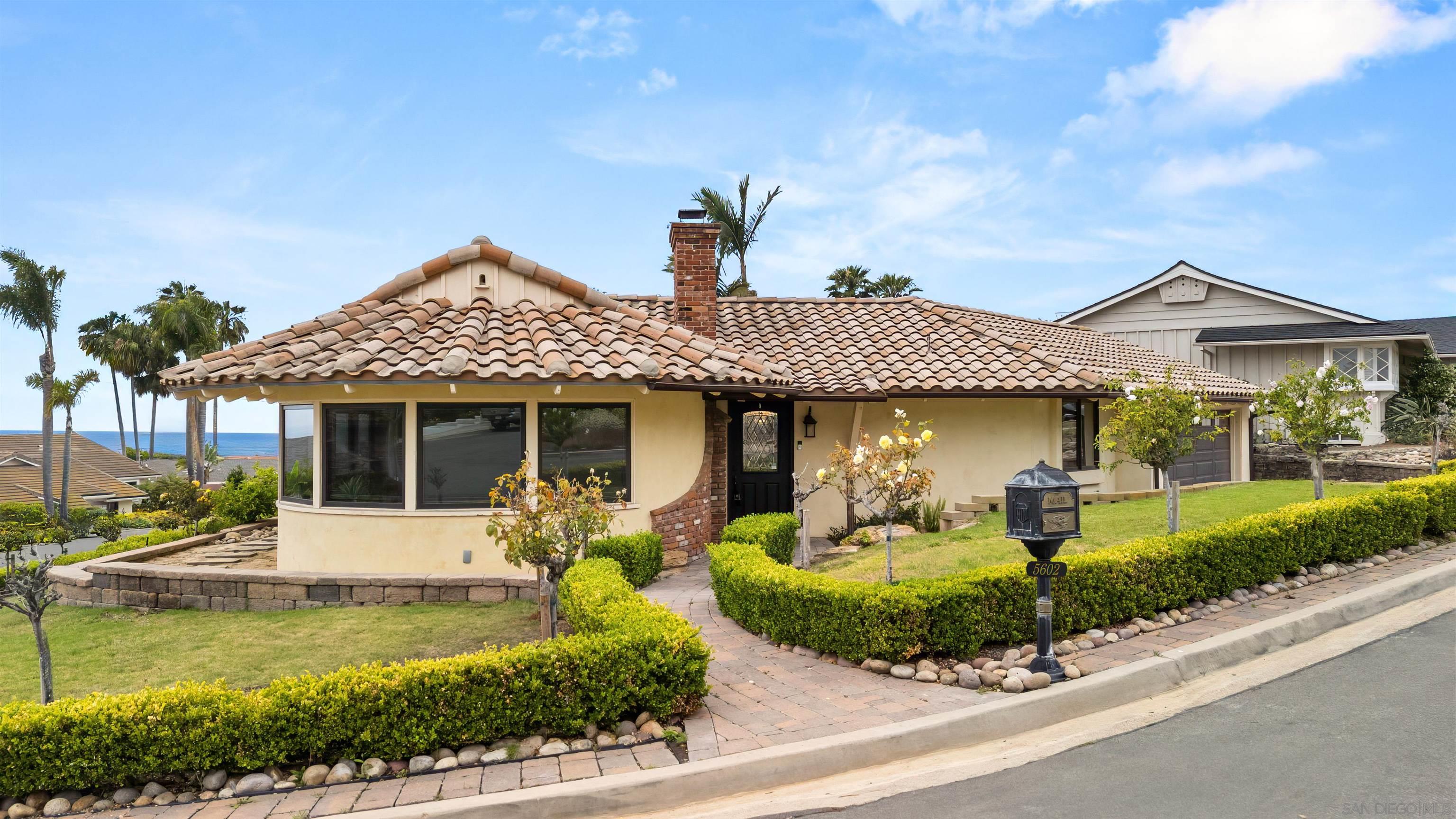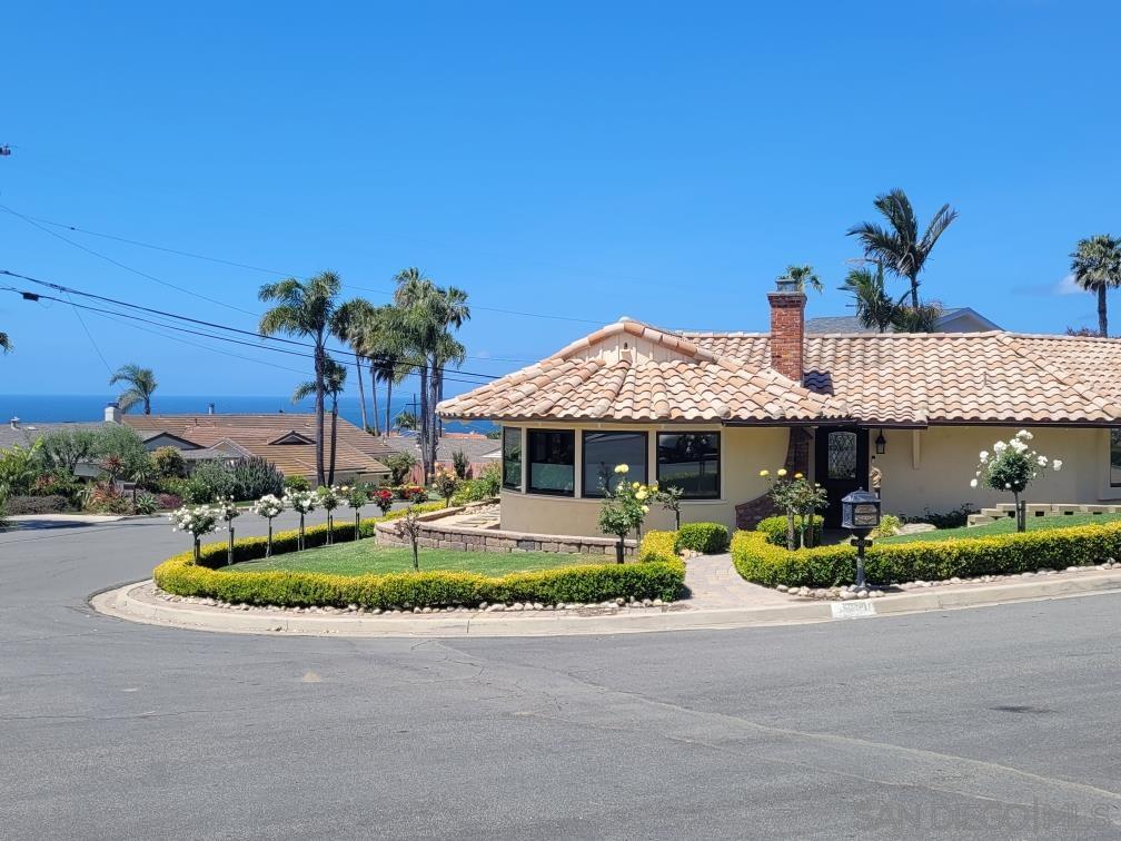 Delightful and low-maintenance single-level home with dazzling ocean views in the serene La Jolla Mesa neighborhood located on the sunny side of Mount Soledad! Situated on a corner lot, this home enjoys excellent sunlight, ocean breezes, and ocean and coastline views from throughout most of the property. An open concept kitchen with a gorgeous living room with fireplace, 3 bedrooms, 2 full bathrooms, central AC, and an attached 2-car garage create a simple and great feeling floor plan. Outdoor spaces are well manicured with little to maintain including a paver driveway. This home is a true joy in a fantastic location that is convenient to all that La Jolla and nearby Pacific Beach have to offer! *Some images have been virtually staged.Interested in this Listing?