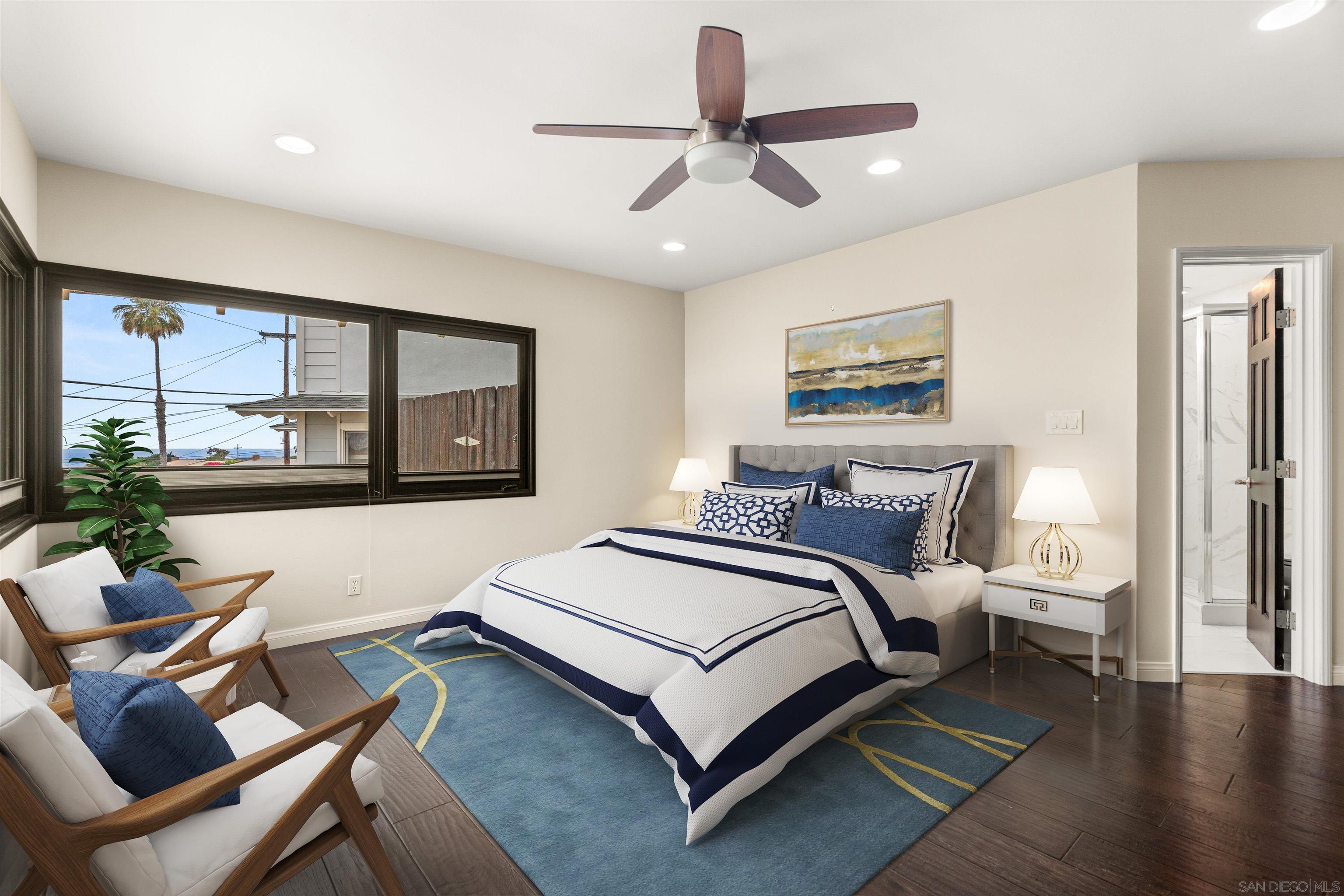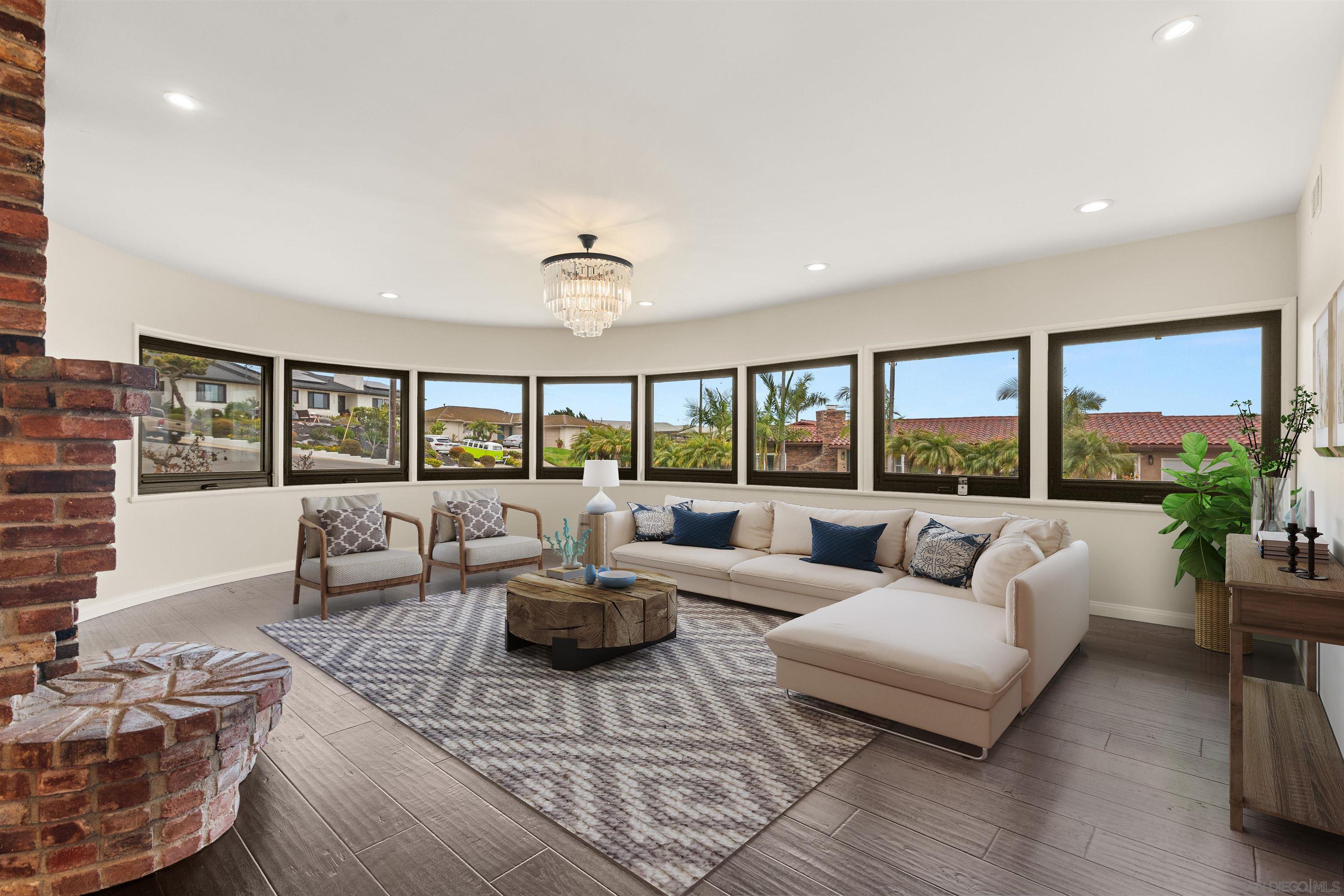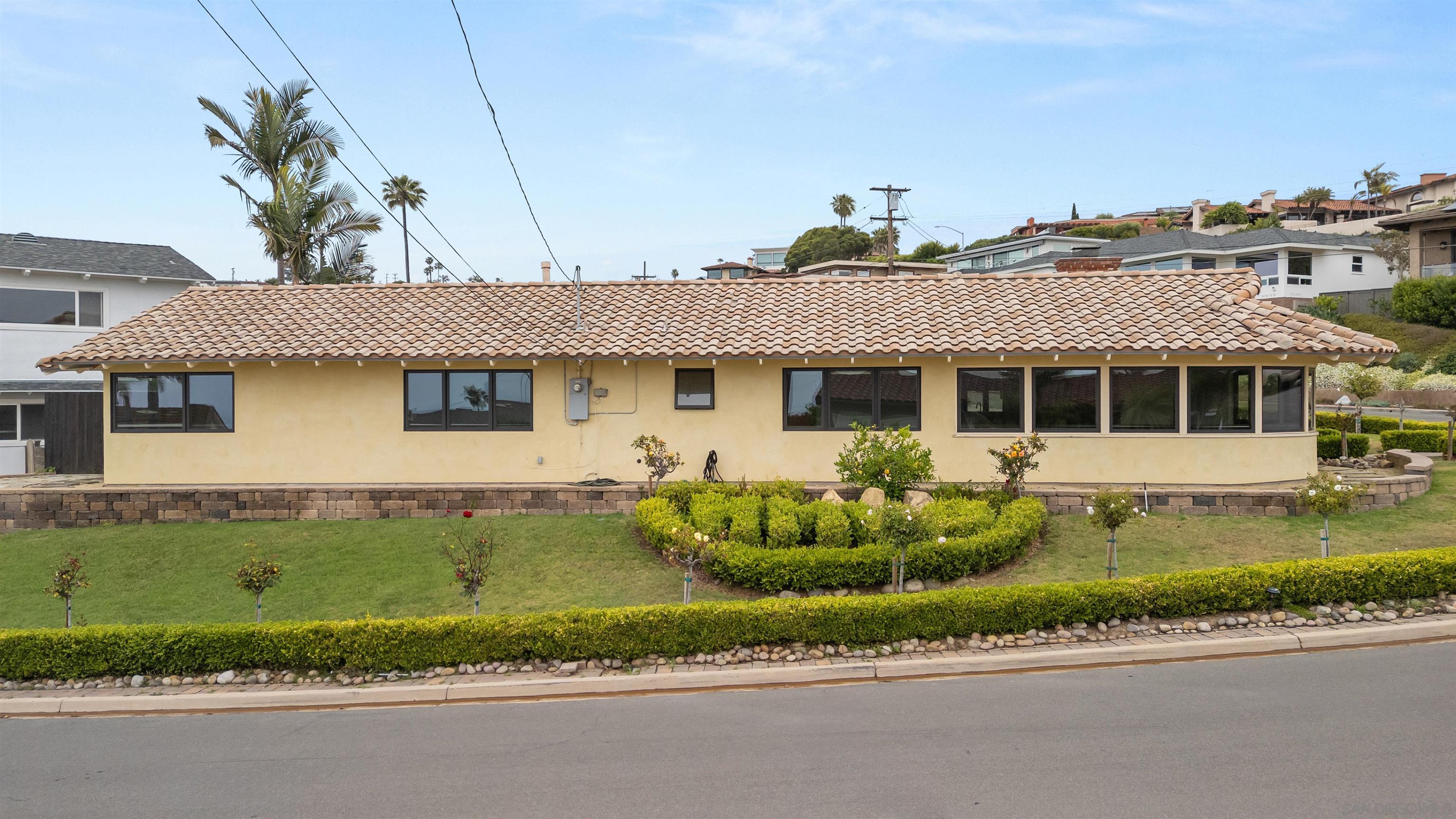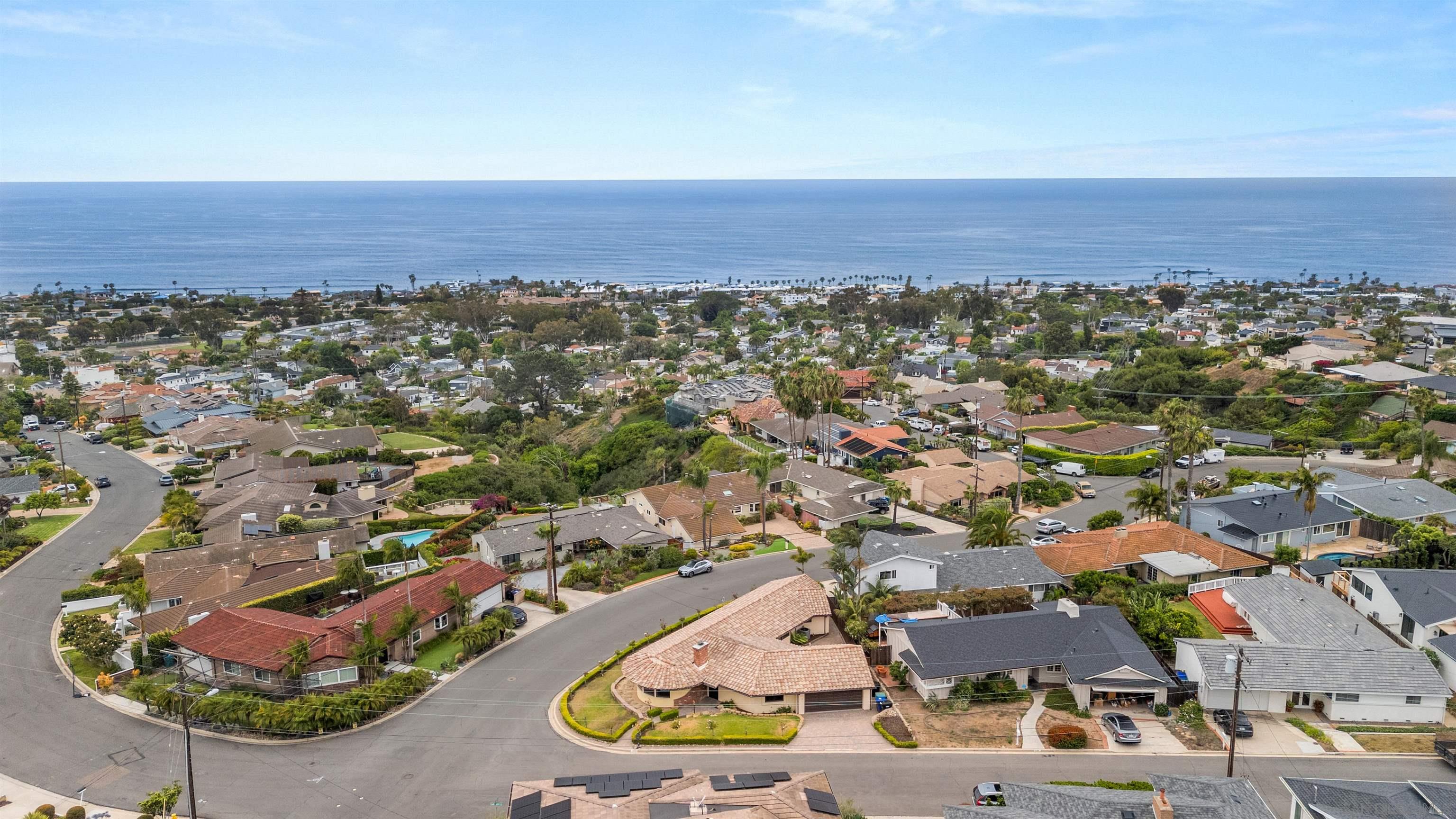 Delightful and low-maintenance single-level home with dazzling ocean views in the serene La Jolla Mesa neighborhood located on the sunny side of Mount Soledad! Situated on a corner lot, this home enjoys excellent sunlight, ocean breezes, and ocean and coastline views from throughout most of the property. An open concept kitchen with a gorgeous living room with fireplace, 3 bedrooms, 2 full bathrooms, central AC, and an attached 2-car garage create a simple and great feeling floor plan. Outdoor spaces are well manicured with little to maintain including a paver driveway. This home is a true joy in a fantastic location that is convenient to all that La Jolla and nearby Pacific Beach have to offer! *Some images have been virtually staged.Interested in this Listing?
