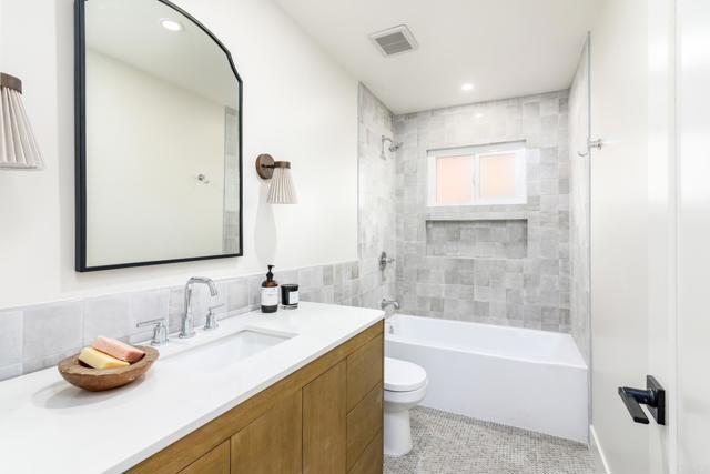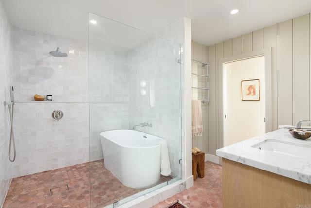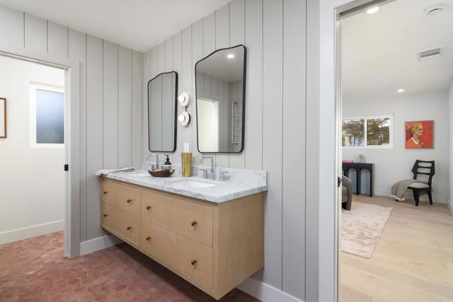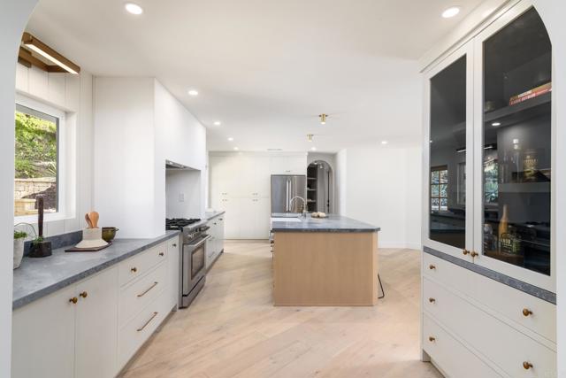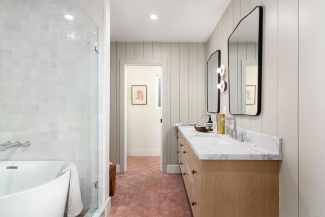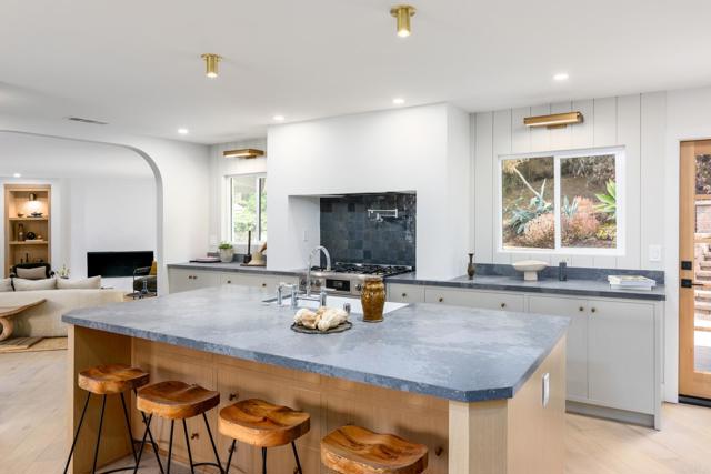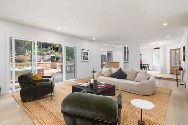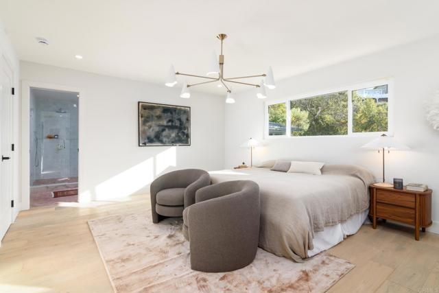 Welcome to a truly exceptional, fully remodeled single-story home where modern luxury effortlessly blends with coastal charm. Situated in the hills of La Jolla you are a mere 2 miles from the pristine beaches and vibrant offerings of La Jolla. This 4-bedroom, 4-bathroom retreat promises both comfort and style in a serene and sought-after neighborhood. As you approach, you ll be welcomed by a meticulously manicured front lawn and custom paver driveway leading you to the white ranch style home, creating an inviting first impression. Step inside to discover a bright, open-concept living area designed for easy living and entertaining, where engineered wood flooring flows seamlessly throughout, enhancing the airy layout and perfectly complementing the sophisticated neutral palette. An elegant fireplace, framed by custom built-ins, serves as the heart of the space. The gourmet kitchen is a chef s dream, featuring custom inset cabinetry, luxurious soapstone countertops, and a dramatic stucco range hood. An oversized island creates an inviting spot to gather or entertain, while high-end appliances elevate the kitchen to the next level. The adjacent pantry offers generous storage, including an oversized wine fridge perfect for connoisseurs and entertainers alike. Your private primary suite is a serene sanctuary, bathed in natural light and fresh ocean breezes. This retreat offers a spacious walk-in closet and a spa-inspired en-suite bathroom, complete with a freestanding soaking tub, a rainfall shower, and a custom vanity. Thoughtful design details such as shiplap wall accents and terracotta tiles bring character and warmth to every room. Three additional well-appointed bedrooms and two and a half beautifully designed bathrooms offer plenty of space for family, guests or the option of a private office. The exterior of the home is equally impressive, with new pavers gracing both the front and backyard, complemented by lush, low-maintenance landscaping and multiple outdoor spaces designed for entertaining or simply unwinding in peace. Located in a community known for its top-tier schools, scenic parks, and easy access to shopping, dining, and all the coastal attractions La Jolla has to offer, this home presents the perfect combination of luxury, convenience, and coastal living. Ready to move in and designed to impress, this is a rare opportunity to own a piece of paradise.Interested in this Listing?
