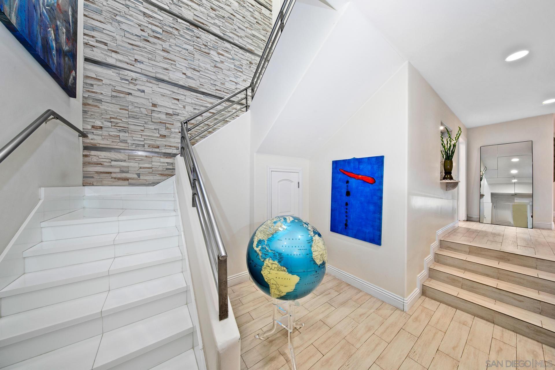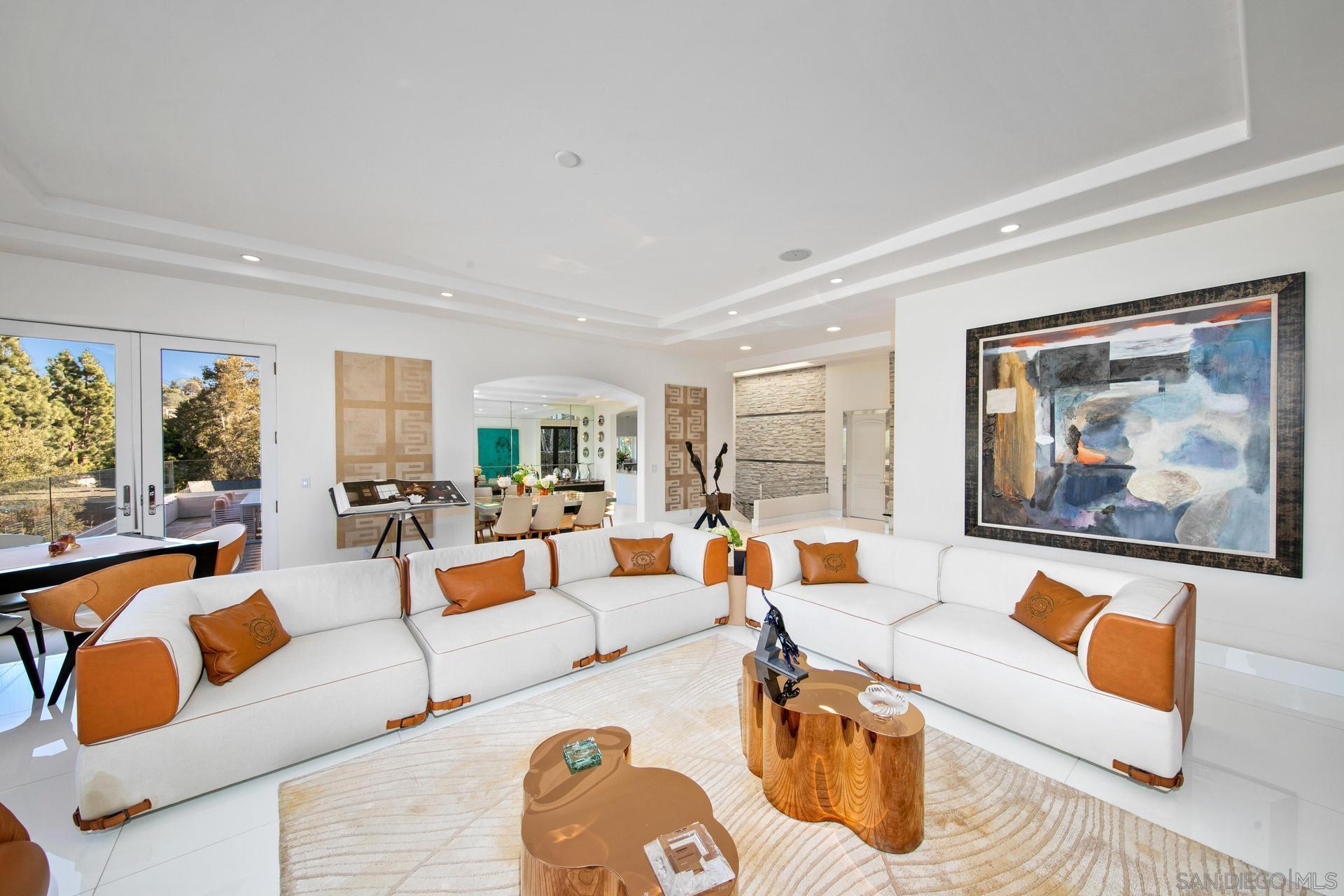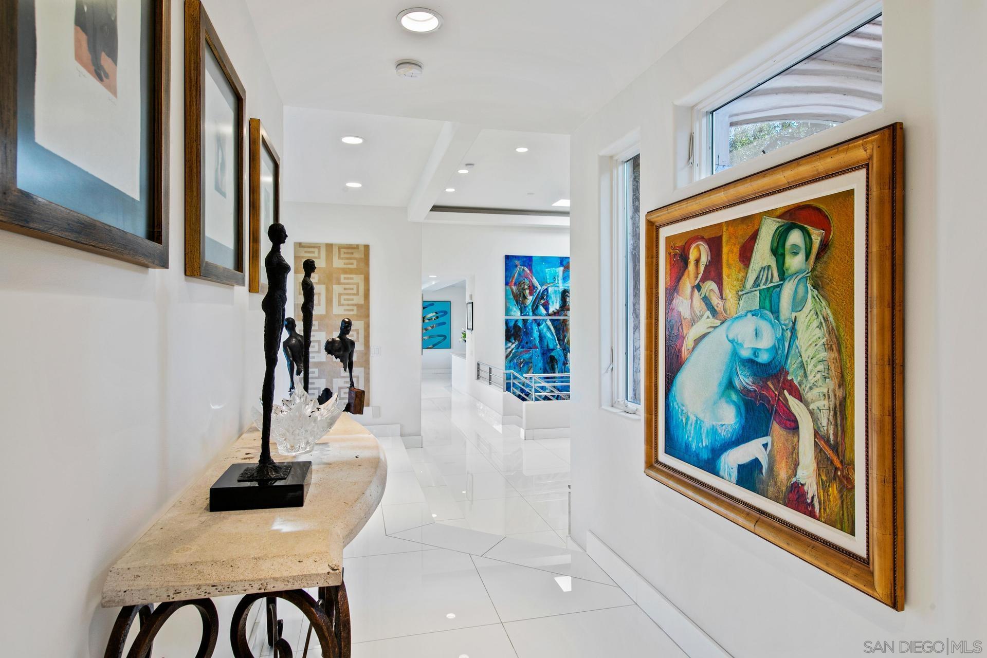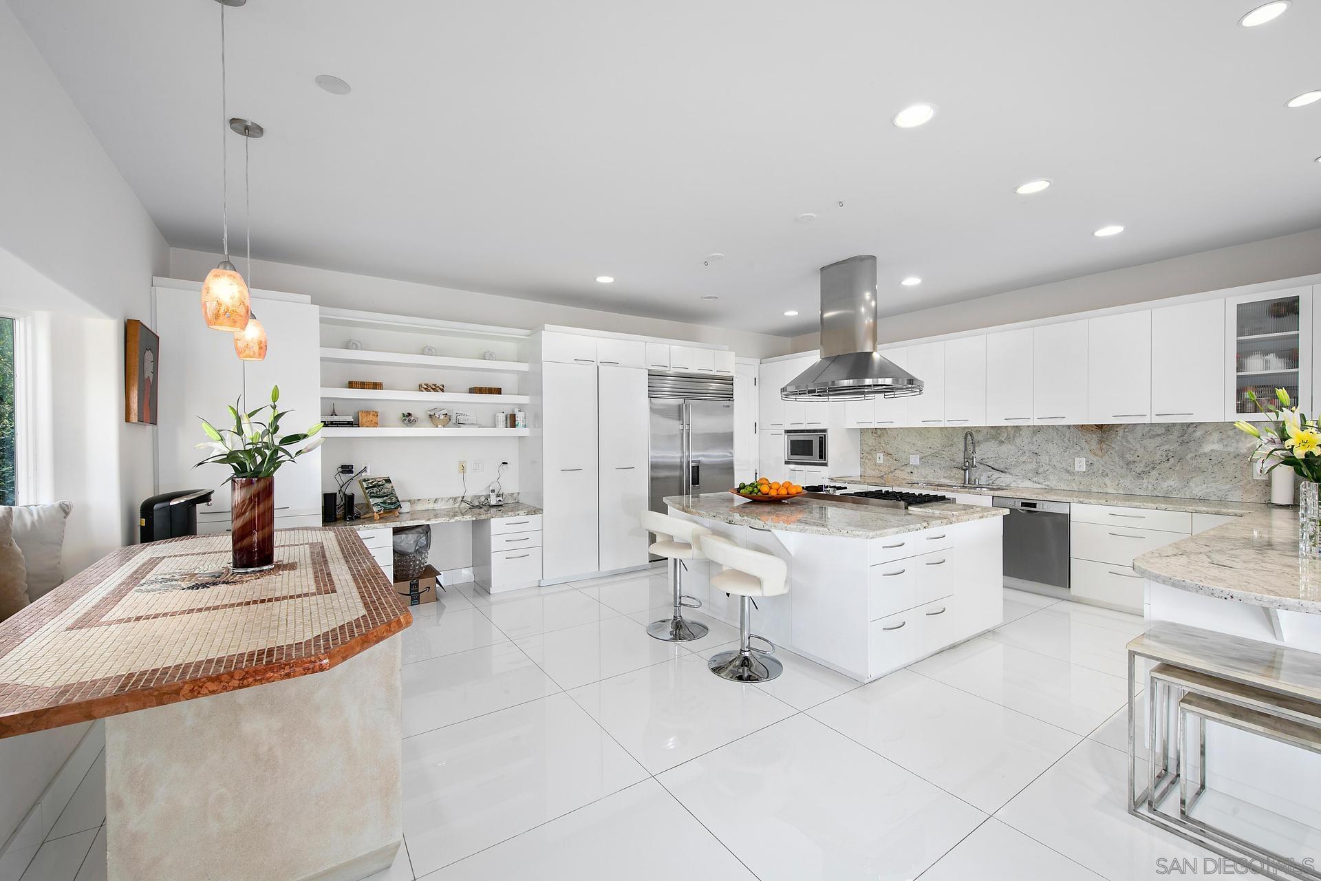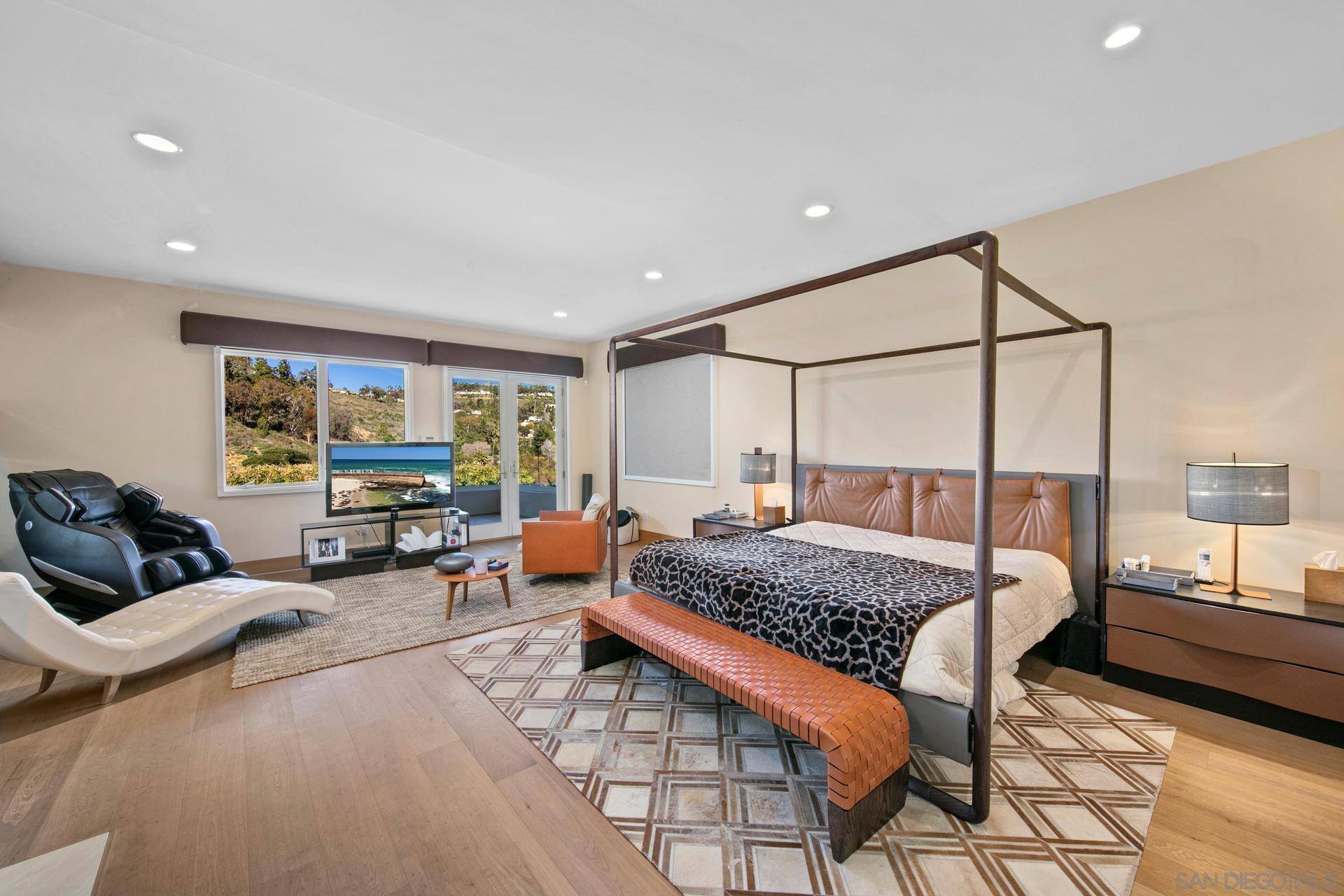 Welcome to this stunning estate nestled into the hillside in the coveted Muirlands neighborhood of La Jolla. This exceptional property boasts ocean and mountain views, offering a true sense of tranquility and luxury. As you enter the 5,812 square foot home, you are greeted by a grand foyer with soaring ceilings, a sweeping staircase, and an abundance of natural light. The main level features an elegant living room with a fireplace, a spacious formal dining room, a gourmet chef's kitchen with top-of-the-line appliances and a center island, a cozy breakfast nook, and a comfortable family room with a fireplace and built-in shelves. Also upstairs, you ll find one of the 5 bedrooms, which has been converted into a media room, with a projector, large sofa seating, & an en-suite bathroom. The lower level includes the other 4 bedrooms, including the primary suite, which is a true oasis with a private fireplace & a luxurious bathroom with dual vanities, a soaking tub, a walk-in shower, and two oversized walk-in closets. The 3rd car garage also has been outfitted as a separate guest suite with a private entrance. The outdoor area is equally impressive, with multiple terraces and patios that capture the stunning views and create a perfect setting for outdoor dining, lounging, and entertaining. The spa are surrounded by lush landscaping and provide a peaceful retreat. Located in one of the most desirable areas of La Jolla, this home offers a perfect balance of privacy, serenity, and convenience, with easy access to world-class beaches, shops, restaurants, and top-rated schools.Interested in this Listing?