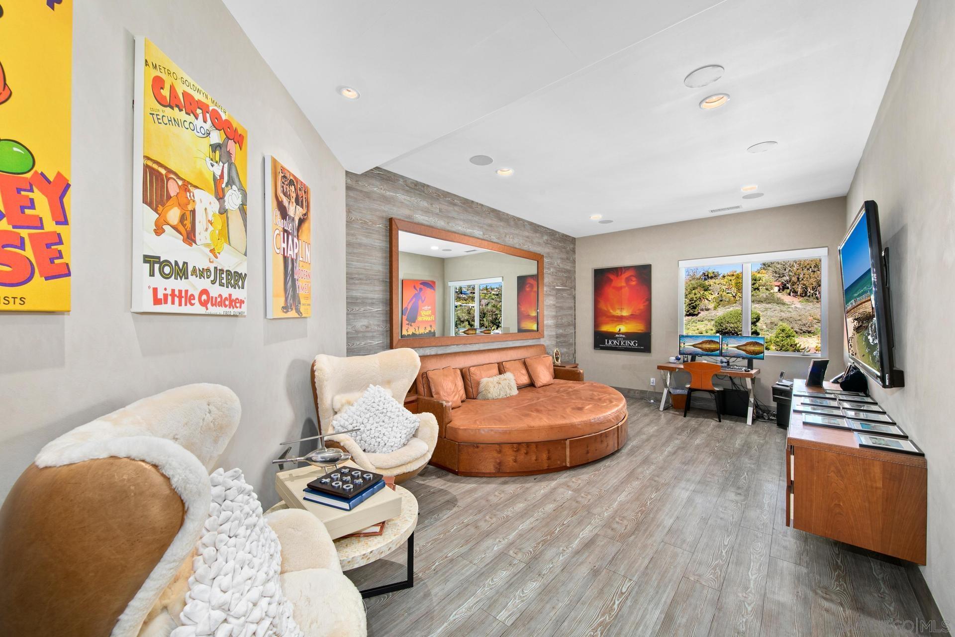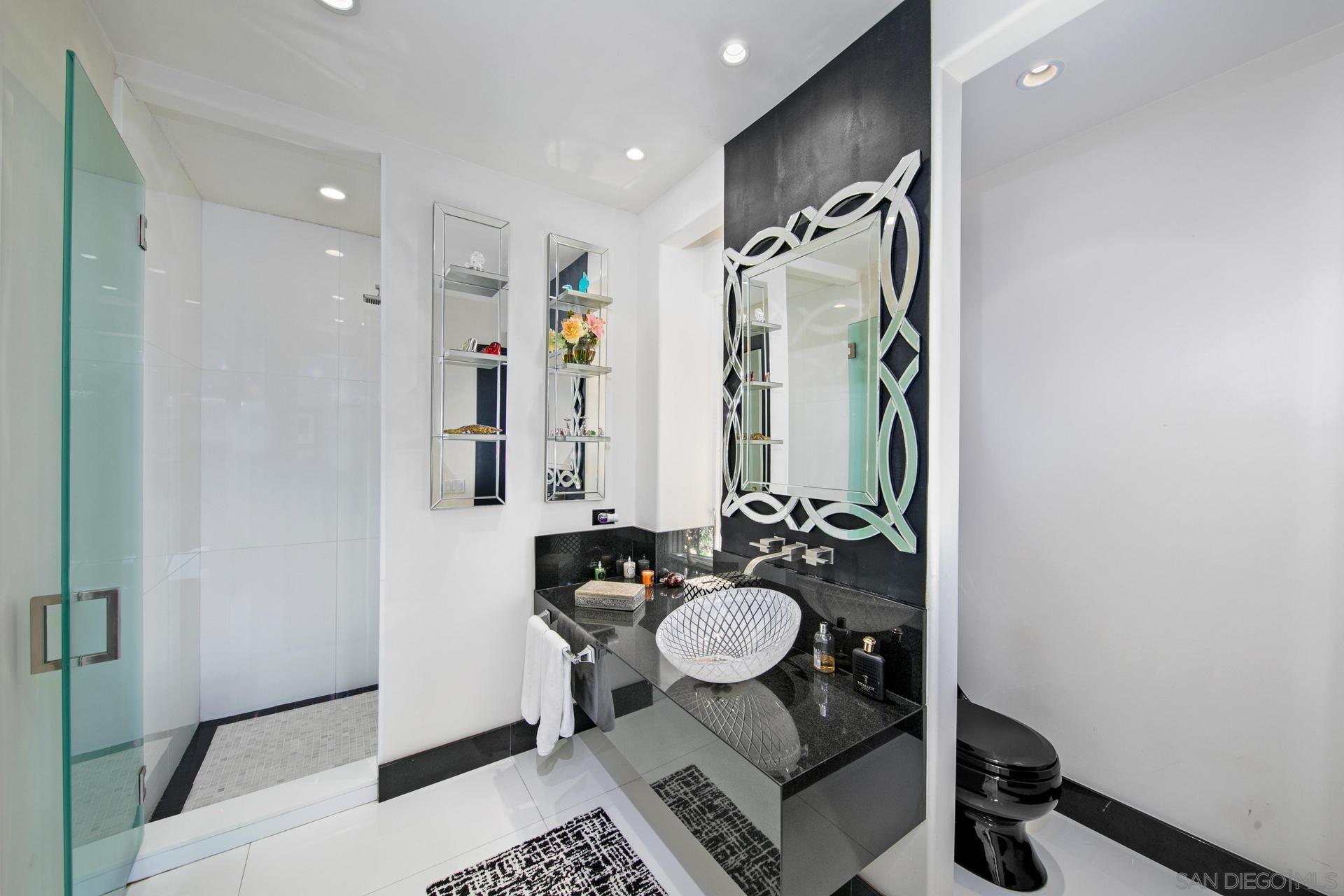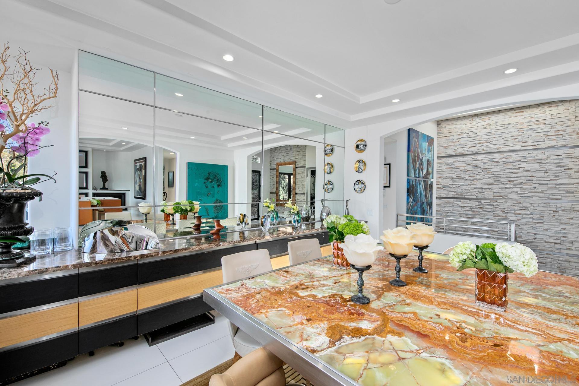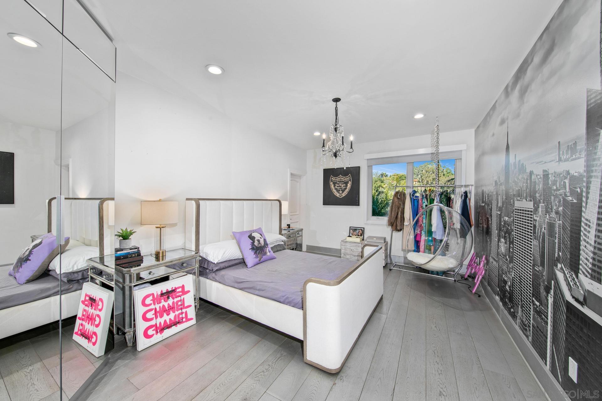 Welcome to this stunning estate nestled into the hillside in the coveted Muirlands neighborhood of La Jolla. This exceptional property boasts ocean and mountain views, offering a true sense of tranquility and luxury. As you enter the 5,812 square foot home, you are greeted by a grand foyer with soaring ceilings, a sweeping staircase, and an abundance of natural light. The main level features an elegant living room with a fireplace, a spacious formal dining room, a gourmet chef's kitchen with top-of-the-line appliances and a center island, a cozy breakfast nook, and a comfortable family room with a fireplace and built-in shelves. Also upstairs, you ll find one of the 5 bedrooms, which has been converted into a media room, with a projector, large sofa seating, & an en-suite bathroom. The lower level includes the other 4 bedrooms, including the primary suite, which is a true oasis with a private fireplace & a luxurious bathroom with dual vanities, a soaking tub, a walk-in shower, and two oversized walk-in closets. The 3rd car garage also has been outfitted as a separate guest suite with a private entrance. The outdoor area is equally impressive, with multiple terraces and patios that capture the stunning views and create a perfect setting for outdoor dining, lounging, and entertaining. The spa are surrounded by lush landscaping and provide a peaceful retreat. Located in one of the most desirable areas of La Jolla, this home offers a perfect balance of privacy, serenity, and convenience, with easy access to world-class beaches, shops, restaurants, and top-rated schools.Interested in this Listing?