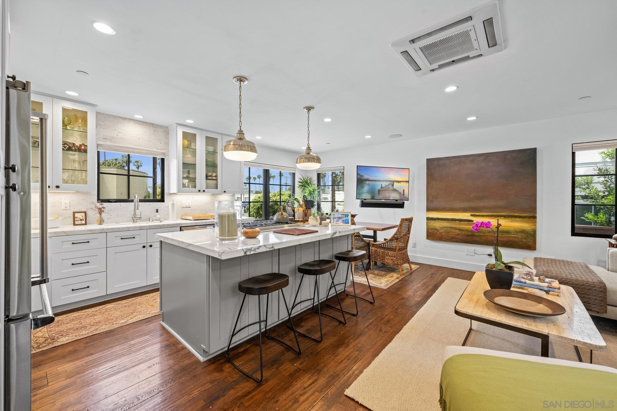 We proudly present this 2018 built contemporary Santa Barbara style home with three stories, four bedrooms, three and a half baths, and a rooftop view deck. Special features include hardwood flooring, a great room perfect for entertaining, and a chef s kitchen with marble countertops and Viking appliances. One of the bedrooms with full bath is on the main level -all bathrooms have marble finishes- and there is a theater room or office on the lower level where you will find a laundry room as well as a finished garage with ample storage and a translucent garage door. Craftsman style cabinetry throughout will give you ample storage and there is a low maintenance ground level outside entertaining space for dining and lounging. Walking distance to the ocean and almost equidistant to the shops and fine dining of La Jolla Village and Bird Rock, this home is special and is one that you will want to see. Ideal as a primary or vacation home, come see for yourself.Interested in this Listing?