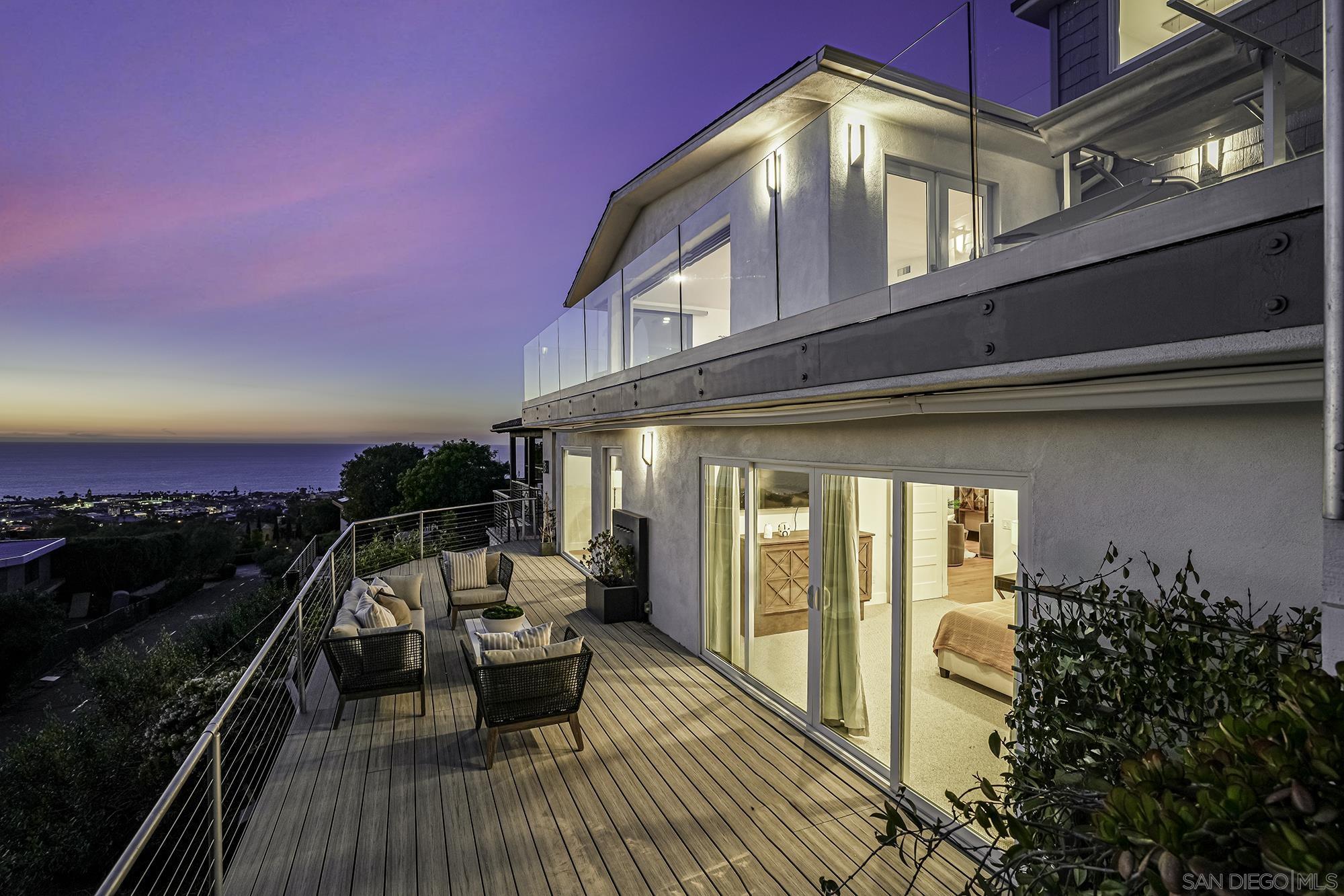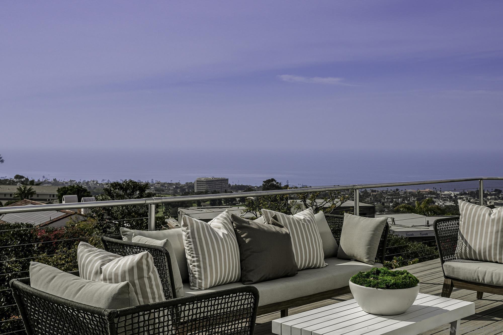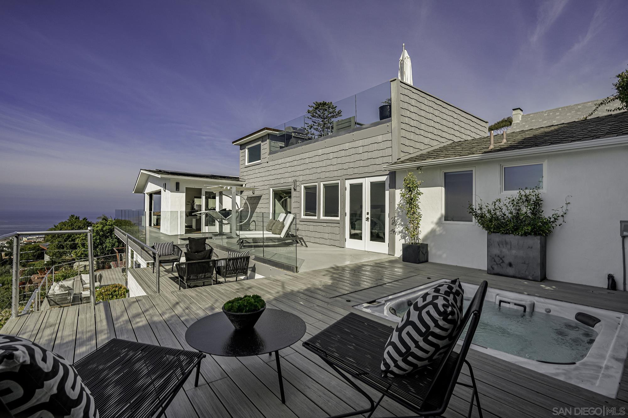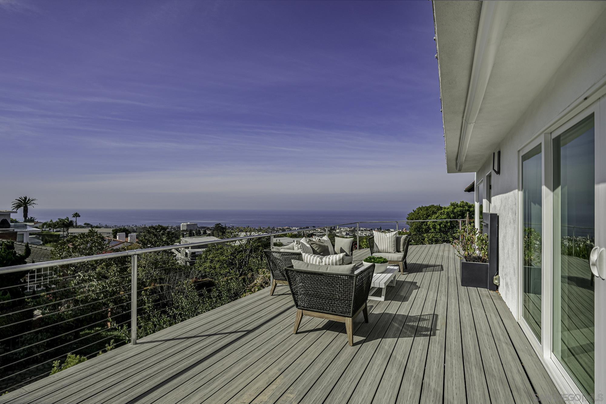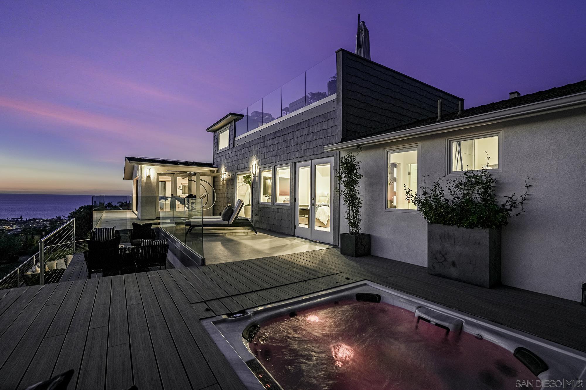 Awe-inspiring Pacific Ocean views from this home that marries traditional charm w/ modern elegance. Rebuilt in 2016 & recently remodeled, lives like a single level, & features wide-plank white oak floors, gourmet kitchen w/ refinished cabinetry, an expansive Calacatta quartz, island w/ bar seating, spa-like primary bath & expansive walk-in closet. 1000+ sq ft. of decks, 16-ft pocket doors, sweeping ocean and golf course views and beyond, make this the ultimate hillside retreat. Lower level has external access guest suite w/ wine storage. Outside has photovoltaic solar, in-deck jacuzzi, rooftop deck w/ fire-pit, and a beautiful landscaping. This home is a masterpiece of modern coastal living. Don't miss your chance to own a piece of La Jolla paradise!Interested in this Listing?