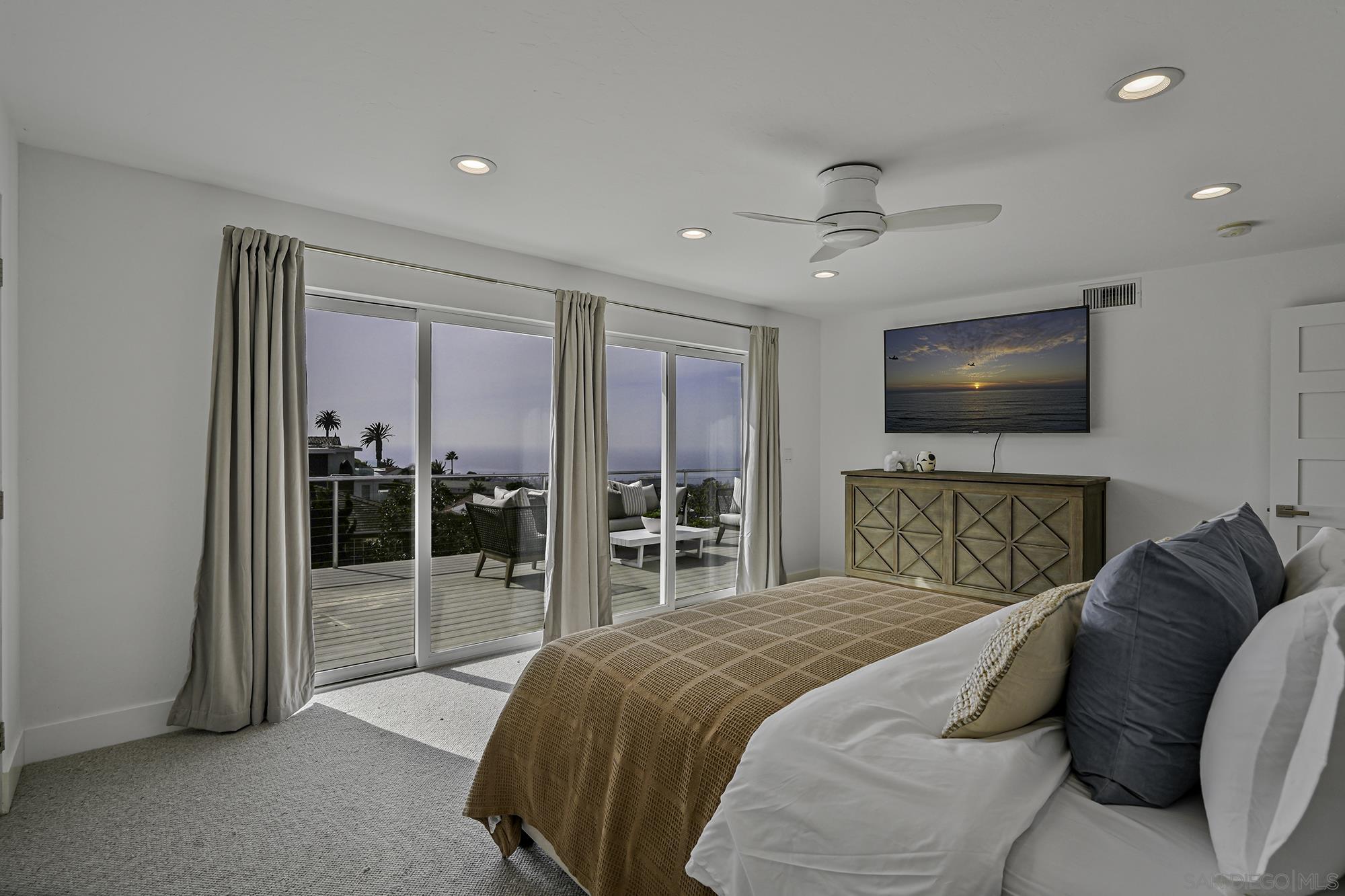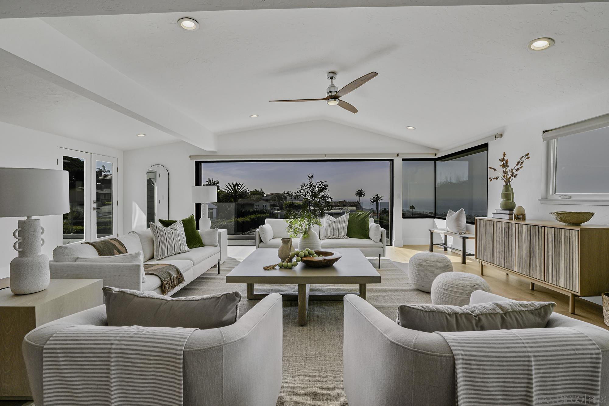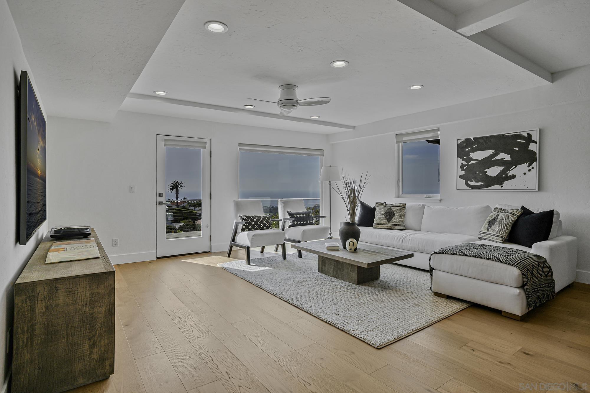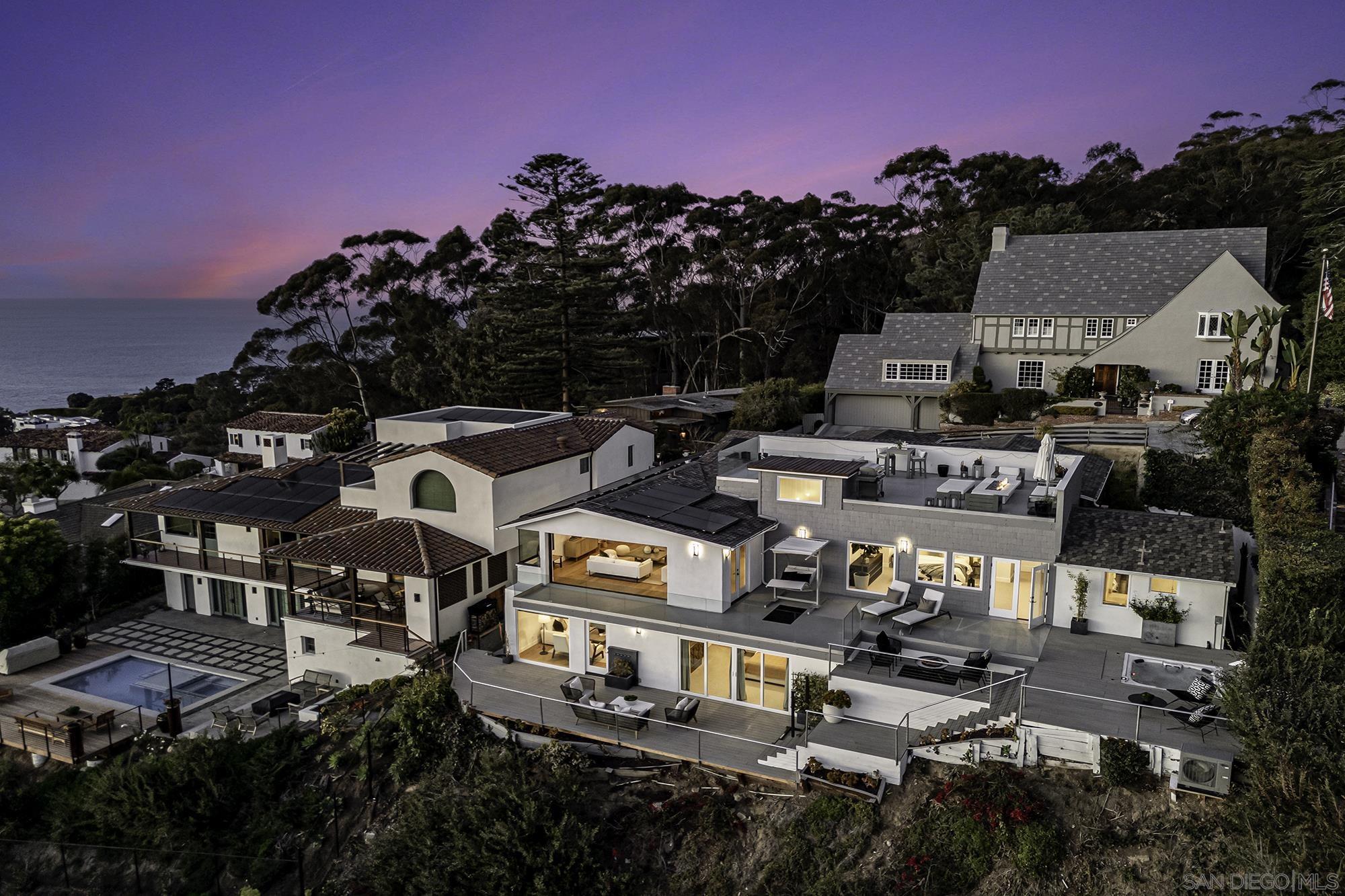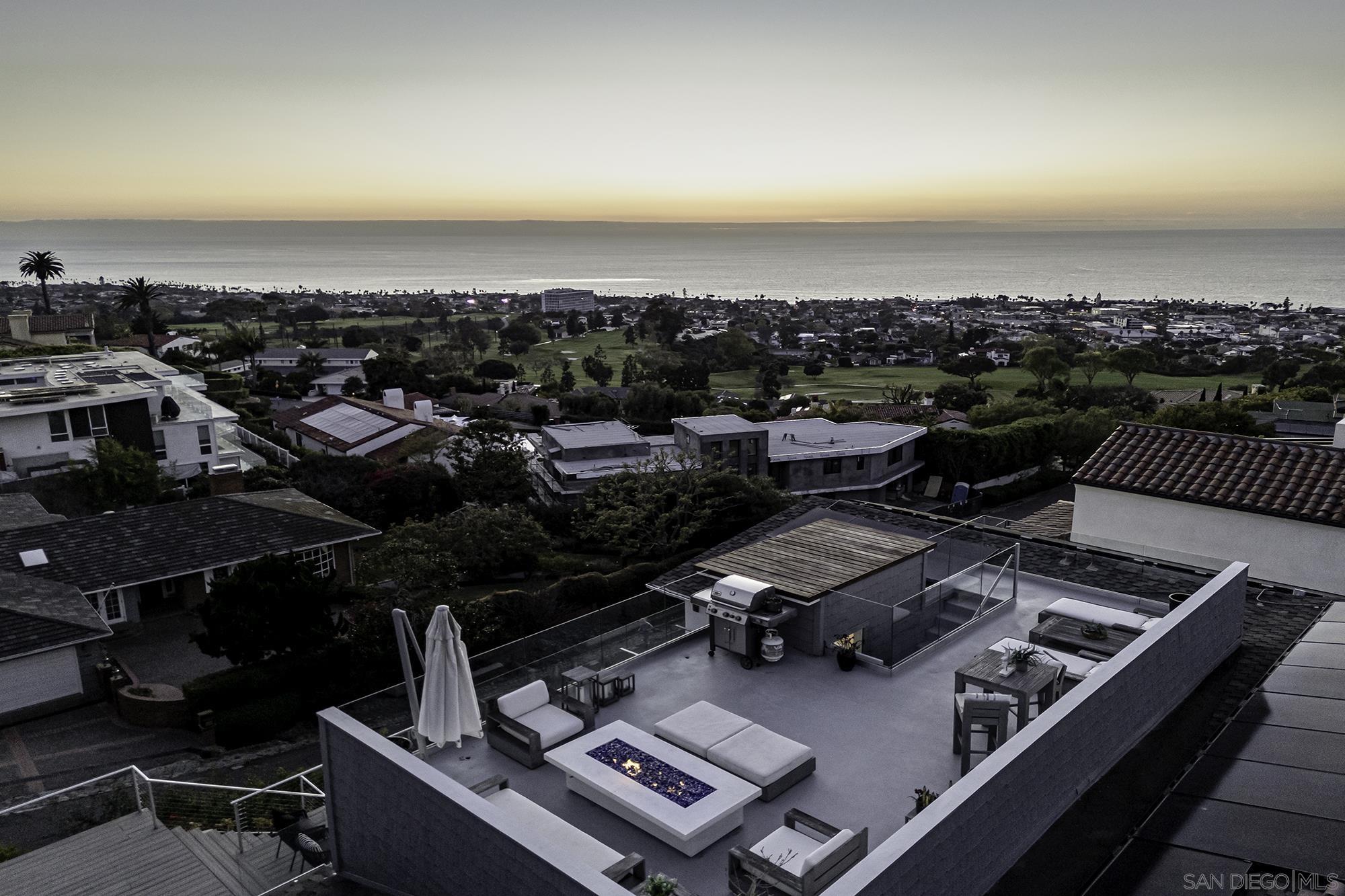 Awe-inspiring Pacific Ocean views from this home that marries traditional charm w/ modern elegance. Rebuilt in 2016 & recently remodeled, lives like a single level, & features wide-plank white oak floors, gourmet kitchen w/ refinished cabinetry, an expansive Calacatta quartz, island w/ bar seating, spa-like primary bath & expansive walk-in closet. 1000+ sq ft. of decks, 16-ft pocket doors, sweeping ocean and golf course views and beyond, make this the ultimate hillside retreat. Lower level has external access guest suite w/ wine storage. Outside has photovoltaic solar, in-deck jacuzzi, rooftop deck w/ fire-pit, and a beautiful landscaping. This home is a masterpiece of modern coastal living. Don't miss your chance to own a piece of La Jolla paradise!Interested in this Listing?