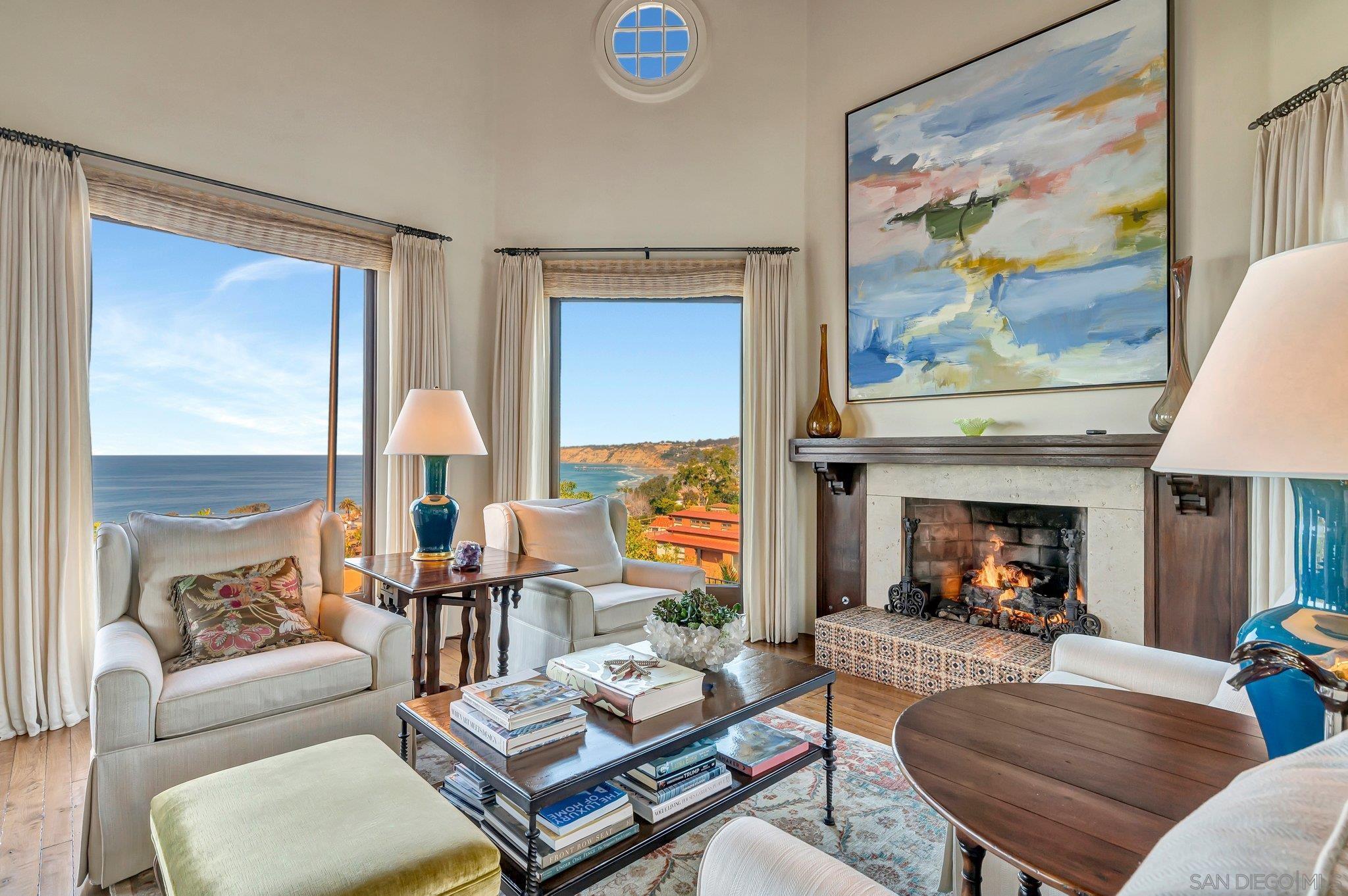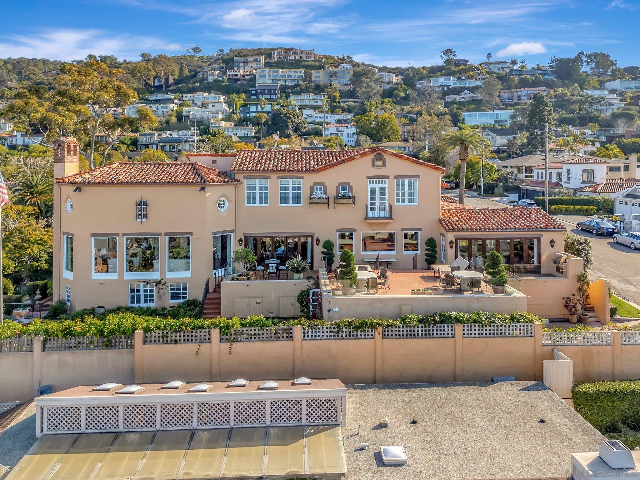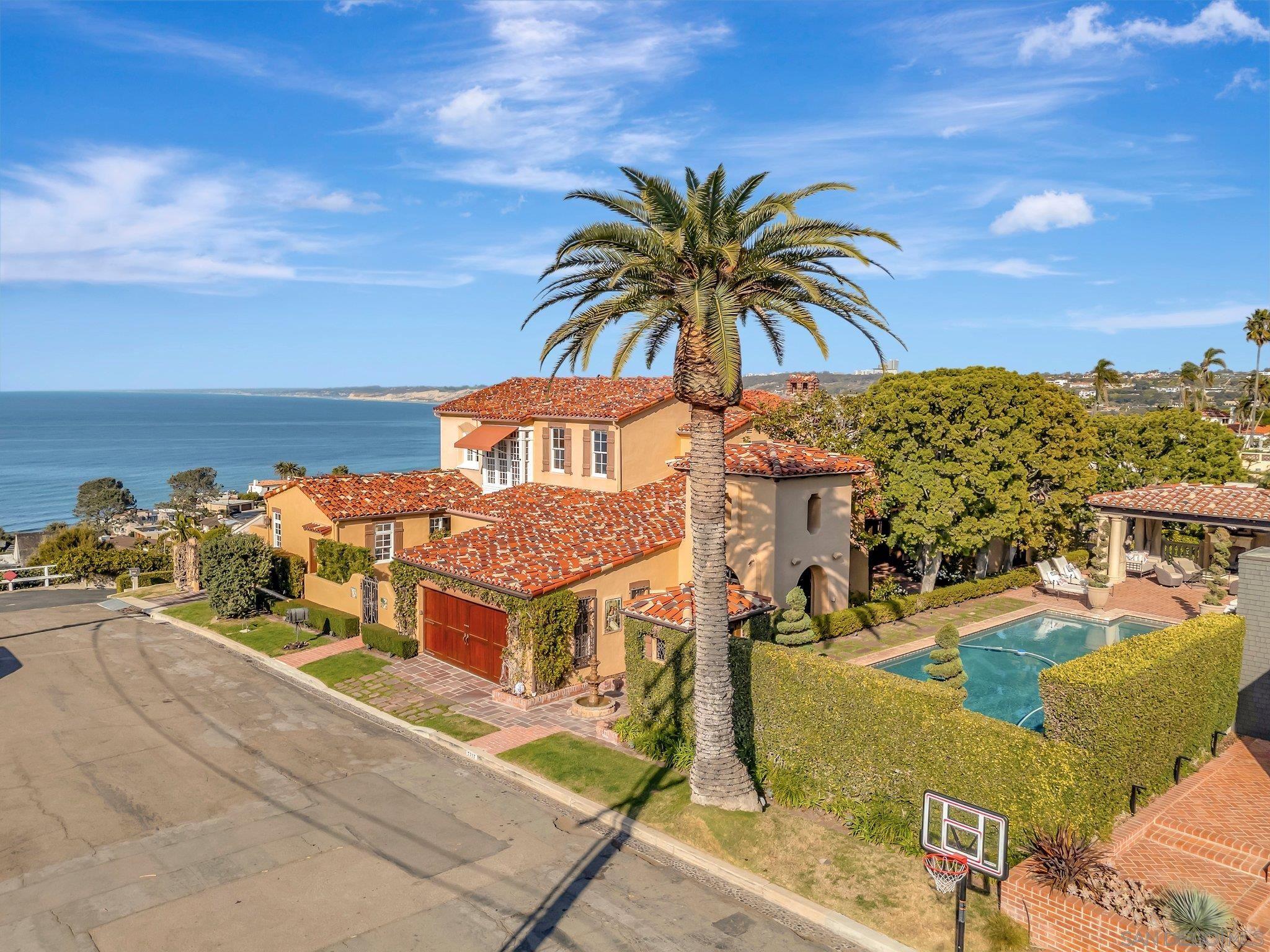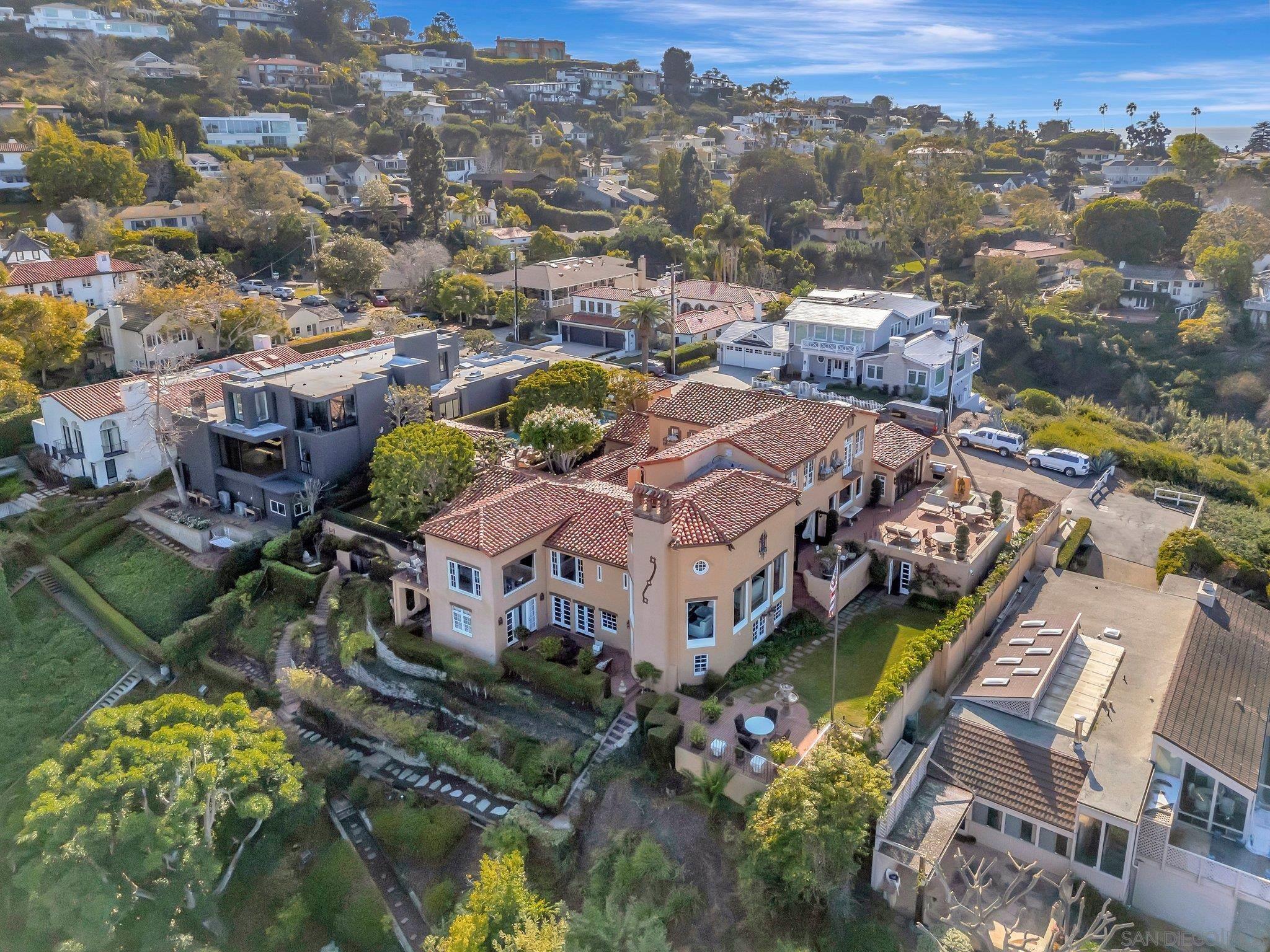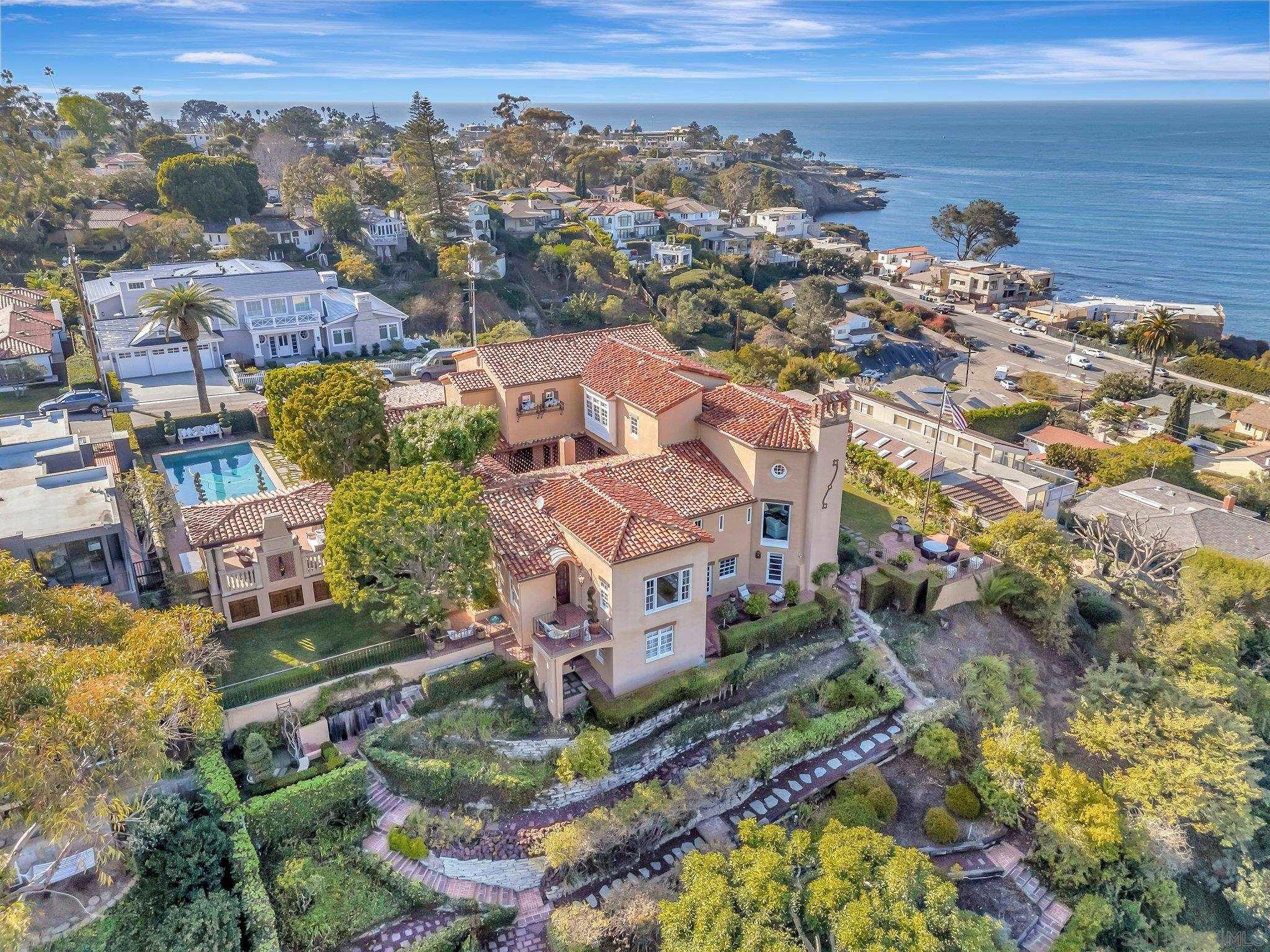 Welcome to "Casa La Jolla" this landmark renovated Spanish-Mediterranean Villa exudes Olde La Jolla elegance with sweeping ocean views from La Jolla Cove to Scripps Pier and was featured in the 2000 motion picture "Traffic". A noted interior designer's former residence was enhanced and embellished by current owners and has all main rooms on the ground floor, high ceilings, hardwood floors, with incredible indoor / outdoor flow for entertaining, an extraordinary vaulted ceiling living room and ocean view primary suite. 3 bedroom suites upstairs, and 2 more additional bedrooms on the lower level. A large ocean view deck and gorgeous courtyard patio areas are great for parties. Private pool and pavilion area. 3 levels of luxury nestled on a private .75 acre canyon rim lot at the end of a cul de sac. This is a rare offering with spectacular ocean views, iconic olde world charm and proximity to The Village in the coveted Lower Hillside neighborhood of La Jolla.Interested in this Listing?