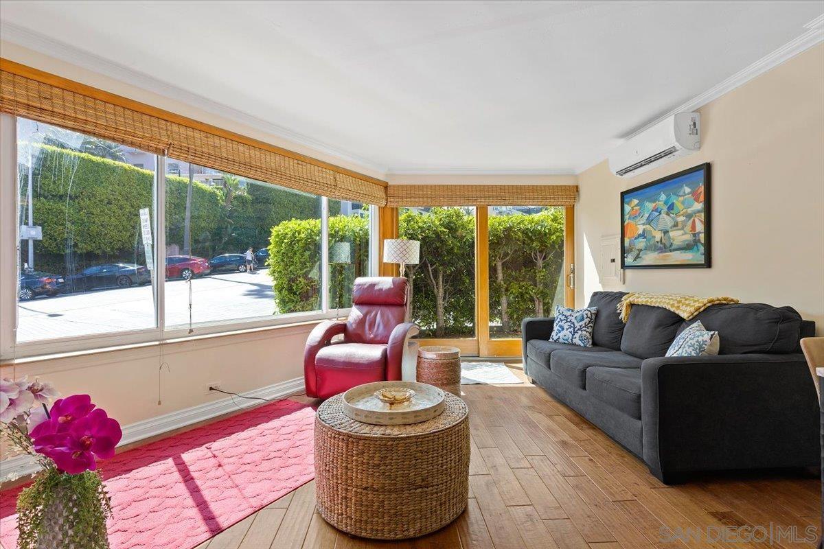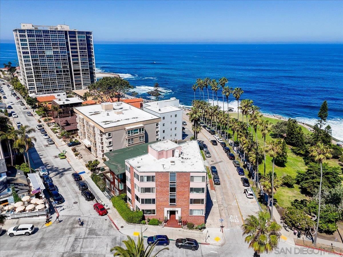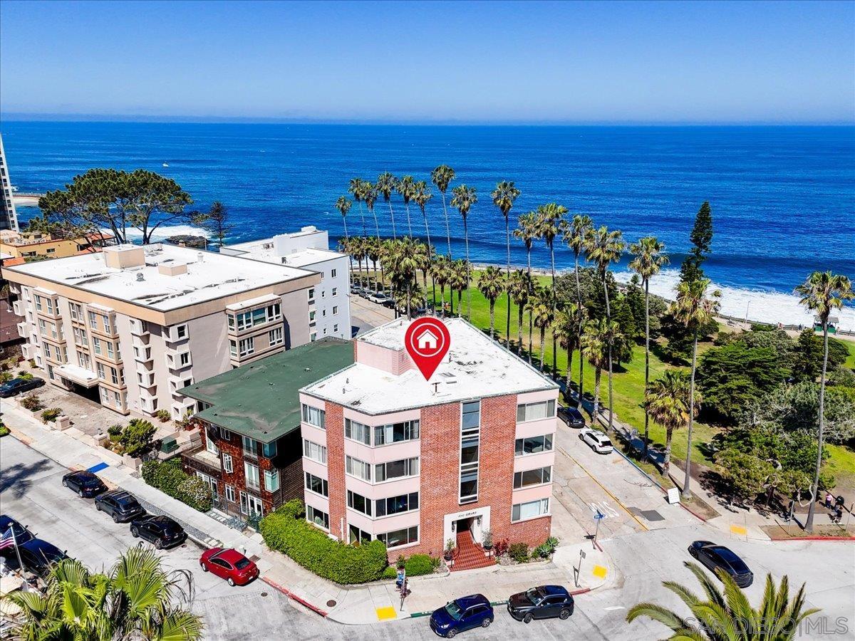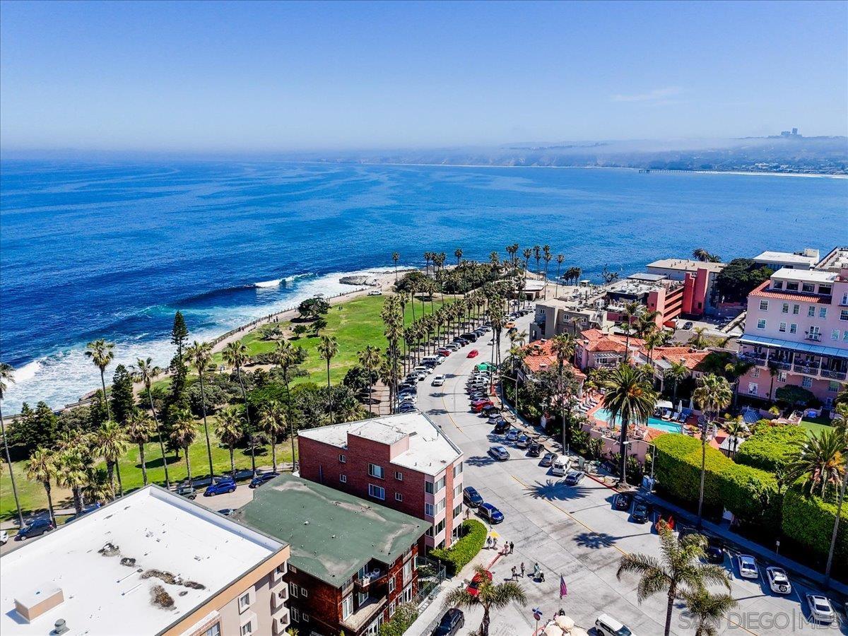 Spectacular location, in the heart of La Jolla Village, this perfectly situated, first floor condominium is just steps from renowned restaurants, boutique shops, world class art galleries and a multitude of coastal attractions. Stepping inside the architecturally unique, curvilinear entry way you are immediately greeted by the open concept living, dining, kitchen, great room with sliding doors that lead you to the common patio/garden space, surrounded by tall ficus trees for privacy. Living space features wall-to-wall picture window to enjoy your quintessential La Jolla coastal views, including the iconic La Valencia Hotel, and the classic palm tree lined Coast Walk that graces Ellen Browning Scripps Park, all of this plus views of the blue Pacific Ocean all the way up the coast past the bluffs of Blacks Beach. Large windows in each room let in the natural sunlight . Hardwood flooring in the main areas and carpet in the bedrooms. Kitchen features stainless appliances, dual corner sinks, electric stove, and spacious pantry. Stacked washer and dryer in unit. 2 mini-split systems for immediate cooling and heating, and an additional 3 ceiling fans. Don't pass up this opportunity to be on a vacation 24/7, 365 days a year!Interested in this Listing?
