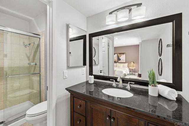 This impressive end-unit townhome introduces a sophisticated living experience and an outstanding location in the popular Eastbluff community of La Jolla. It features remodeling throughout including the kitchen with custom wood cabinets and stainless steel appliances, modernized baths, near new vinyl plank flooring on the entry and middle levels, and carpet upstairs, designer paint, recessed lighting and no popcorn. There is also a private patio area for BBQs, plantings and furry friends. You will love the location! It is a short walk to a wonderful park, and shops, restaurants and the trolley at La Jolla Village Square. Freeways, UTC, hospitals, UCSD and fabulous beaches are close by. The floor plan is Eastbluff's most popular with a convenient bedroom and half bath on the kitchen and dining room level. The attached two-car garage provides secure parking and ample storage space. The refrigerator and washer/dryer convey. The Eastbluff community features two pools, spas, a clubhouse and generous guest parking. This is a great opportunity!Interested in this Listing?