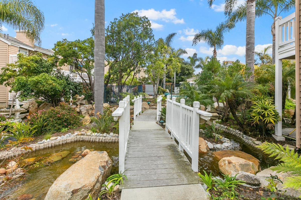 Welcome to this bright, inviting home in Cape La Jolla featuring high exposed-beam ceilings and skylights that fill the space with natural light. The living room includes a cozy fireplace, while the private balcony allows pleasant views of the complex s gorgeous tropical scenery. Head up to the kitchen and separate dining area, providing the ideal space for meals and entertaining. The primary bedroom includes a walk-in closet and a soothing ensuite bath. This tastefully styled home features new carpet and paint, & also comes with in-unit laundry and a detached two-car garage for added convenience. The beautifully landscaped Cape La Jolla community features charming bridges, flowing waterfalls, and a private pool and spa. Conveniently located within walking distance of La Jolla Village Square, this home offers easy access to shops, restaurants, groceries, movies, and coffee spots. You re also just a short drive from UCSD, stunning beaches & the I-5 Freeway. Experience comfort and convenience in this elegantly designed home, just moments from everything La Jolla has to offer.Interested in this Listing?