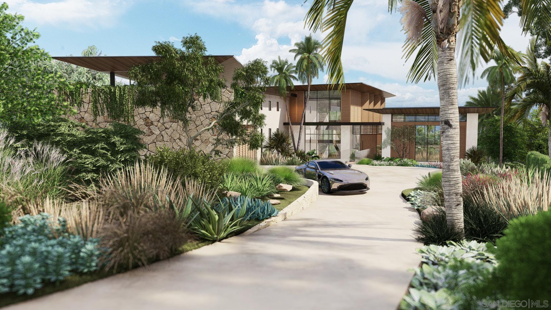 Nestled in the heart of Foxhill La Jolla, the proposed residence for Lot Two is a 12,500-square-foot, 6-bedroom, 7.5-bath tropical modern home with sweeping 270-degree views of the ocean, canyon, and surrounding nature preserve. The home's striking design is defined by its wide, splaying wood rooflines, which appear to float effortlessly above the structure, evoking the serenity of a lush tropical canopy. Upon arrival, a bridge gracefully spans two sunken gardens, flooding the lower level with natural light while offering a dramatic and welcoming approach to the home. Inside, the layout flows seamlessly, mimicking the ambiance of a boutique retreat. To the right, an entertainment "lobby" pavilion serves as the heart of the home, while the private family wing extends to the left. Operable wood screens wrap around the second floor, creating the illusion of a floating wood box. These screens can fully open to invite ocean breezes and frame panoramic views. Anchored by a weathered stone base, this residence blends modern sophistication with rustic textures, creating a harmonious connection between nature and architecture. With its signature floating rooflines, seamless indoor-outdoor transitions, and thoughtful design, the proposed residence is a modern oasis and a true architectural gem on the edge of the nature preserve.
