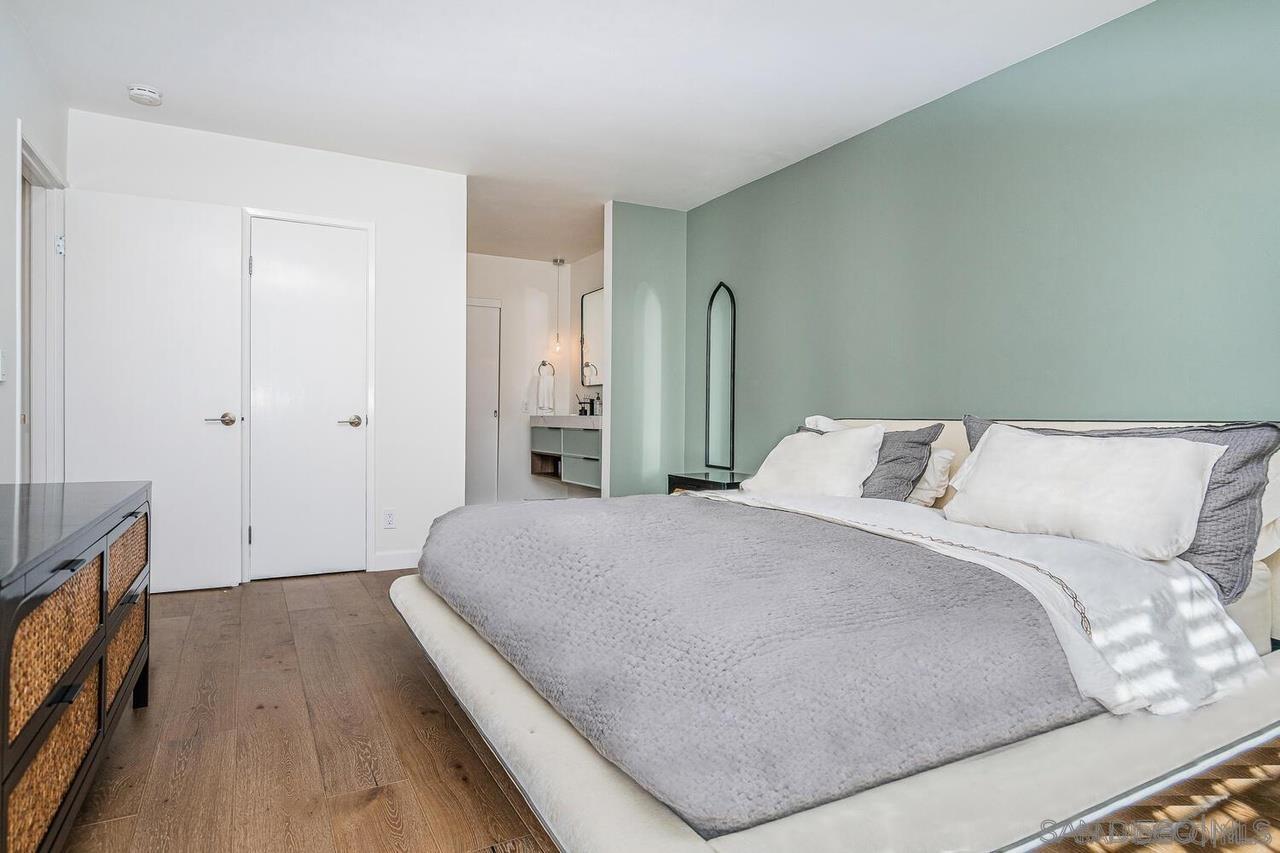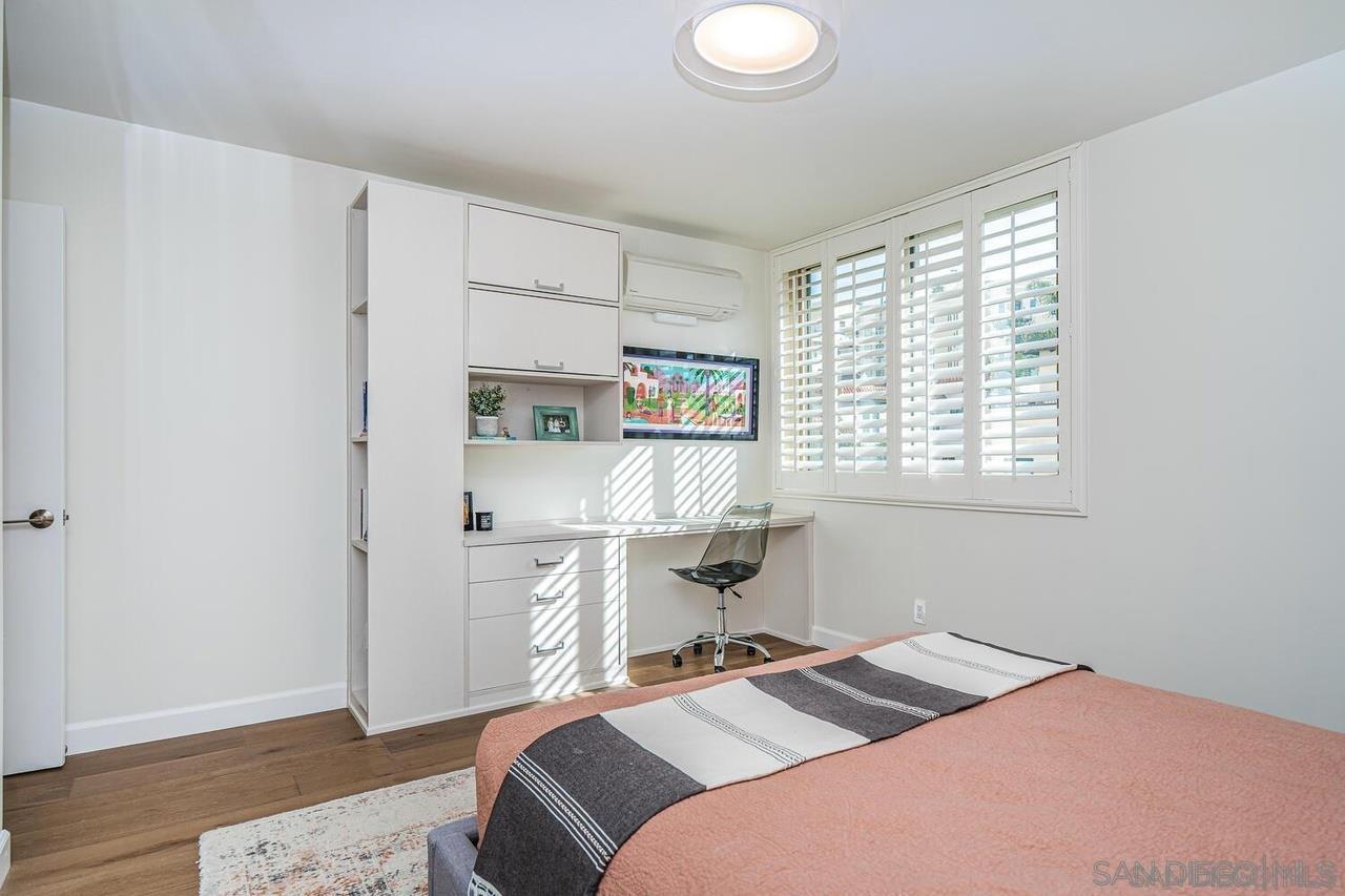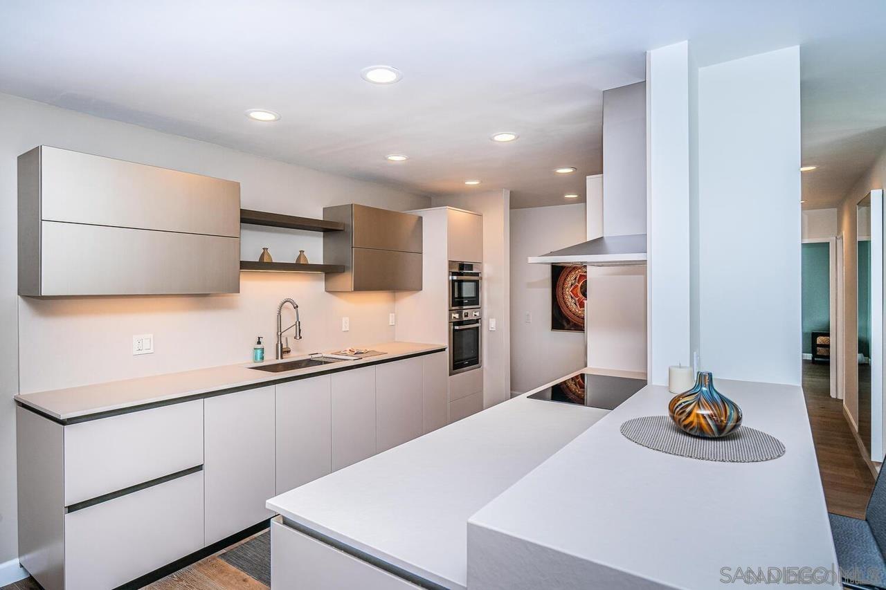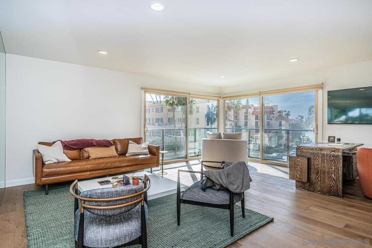 This fully furnished property is available for mid-, and long-term rentals. Rates are subject to change based on seasonality and length of stay. This top-floor, oceanfront condo is ideally located in the heart of La Jolla Village, directly across from the coastline. Boasting 2 beds and 2 baths, this corner unit offers breathtaking views of the Pacific Ocean. Stroll effortlessly through the seaside neighborhood to explore La Jolla Villages charming shops, vibrant restaurants, recreational facilities, stunning beaches, and more! The living room features floor-to-ceiling windows that showcase stunning ocean views, allowing you to relax and take in the picturesque sunsets. A comfortable leather couch and oversized chair create a cozy space to unwind, while a large flatscreen TV and a convenient desk area provide options for entertainment or working remote. The living area flows seamlessly into the dining area as well as the newly remodeled kitchen, featuring a modern design and new top-of-the-line Bosch appliances. With barstool seating for two, its an ideal spot for morning coffee or casual meals. The primary bedroom is a serene retreat with a king-sized bed, built-in clothing storage, and a Frame TV for relaxation. The en-suite bathroom offers a dual vanity and shower. The second bedroom features a queen-sized bed and a built-in workspace, perfect for guests who need a dedicated area to work. The second bathroom includes a shower/tub combo.