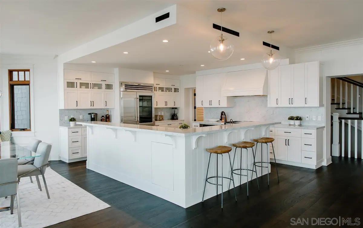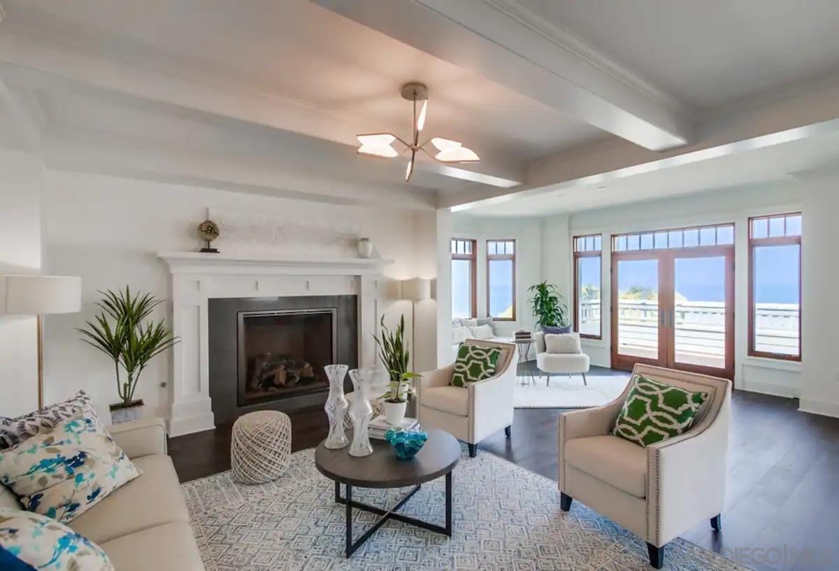 Welcome to your ultimate coastal getawaythis dazzling 3-bedroom + loft, 5-bathroom oceanfront retreat offers over 5,500 SF of luxurious living space. Just steps from iconic La Jolla Cove, this spacious home hosts up to 8 guests and features breathtaking panoramic ocean views from nearly every room. Designed to impress, it blends comfort and elegance with unmatched views and high-end amenities. First Level: Two spacious bedroomsone with two king beds, the other with one king and stunning ocean viewseach with en-suite baths and closets. A cozy loft lounge with queen sleeper sofa and nearby bathroom adds extra space. Second Level: A bright living area with fireplace, chefs kitchen with stainless appliances and breakfast bar, formal dining for 6, window seating nook, and half bath. Step out onto the oceanfront balcony to soak in vibrant sunsets and coastal breezes. Third Level: The master retreat features a fireplace, sitting area, lavish en-suite bath with separate tub and shower, walk-in closet, and private oceanview balcony. An additional half bath completes this level. Pull into the 1,500 SF garage and take the commercial-grade Otis elevator or glamorous spiral staircase to any floor. Enjoy a dedicated remote workspace, laundry room, A/C, high-speed Wi-Fi, and gated driveway with room for 4 cars. With direct beach access and walkability to Prospects shops and restaurants, your dream La Jolla escape awaits