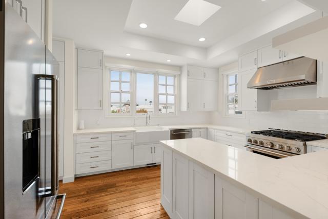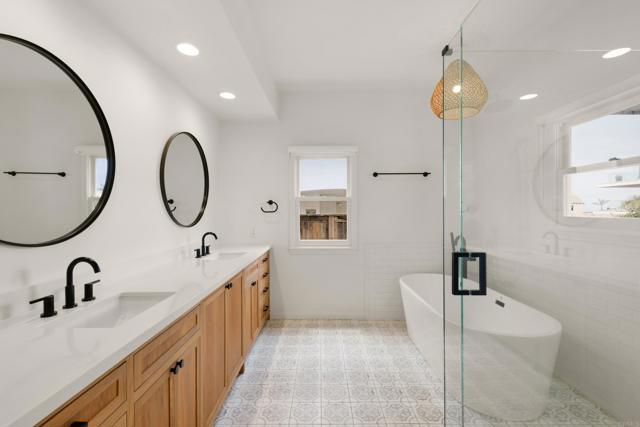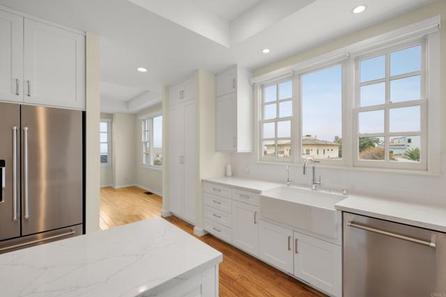 This is your chance to live just steps from the sand in one of La Jolla s most sought-after neighborhoods. Located only 10 homes from Marine Street Beach and a short walk to Windansea Beach, 475 Marine St puts you right in the heart of coastal living close to restaurants, coffee shops, and the charming La Jolla Village. This spacious two-story home has a smart reverse floor plan, putting the main living areas upstairs to take full advantage of the ocean views. The bright, open-concept living room, dining area, and newly remodeled kitchen blend beautifully, making it the perfect spot to relax or entertain. The kitchen is sleek and modern with high-end appliances, plenty of storage, and gorgeous countertops. Also upstairs is a third bedroom and full bath great for guests, an office, or extra space to spread out. Enjoy the deck off the Living Room and huge rooftop deck with 180-degree ocean views it s the ultimate hangout for morning coffee, sunset wine, or lounging. Downstairs, you ll find two large primary suites, each with its own updated bathroom and a convenient laundry room. Parking by the beach can be tough, but not here you get a two-car garage, two driveway spots, and one more paved spaces on the side of the house. This unfurnished home is available now for a minimum one-year lease. Rent is $12,500 per month and tenants cover utilities (water, electricity, gas, internet/cable).