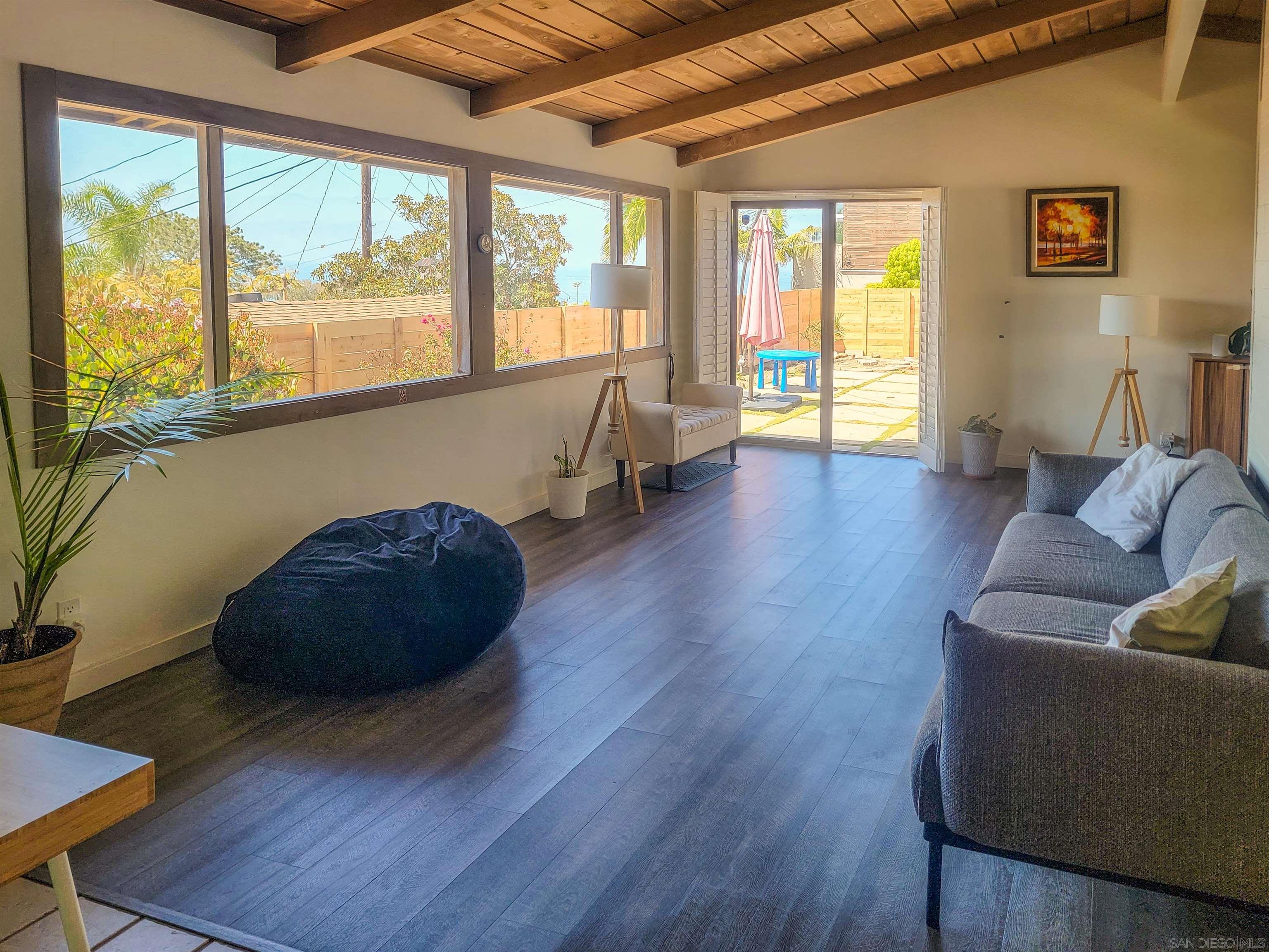 Welcome home to breathtaking ocean and city skyline views from this rarely available 5-bedroom, 2.5-bathroom home, located up on the hill facing the coastline above Bird Rock in La Jolla, which is one of the most desirable areas in Southern California. **Prime Location in La Jollas Bird Rock Neighborhood!!** Situated in a quiet, peaceful neighborhood, the home is in a highly walkable area with easy access to Bird Rocks vibrant shops, cozy coffee spots, and excellent restaurants. Enjoy scenic strolls through this prestigious La Jolla community or take a short walk to the beach and nearby bike paths. Both Pacific Beach and La Jolla Village are easily reachable on foot or by bike. Fully furnished and facing both south and west, this bright and thoughtfully designed home features sweeping views of Mission Beach & Bay, a panoramic of the Pacific Ocean, the Downtown skyline, and the Coronado Bridge! Watch the sun majestically set into the Pacific every evening from the luxury of your hammock on the wraparound view decks. Three sliding glass doors provide seamless indoor/outdoor living from the outdoor decks to the spacious grandiose room with soaring ceilings & wet bar. Brimming with natural sunlight and a cool ocean breeze, this is a large 2,194 sq ft home with vaulted ceilings, fully appointed kitchen with a magnificent skylight, and a smart living room layout creating an open, modern, flowing floor plan! Dont miss this once in a lifetime opportunity to enjoy breathtaking views at home in La Jolla!