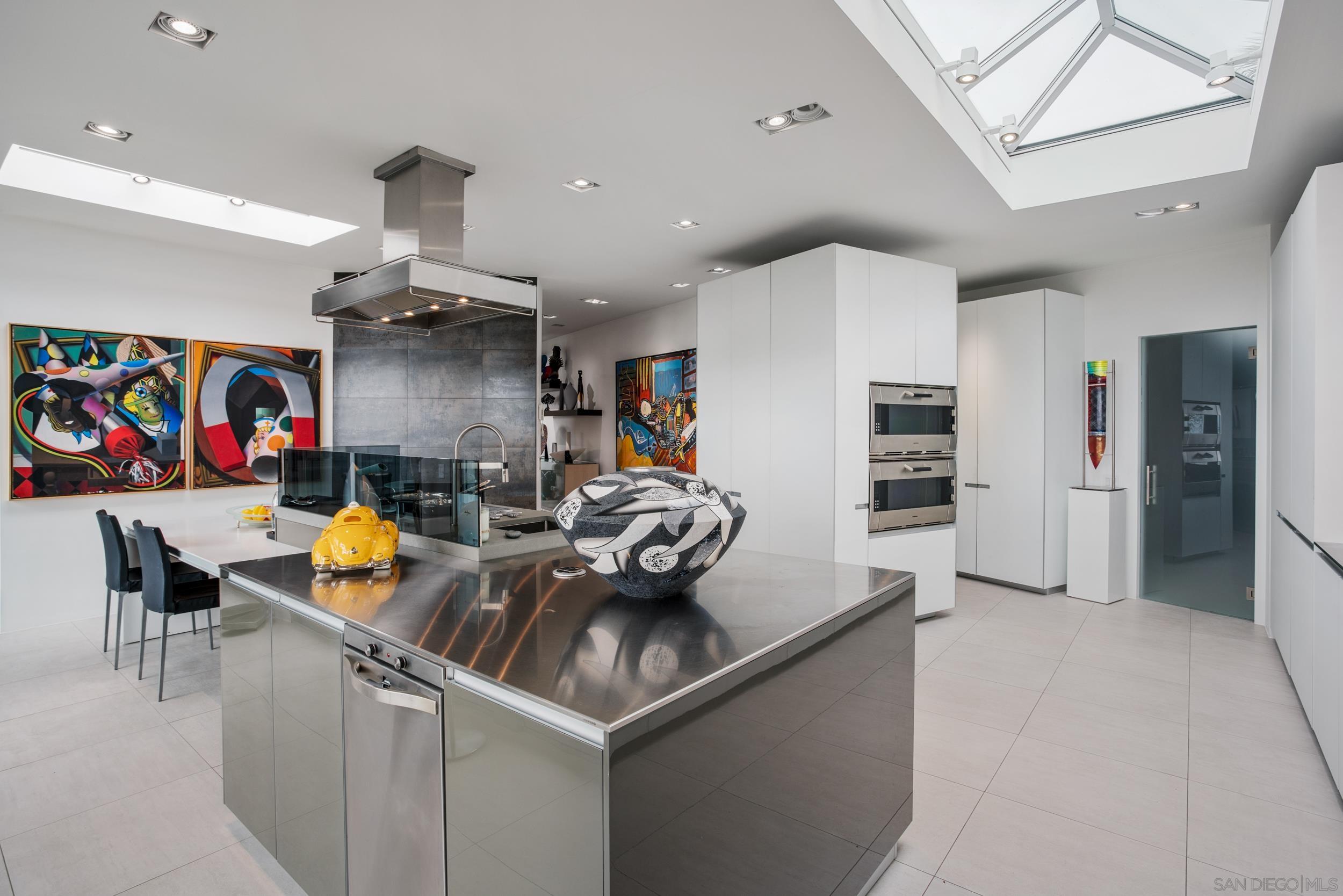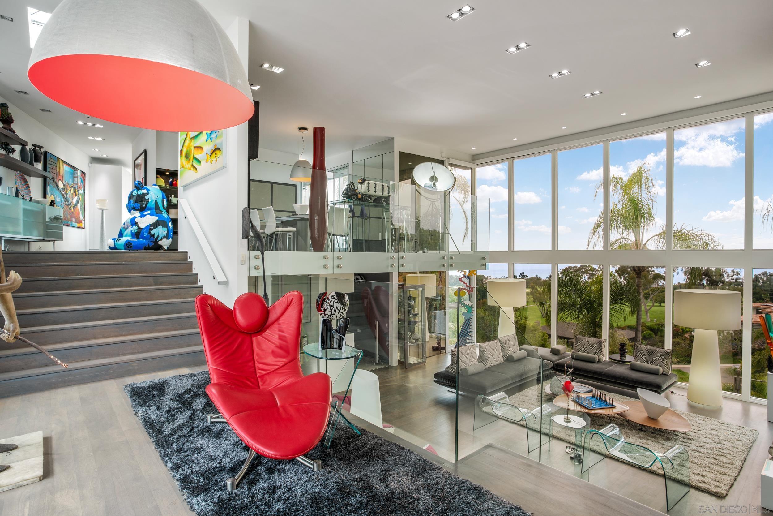 An exquisite rental nestled in the exclusive Country Club neighborhood of La Jolla. This modern home has been completely remodeled into an elevated art sanctuary, offering over 4,500 square feet of immaculate living space. Enjoy incredible panoramic views of the Pacific Ocean and the lush fairways of the La Jolla Country Club. Situated above La Jolla Village, this property provides easy access to shopping, dining, golfing, and beautiful beaches, all just minutes away. The prestigious Country Club neighborhood is renowned for its privacy and coastal ambiance. The heart of the home is the Ernestomeda kitchen, equipped with Gaggenau ovens and a Jura espresso maker. The interior is adorned with high-end furniture from Ligne Roset, Montis, Agape, Flexform, B & B Italia, Horm, Ron Arad, and Fiam, ensuring a luxurious and comfortable stay. Spacious and beautifully designed living areas seamlessly blend art and comfort, enhanced by bright natural light and floor-to-ceiling windows. Well-appointed bedrooms with 180-degree stunning views provide restful retreats, home office, while modern, spa-like bathrooms are designed with the finest materials and fixtures. The lower level features an additional living room and a convenient kitchenette. The property sits on a large, beautifully landscaped lot offering privacy and ample space for outdoor activities. An expansive patio is perfect for entertaining, with a pool and spa. 7116 Country Club Drive offers the best of La Jolla living in an exquisite coastal retreat. AVAILABLE October 1st. Available for long or short term.