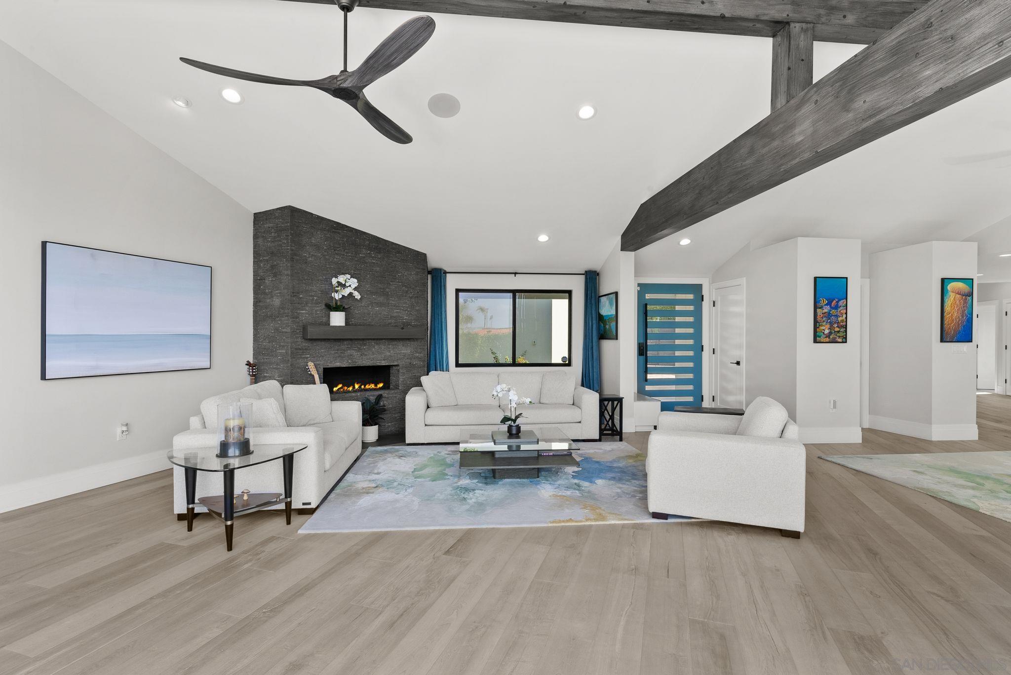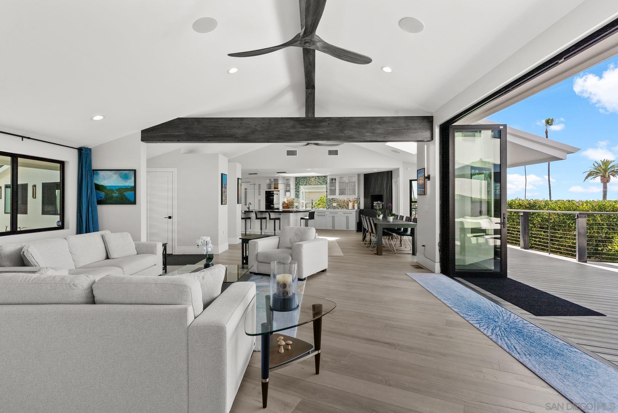 Enjoy breathtaking panoramic views of the open sea and the dramatic North Shore cliffs from this stunning modern home. Ideally located just steps from La Jolla Shores Beach, the La Jolla Beach & Tennis Club, and the charming shops and restaurants of La Jolla Shores Village. Youre also just minutes from La Jollas renowned Village, offering high-end dining and boutiques, and will enjoy quick access to major freeways. Designed for effortless indoor-outdoor living, the home opens through a full wall of bifold doors to beautifully landscaped grounds. A gated courtyard entry and perimeter security surveillance provide peace of mind, while lush surroundings create a private, resort-like atmosphere. Recent renovations include top-tier features such as Miele appliances, a sophisticated A/V system, three-zone HVAC, EV chargers, solar power, and more. This sleek, modern retreat offers the perfect blend of luxury, convenience, and everyday vacation livinga true gem for the most discerning.