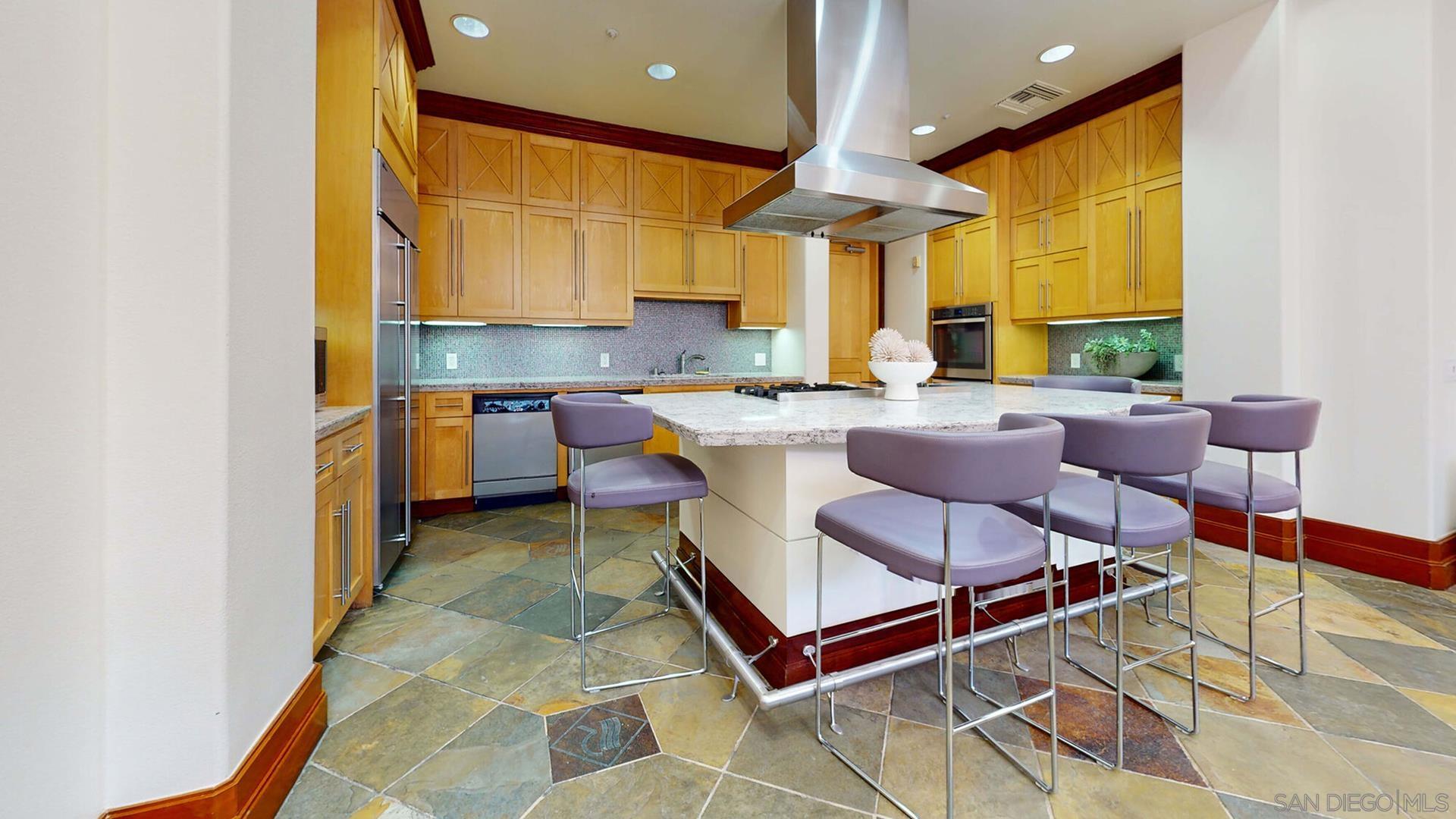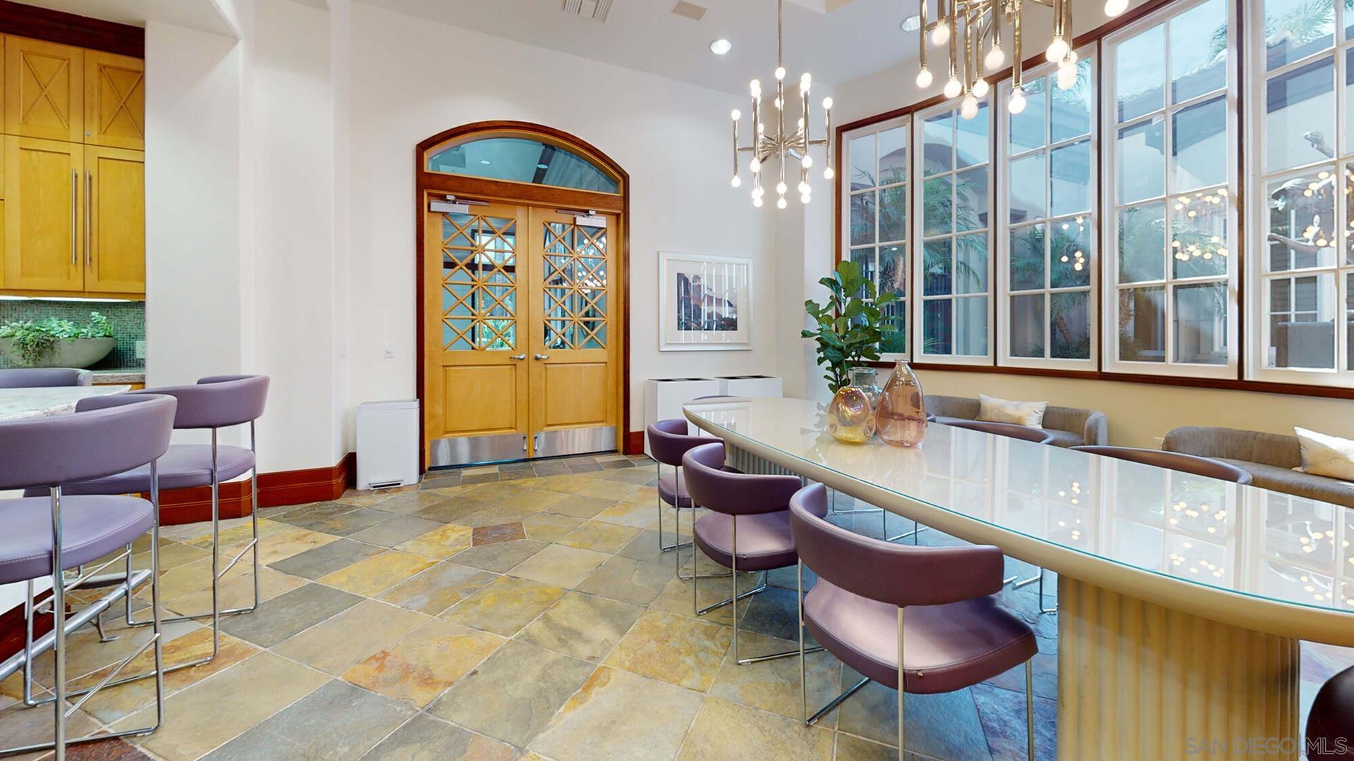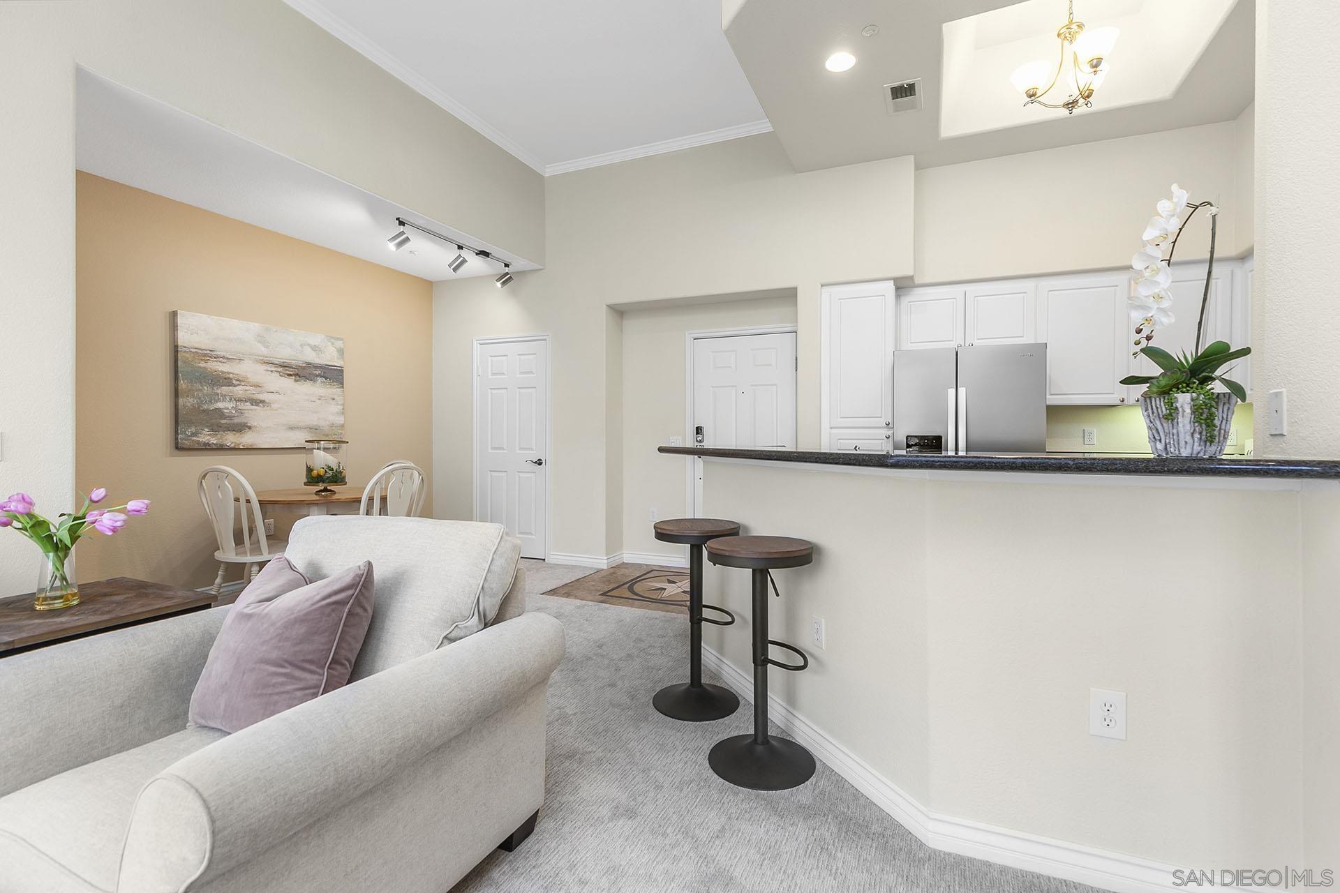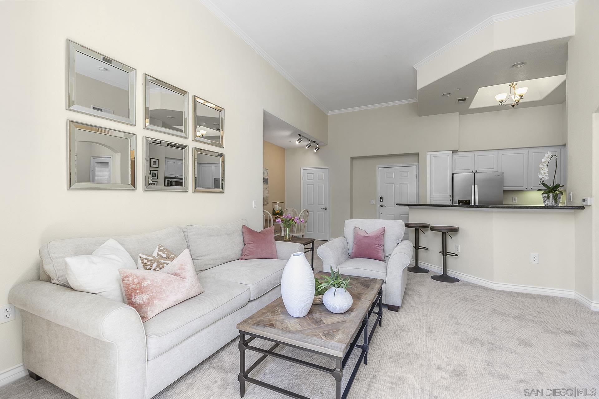 Best location in Complex, Stunning penthouse located in the prestigious Regents La Jolla, situated in the highly sought-after UTC area. Just moments from premier shopping, dining, hospitals, universities, and major freeways, this residence offers unparalleled convenience and sophistication. This penthouse boasts a spacious, open floor plan with 14-foot vaulted ceilings, featuring 2 bedrooms and 2 bathrooms. The light-filled living room complete with a cozy fireplace, opens to a balcony with an additional storage closet. Enjoy the elegance of custom plantation shutters throughout, brand new neutral carpeting, and two dual primary bedrooms with one en-suite bath. The unit includes a stackable washer/dryer in the closet for added convenience. Ceiling fans and ample closet space further enhance the comfort of this home. The immaculate kitchen is a chef's dream, with granite countertops, an eat-at counter and stainless-steel appliances. The Regents La Jolla complex offers a wealth of amenities, including a clubhouse, concierge services, business center, pools, spa, fitness center, game room, movie theater, outdoor community BBQ, package room, pool cabanas, underground garage & two side by side parking spaces next to elevator.