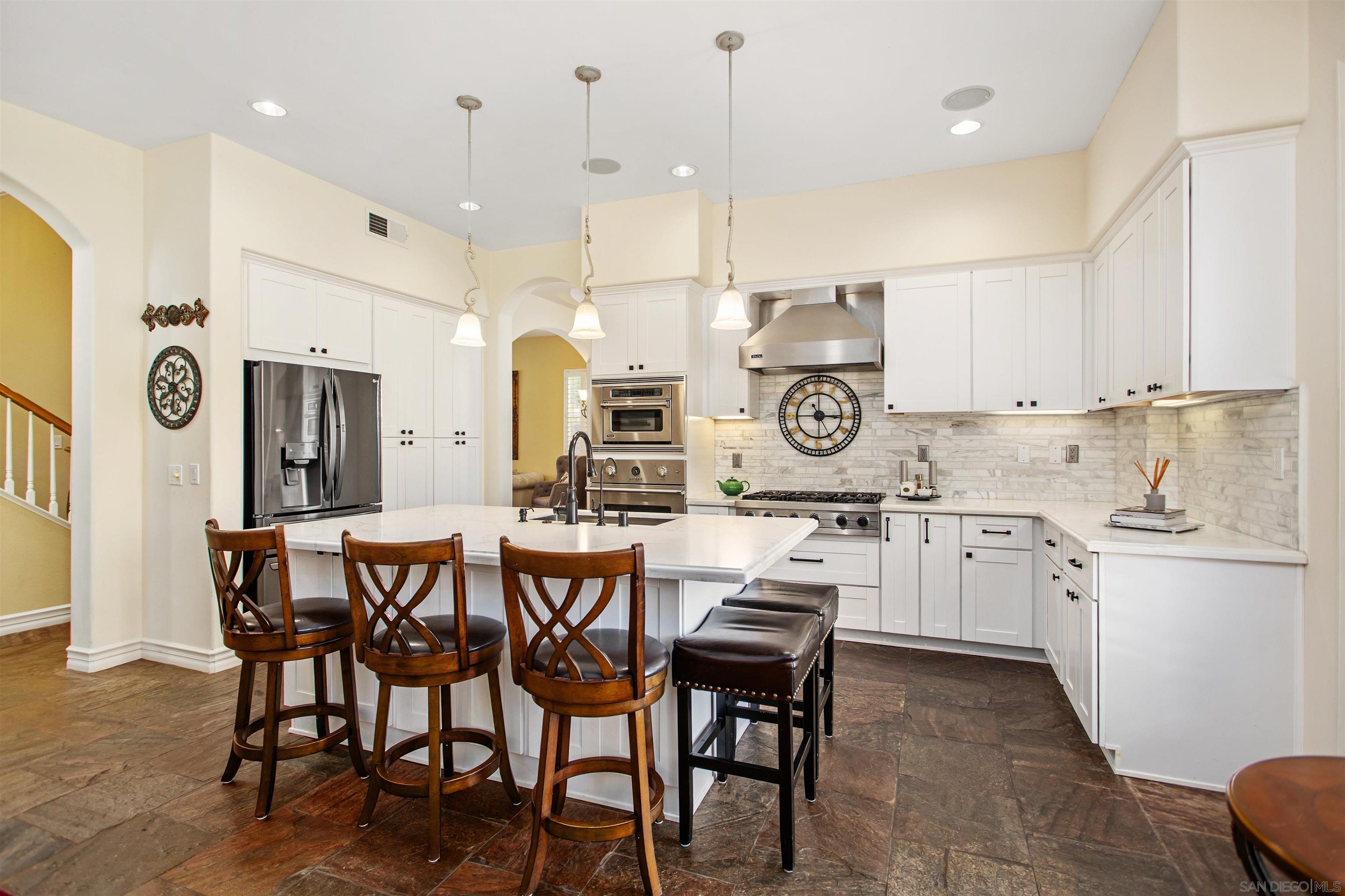 Welcome to this beautifully upgraded 4-bedroom, 3-bathroom home with a versatile loft, ideally located in the prestigious Panorama Ridge community. Originally built in 2004 as the model home, this residence showcases high-end finishes, thoughtful design, and exceptional attention to detail throughout. Tucked away on a peaceful cul-de-sac, the home makes a striking first impression with its exceptional curb appeal. A spacious three-car garage, extended driveway, mature landscaping, and a charming front sitting area beneath a shady tree set the tone for what awaits inside. Sweep through the front door and be greeted by soaring 9-foot ceilings, elegant arched entryways, and a flowing open-concept layout that seamlessly connects the formal living and dining areas. Rich tile wood and slate flooring, plantation shutters, and custom baseboards bring warmth and sophistication to every corner. At the heart of the home is the gourmet chef s kitchen, recently remodeled to perfection. Featuring an extended island with gleaming white quartz countertops, custom cabinetry with pull-out drawers, a full wall of pantry storage, and top-of-the-line Viking appliances including a 6-burner gas cooktop and microwave/convection oven this kitchen is truly a dream come true. It opens effortlessly to the inviting family room, complete with a raised gas fireplace, built-in cabinetry, and a premium surround sound system ideal for entertaining or relaxing in comfort.Interested in this Listing?