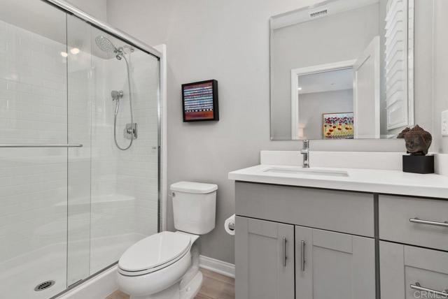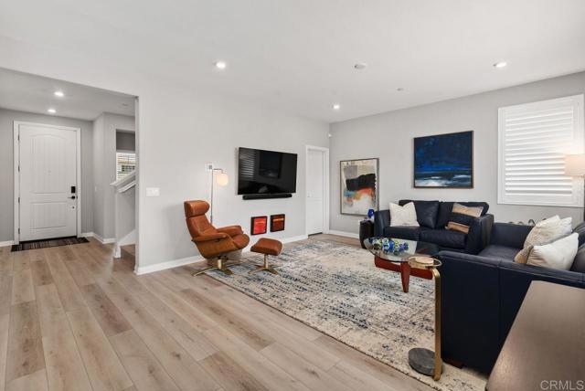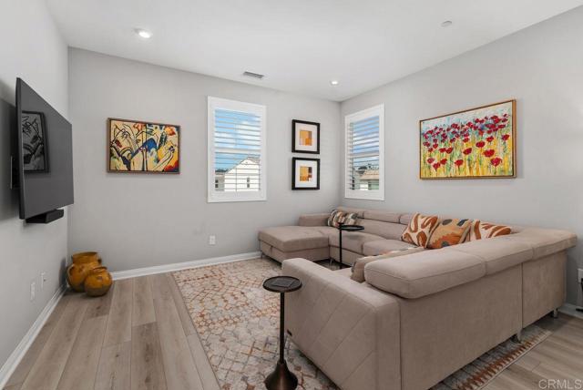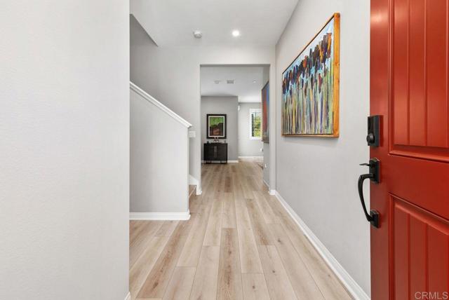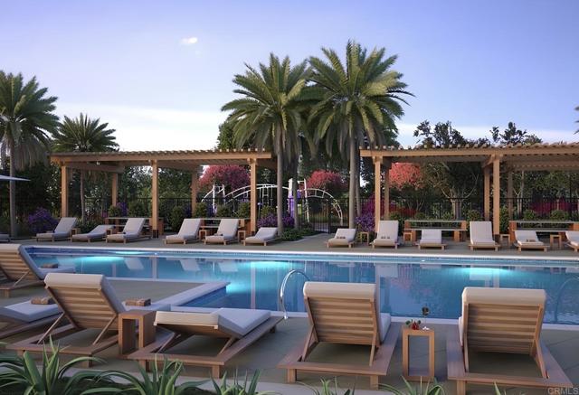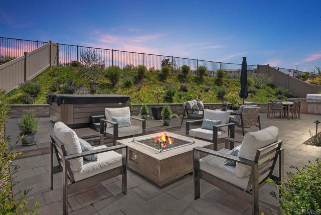 NEW PRICE ALERT! Impressive, modern, turnkey 5-bed, 4-bath, 2,427sqft detached home in the secluded Neptune neighborhood at Melrose Heights. Enjoy ample storage with 3 walk-in closets and a semi-private premium lot with no rear neighbors for added peace and privacy. Upgrades include wide-plank wood-look luxury vinyl flooring, recessed LED lights, 10 owned solar panels, and a 240V EV-ready garage. The gourmet kitchen features shaker-style pebble-hued cabinets with brushed stainless pulls, quartz counters, full-height glass tile backsplash, and high-end appliances: a 5-burner Bosch gas/convection range, Bosch convection microwave, navy-blue Bespoke Samsung refrigerator with optional stainless-steel panels included and whisper-quiet Samsung Bespoke dishwasher. A large eat-in island with pendant lighting anchors the open-concept layout; connecting kitchen, dining, and living areas. Natural light pours through dual-pane vinyl windows with custom shutters; 3 bedrooms include blackout shades. The rear-facing primary suite offers tranquil open-space views and a spa-like bath with dual vanities, soaking tub, separate shower, and a spacious walk-in closet. The flexible layout includes a 5th bedroom en-suite and a full bath just outside the downstairs bedroom; perfect for all guests. Step outside to a professionally landscaped, HOA approved and permitted backyard with a built-in BBQ, fridge, gas fire pit, Bluetooth-ready 6-person spa, multiple seating and dining areas, Belgard pavers and a robust drainage system to maintain the integrity of the paver system and foundation. The timed irrigation system creates a low-maintenance, luxurious retreat that will bloom year after year. Additional features include a tankless water heater, built-in router, Ring alarm and doorbell, and a wifi-enabled garage door with camera. Residents enjoy access to a palm-lined, resort-style pool, spa, and BBQ area. This is your move-in ready opportunity!Interested in this Listing?