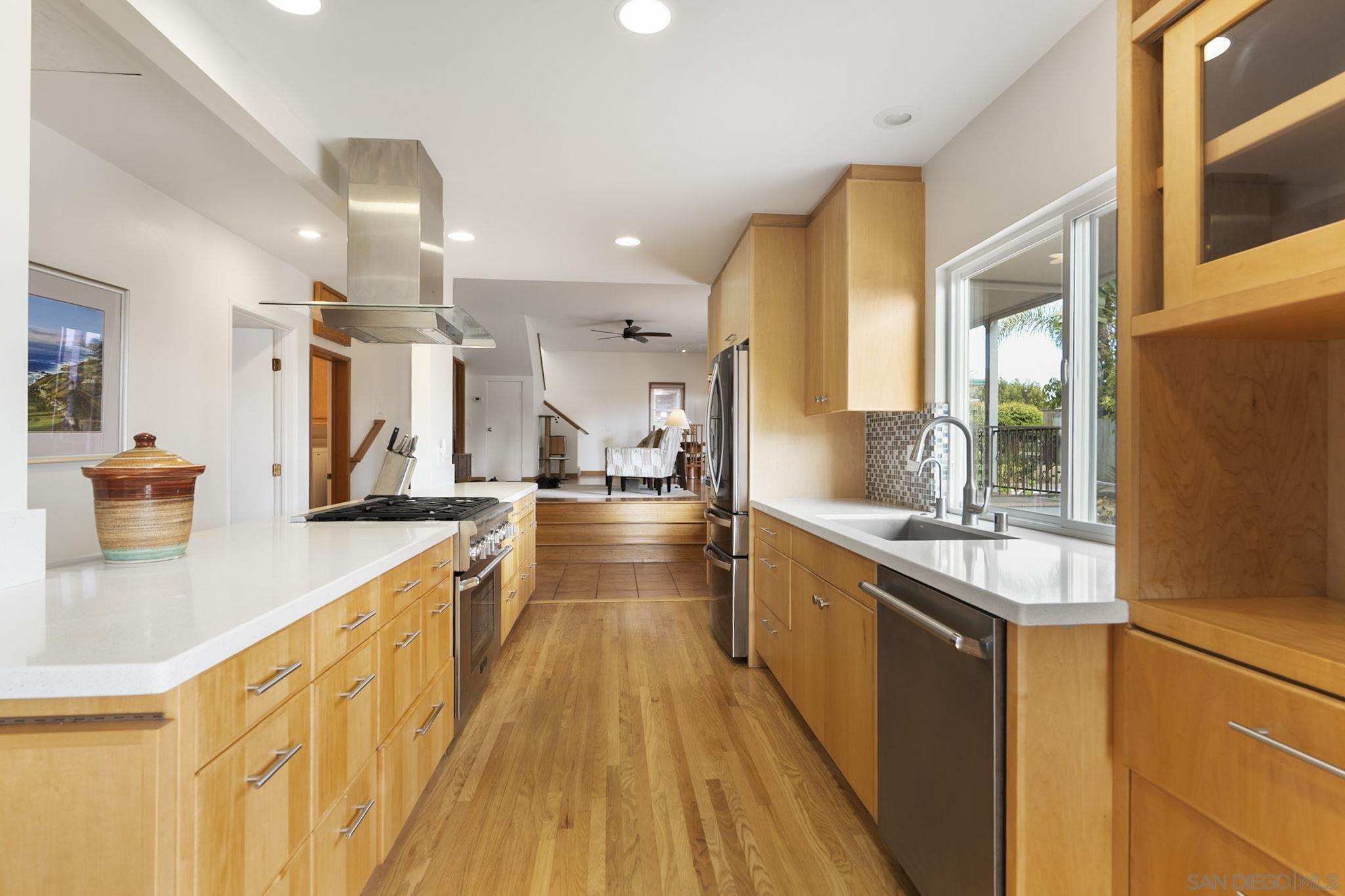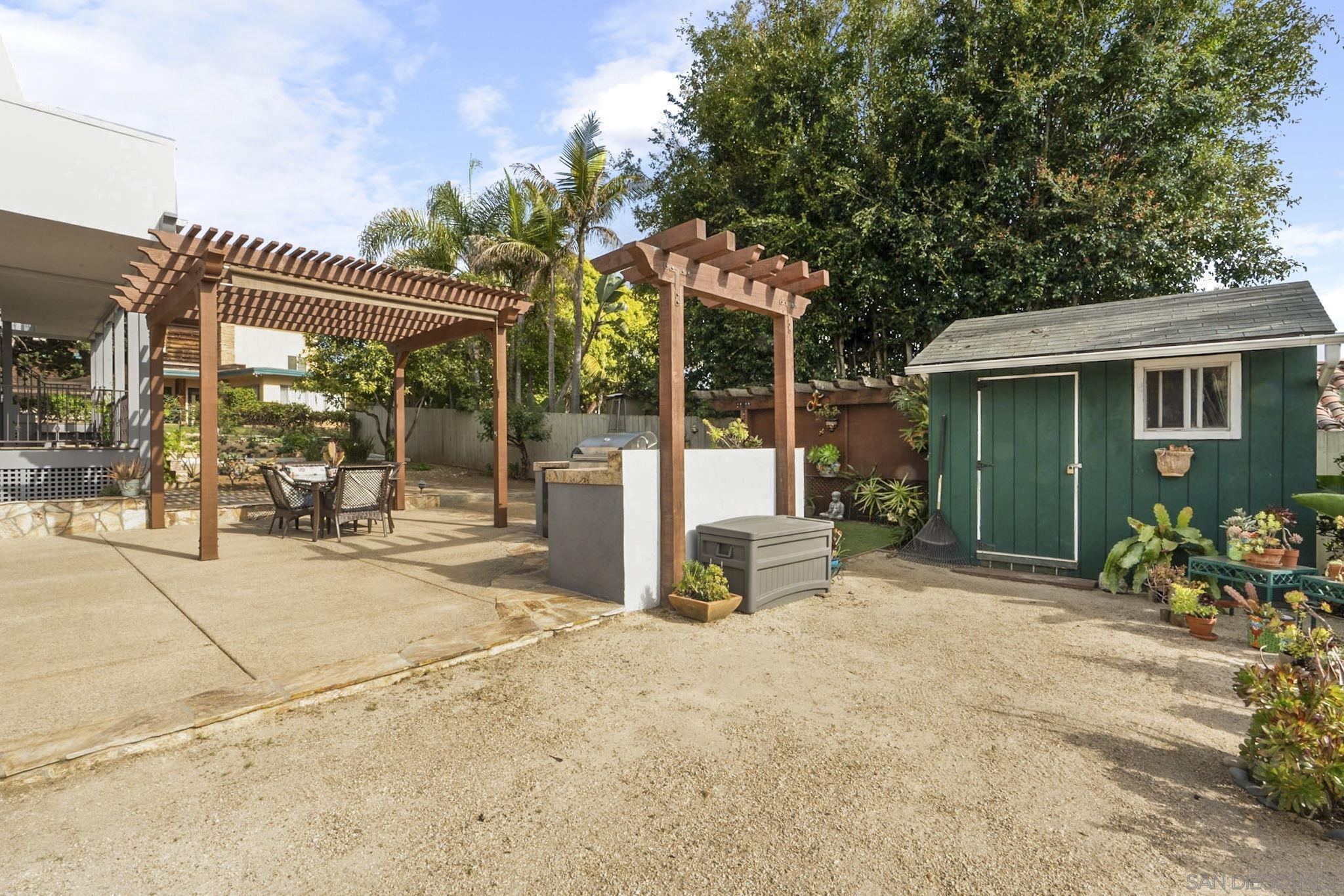 This beautifully upgraded home sits on a spacious quarter-acre lot and features ocean views from the expansive upstairs primary loft suite, offering the perfect blend of style, space, and coastal charm. Step inside to a light-filled open floor plan with a mix of mostly original hardwood and bamboo flooring, air conditioning, paid solar, and newer windows downstairs. The chef s kitchen is the heart of the home, boasting a 6-burner gas stove, island seating area with additional storage, filtered water, custom glass cabinet doors, custom drawers, and a solar tube that brings in natural light all day long. Upstairs, the oversized loft-style primary suite is your personal escape, featuring stunning ocean views, a dream walk-in closet, and a luxurious double shower with dual showerheads. Whether you're sipping coffee on the wrap-around deck or hosting friends in your outdoor kitchen and pergola covered patio dining area , this home was made for everyday comfort and unforgettable gatherings. The low-maintenance backyard includes a storage shed along with succulents and cacti, while the lush front yard is shaded by mature trees and landscaped with raised garden beds, fruit trees, and two large pine trees, offering a peaceful connection to both the beach and the mountains this is Fire Mountain living at its best.Interested in this Listing?